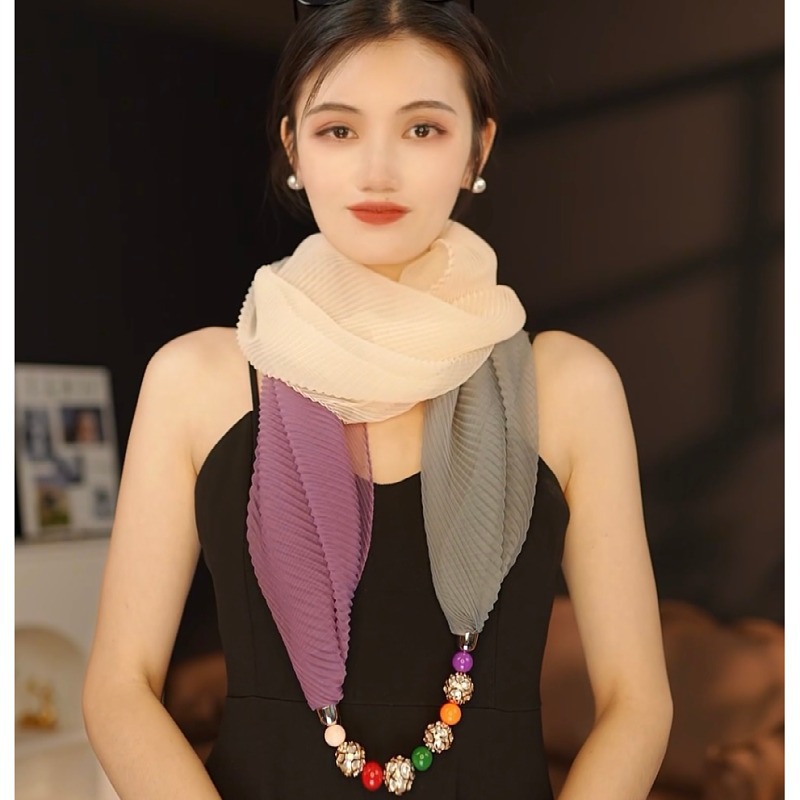 Tianxin 새로운 스타일의 민족 스타일 구슬 우아한 올매치 여름 주름진 실크 스카프 여성 여행 쇼핑 자외선 차단제스토어 가기