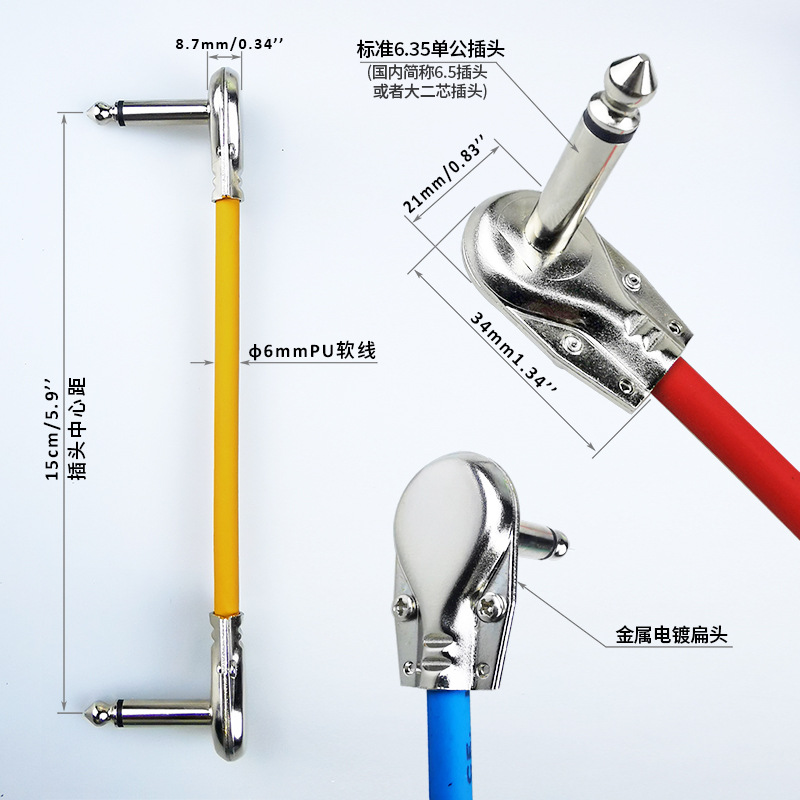 단일 조각 효과 커넥터 연결 라인 15cm 평면 구리 코어 6.35 모노 남성에서 남성 어댑터 전기 기타 액세서리