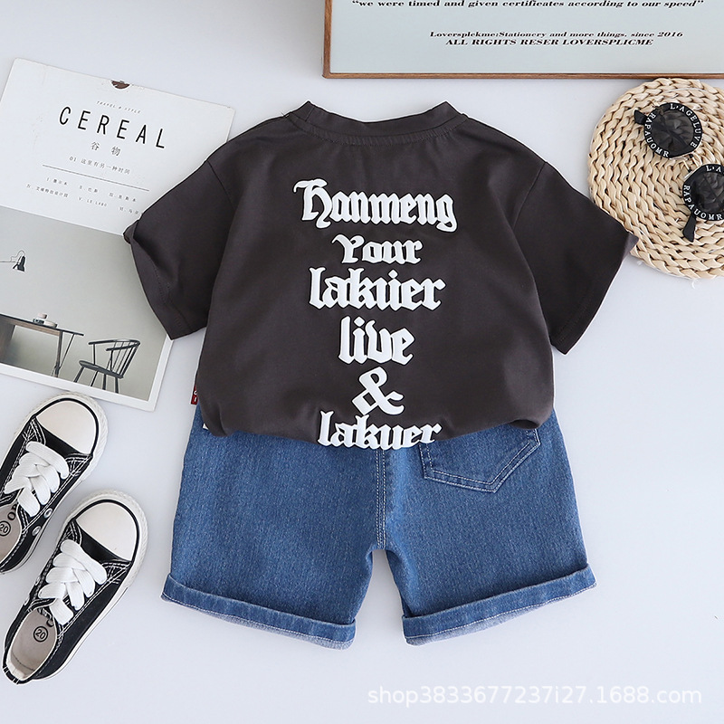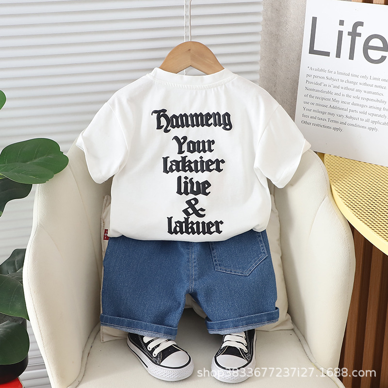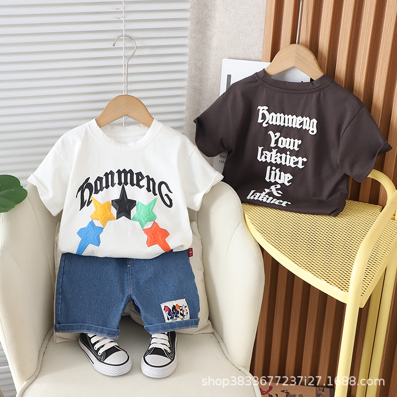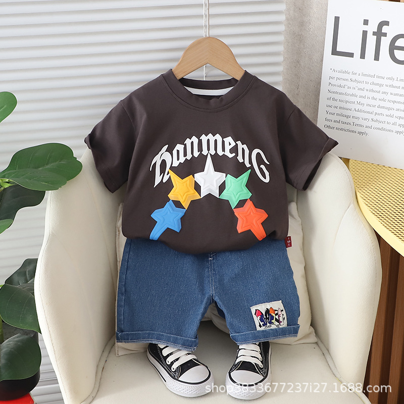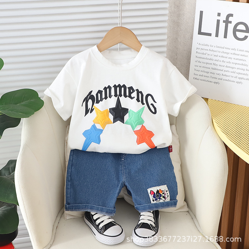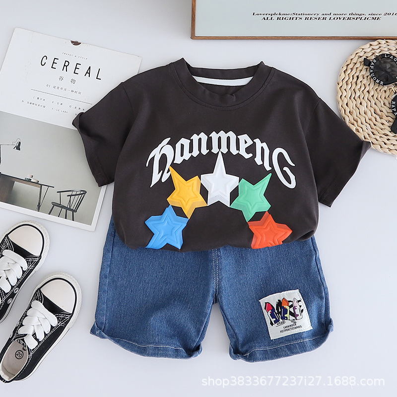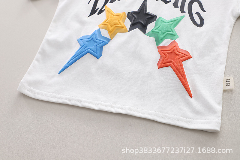소년 여름 세트 새로운 인쇄 된 편지 별 짧은 소매 반바지 남성 아기 옷 아동복스토어 가기