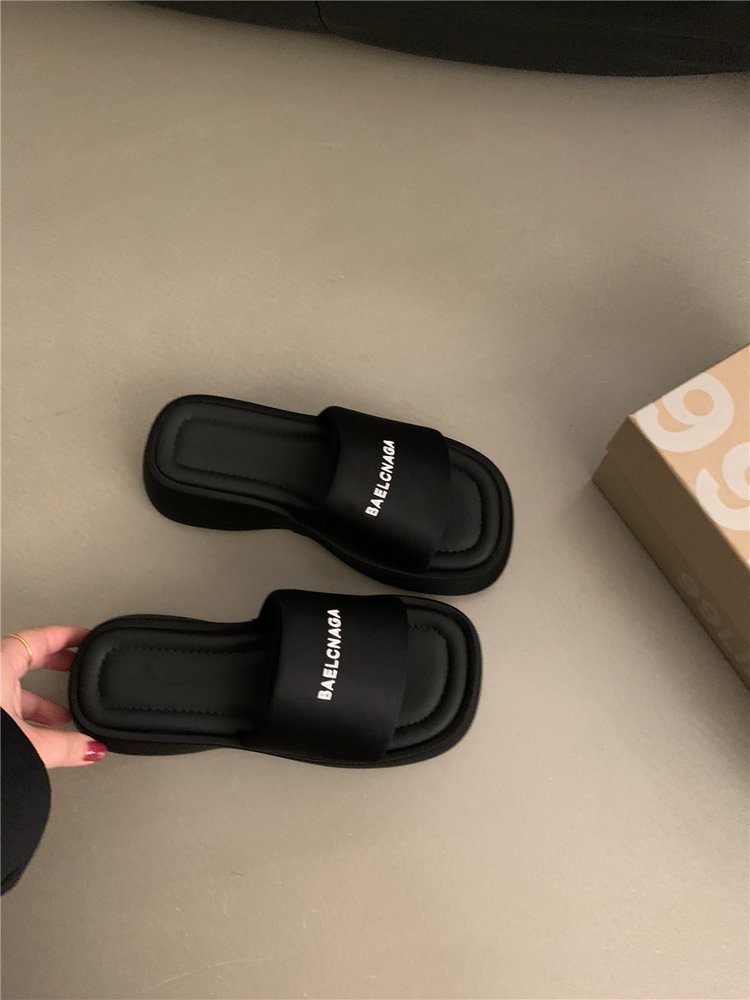 두꺼운 밑창 샌들과 슬리퍼 여성 야외 착용 2024 년 여름 새로운 패션 폭발 올 매치 한 단어 슬리퍼 여성용 캐주얼 비치 샌들스토어 가기