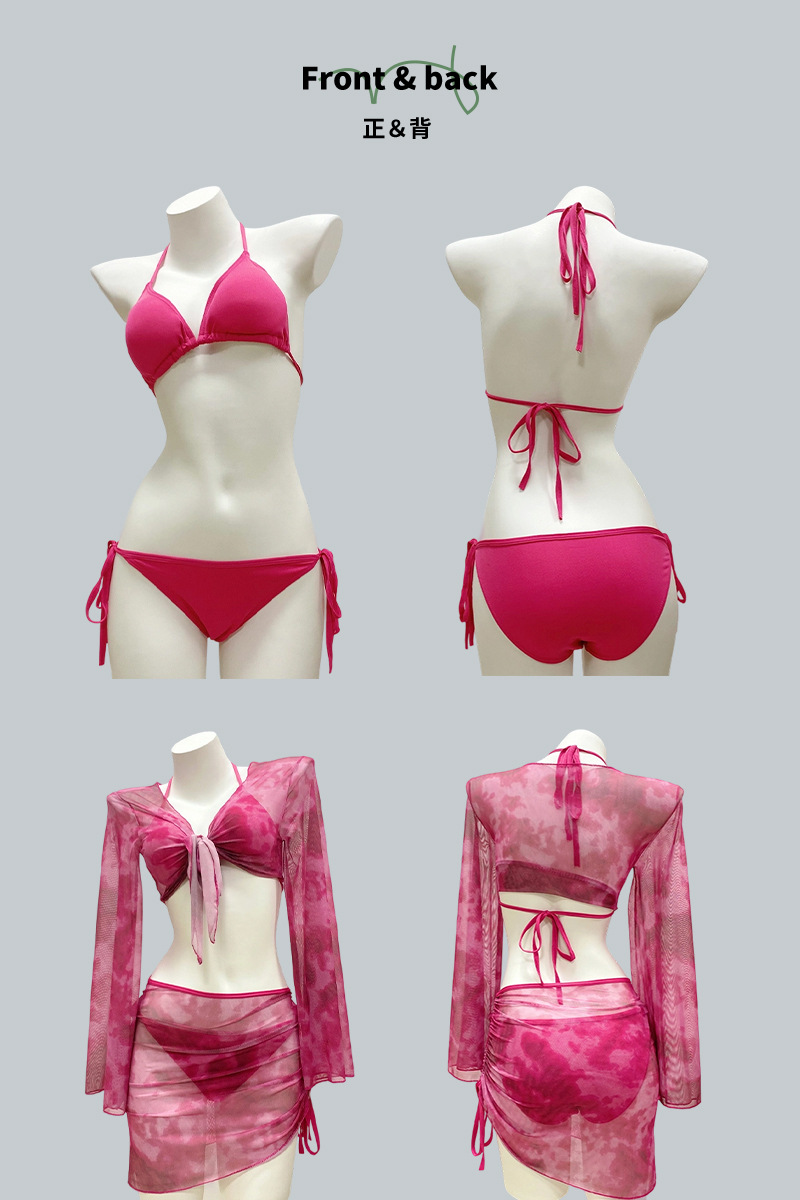 분할 수영복 여성 순수 스타일 섹시 비키니 4 피스 세트 보수적 슬리밍 작은 가슴 모임 해변 휴일 수영복