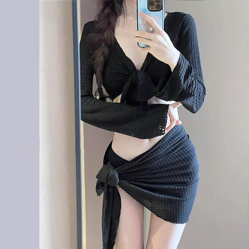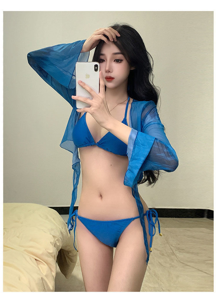 분할 수영복 여성 순수 스타일 섹시 비키니 4 피스 세트 보수적 슬리밍 작은 가슴 모임 해변 휴일 수영복스토어 가기