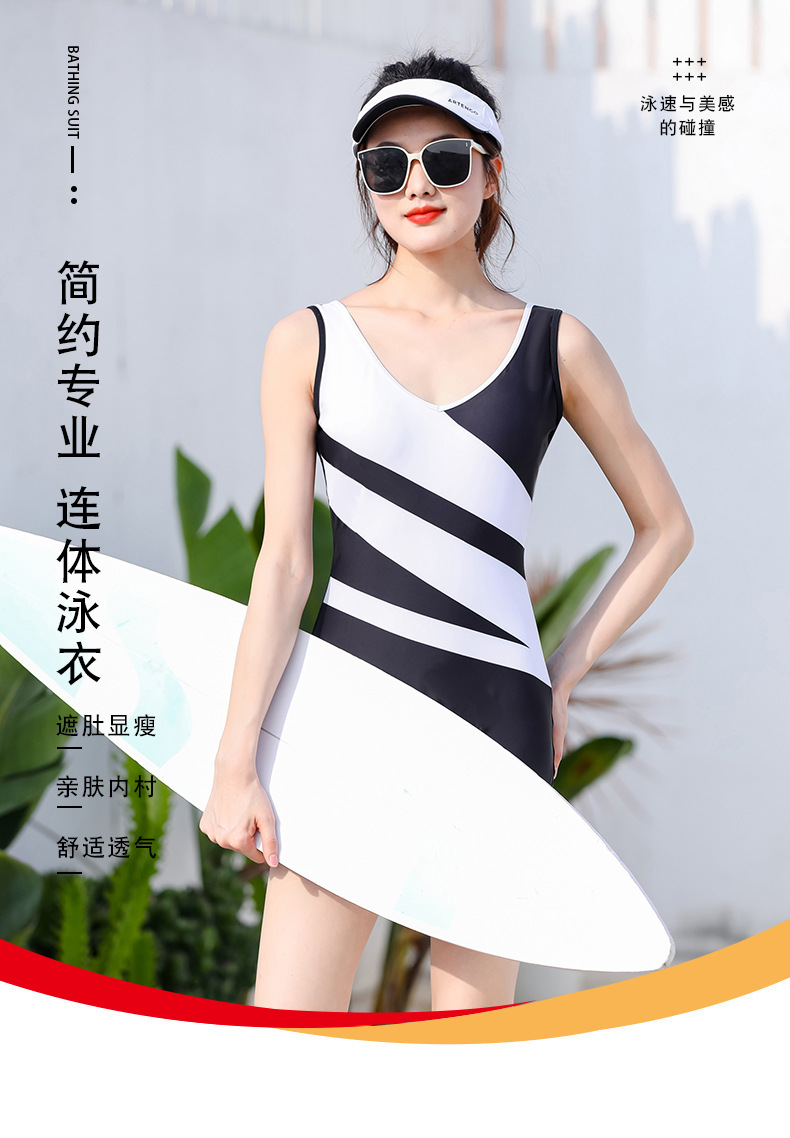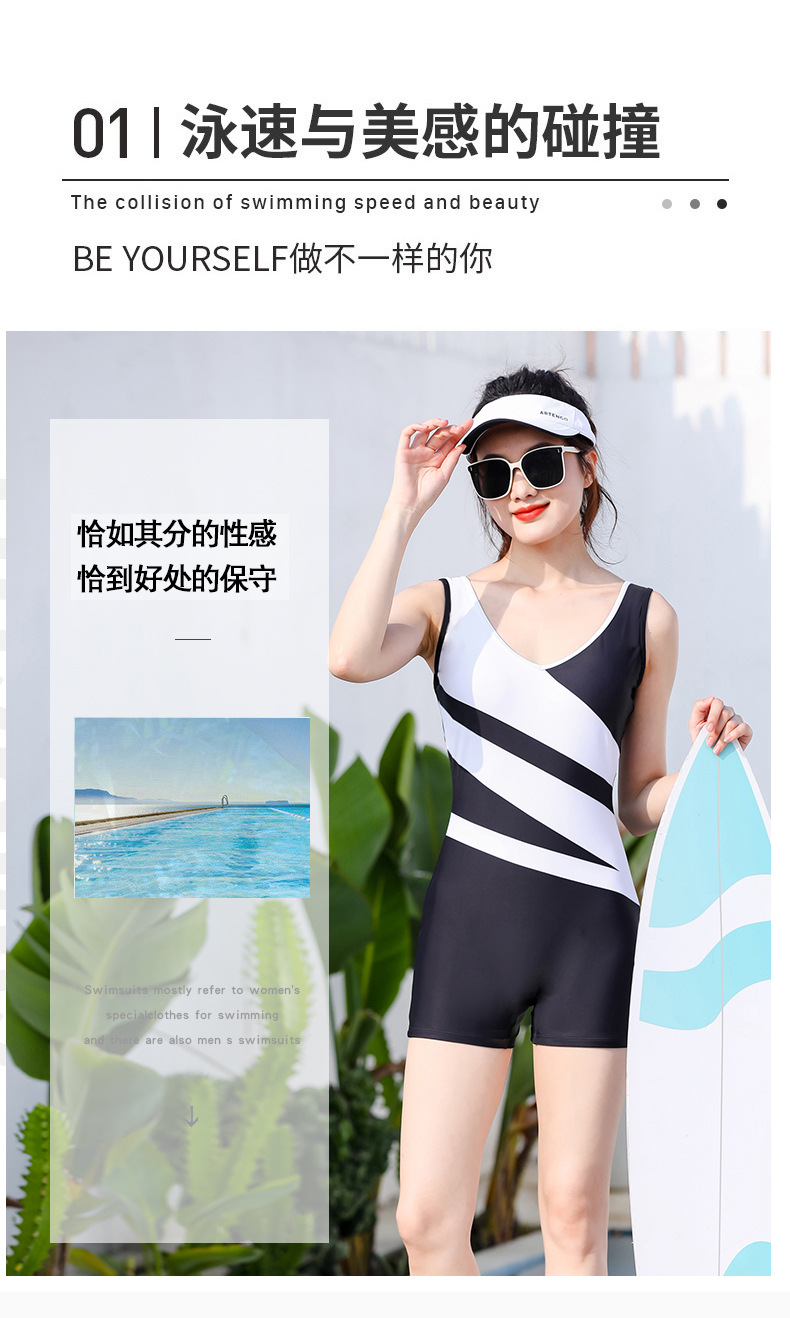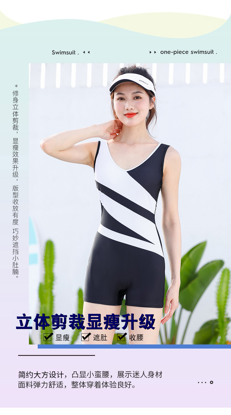 Nabei Mei 24 새로운 스타일 결합 된 플랫 코너 수영복 여성 보수적 온천 슬림 배꼽 덮음 폭발성 전문 경쟁 수영복