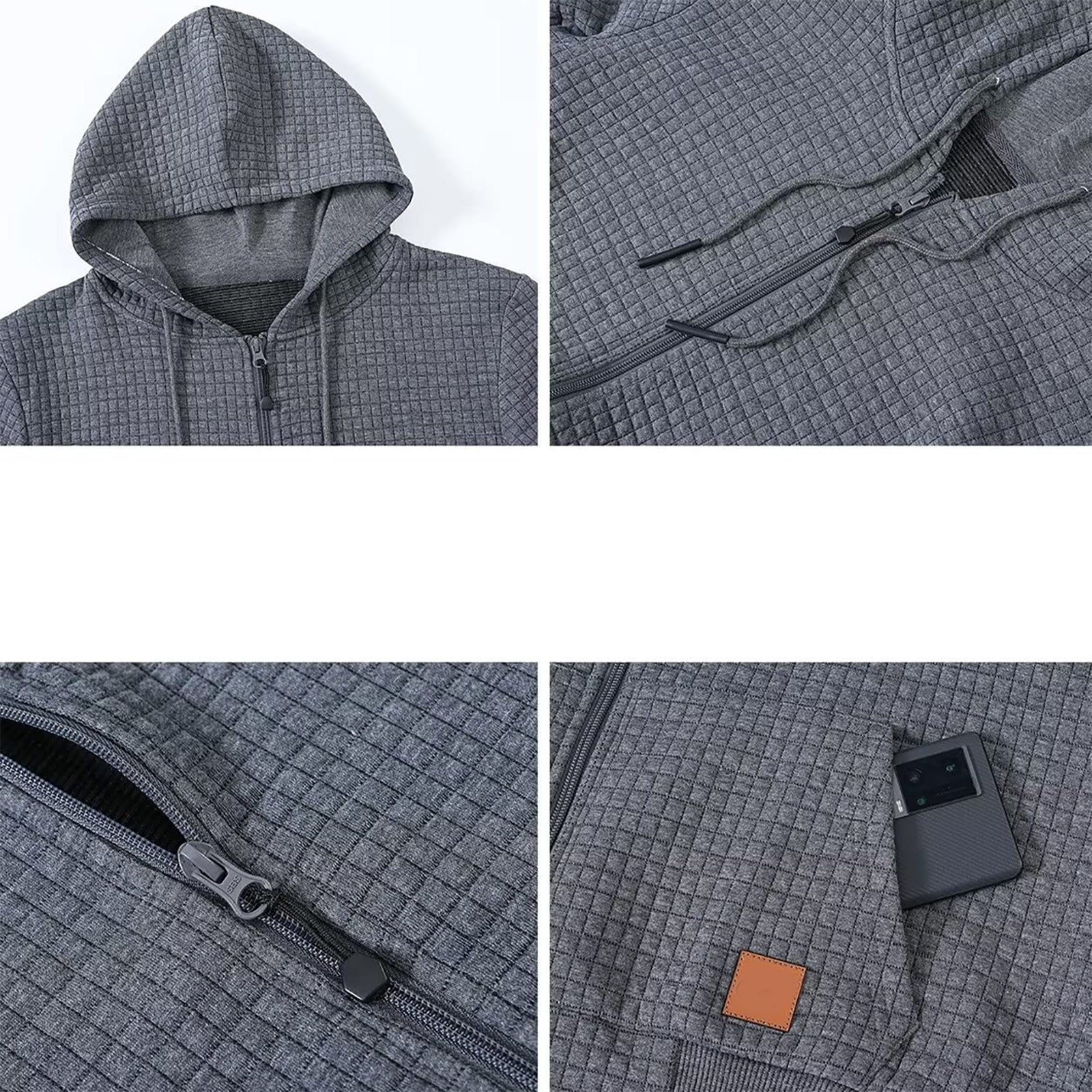 국경 간 유럽과 미국의 남성 격자 무늬 자카드 스웨터 긴 소매 후드 따뜻한 컬러 후드 스포츠 지퍼 카디건 재킷