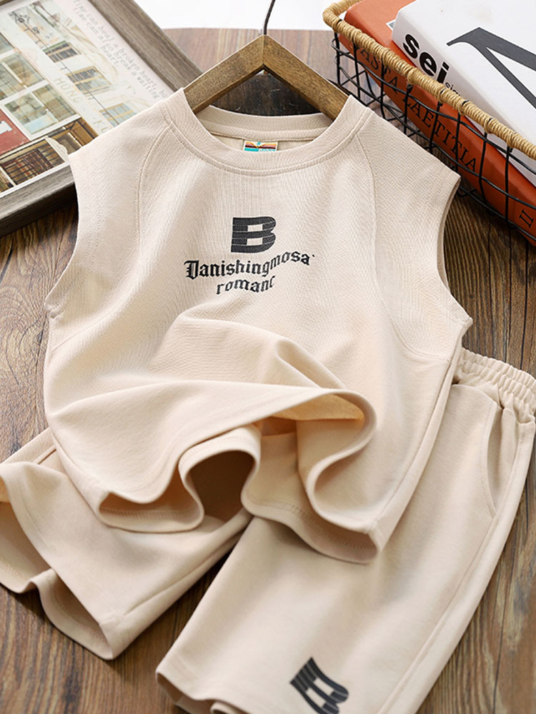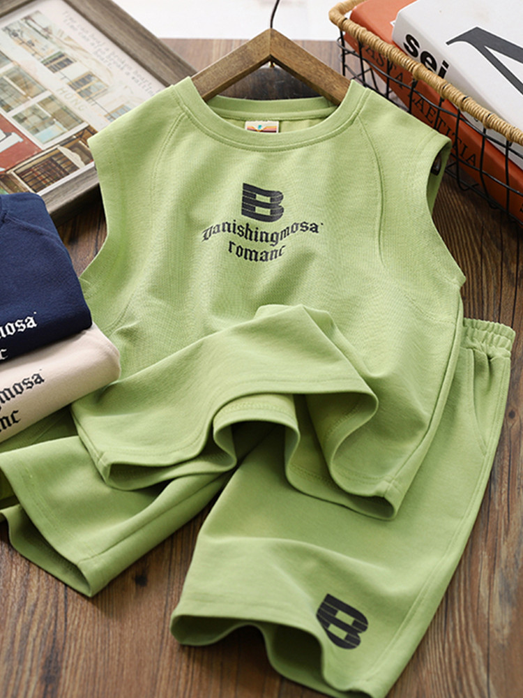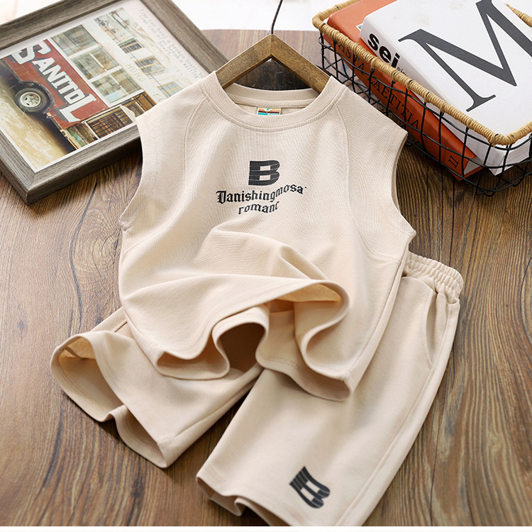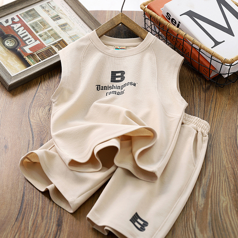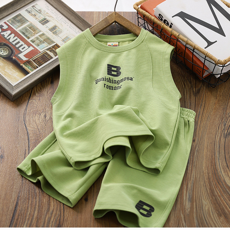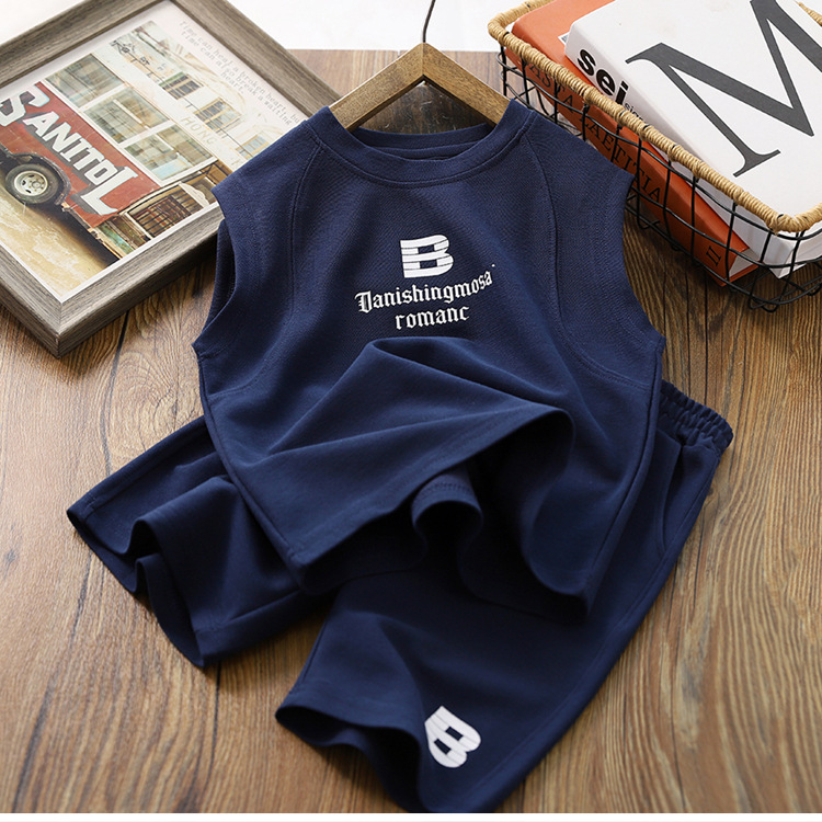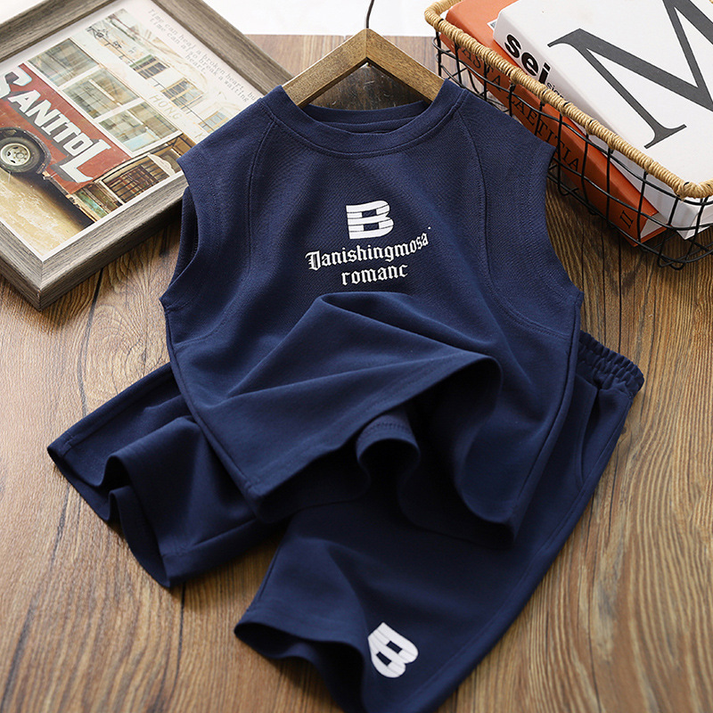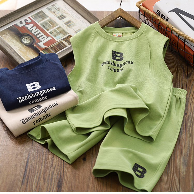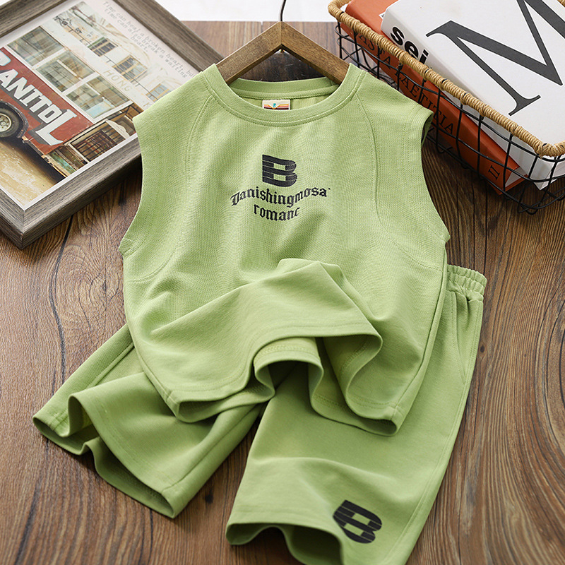 남학생 여름 원피스 대형 어린이 조끼 세트 여름 새 어린이 얇은 민소매 티셔츠 반바지 스포츠 투피스 세트