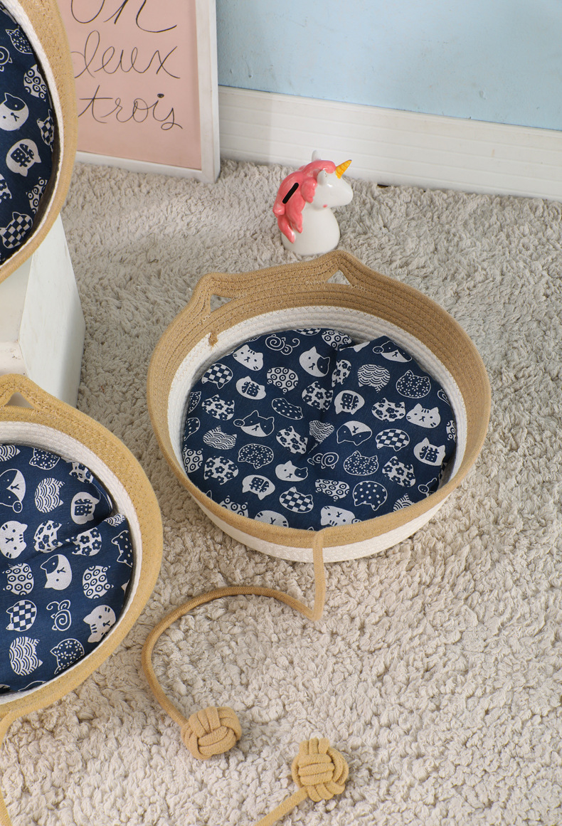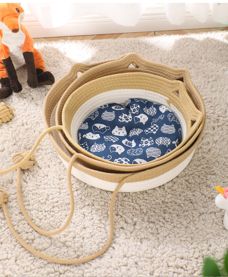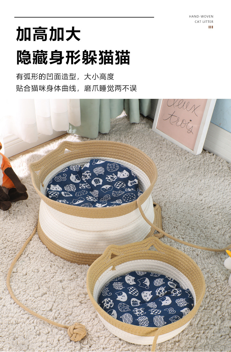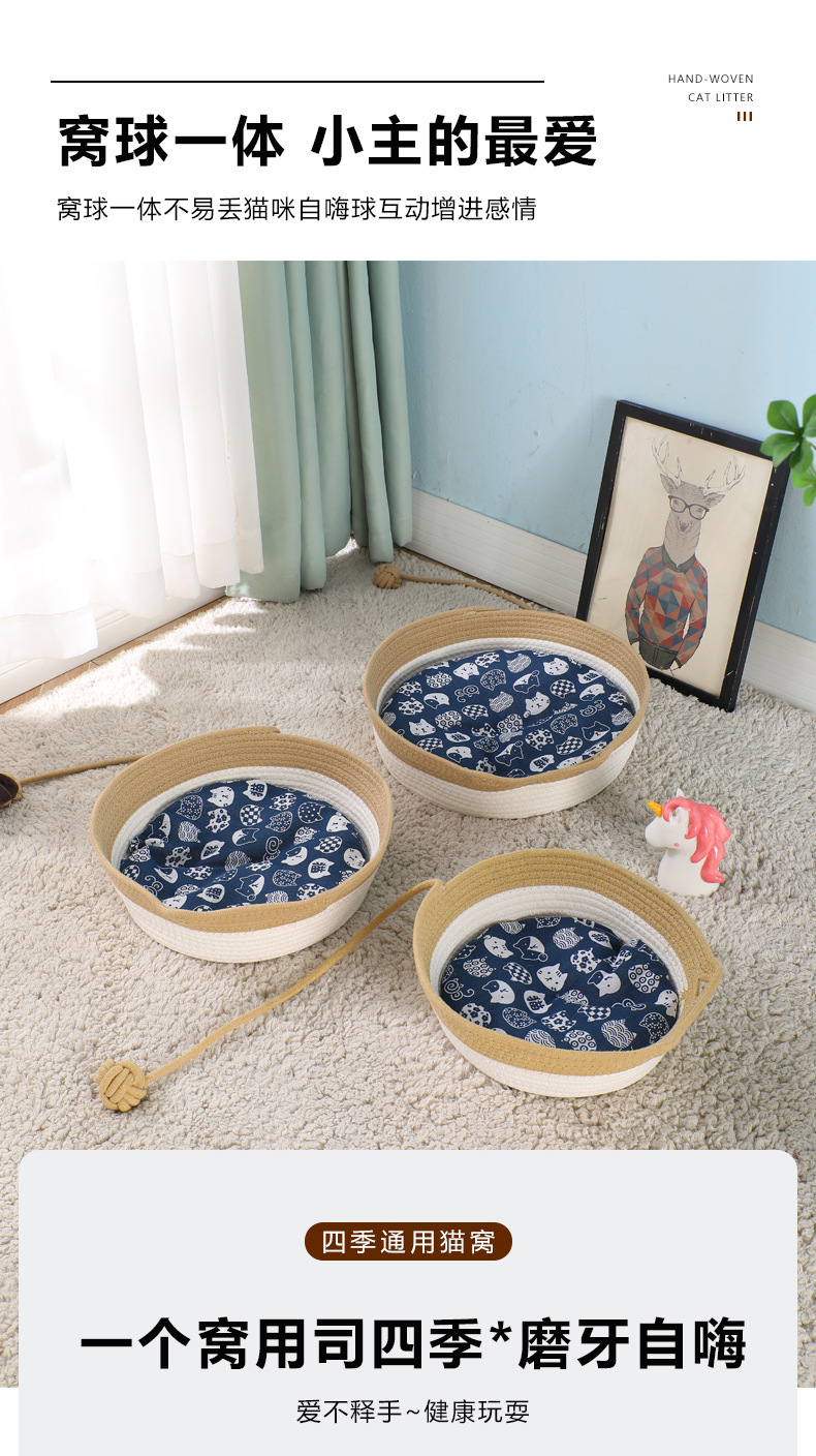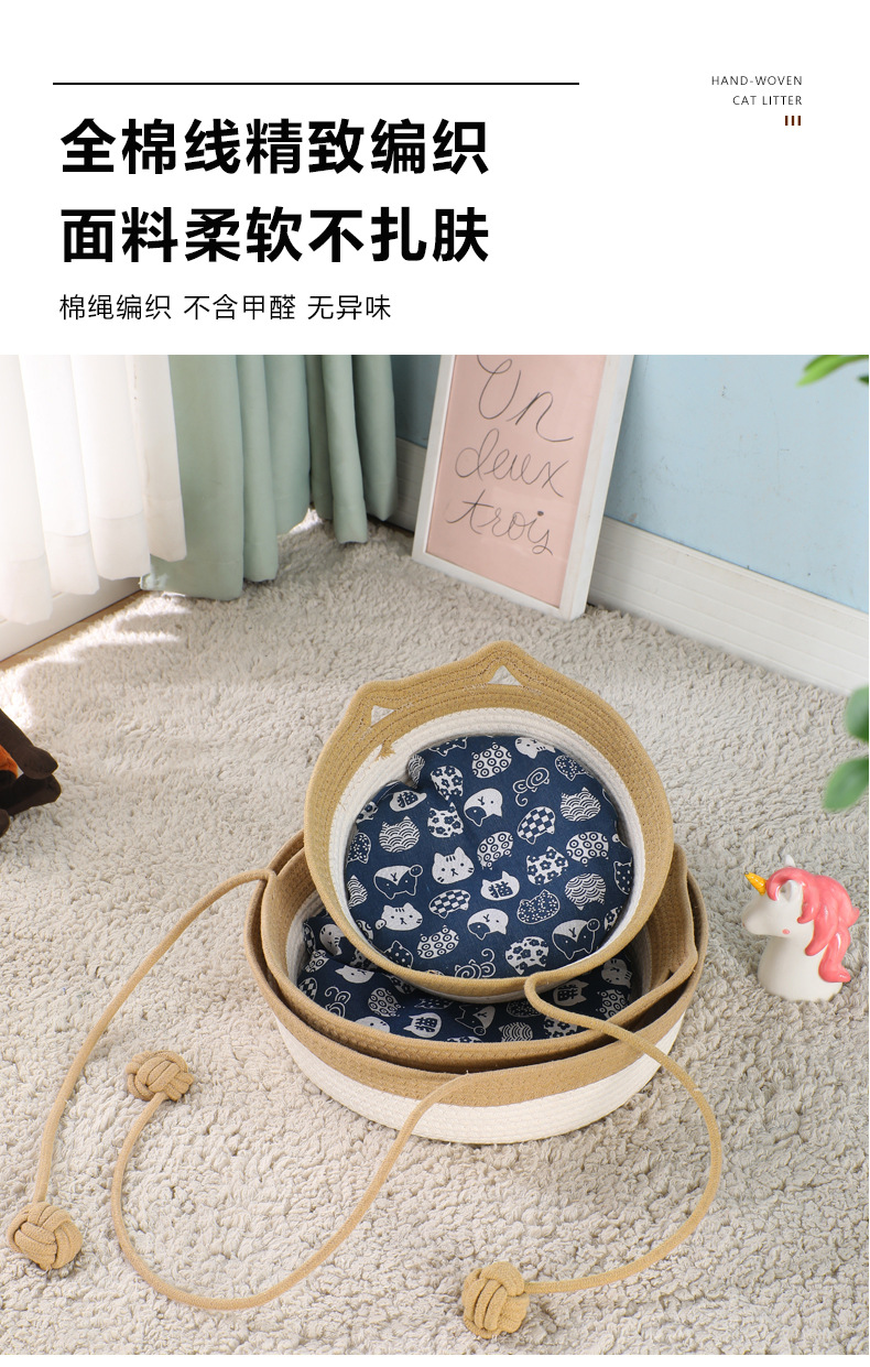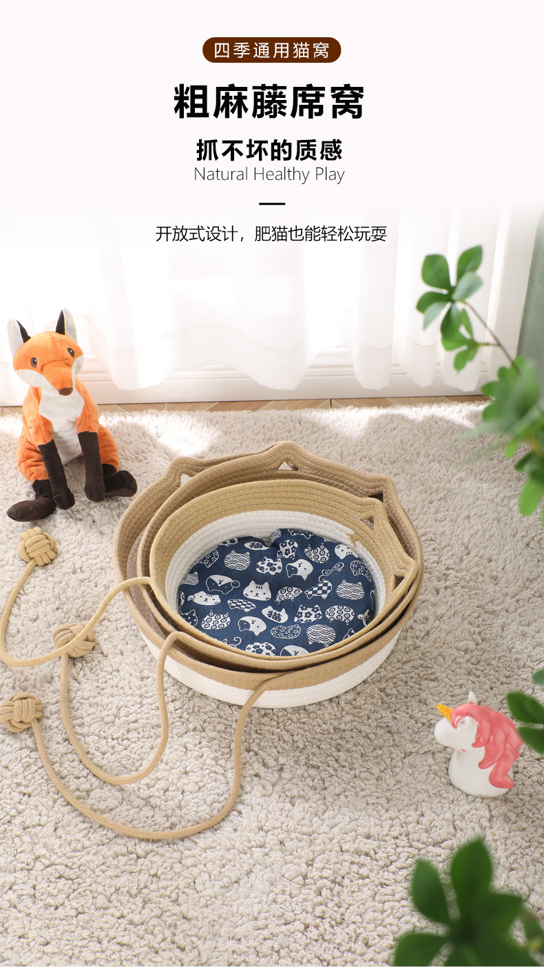 등나무 및 밀짚 일본 고양이 둥지 여름 반 폐쇄 밀짚 고양이 둥지 대형 사계절 유니버설 애완 동물 둥지 애완 동물 용품