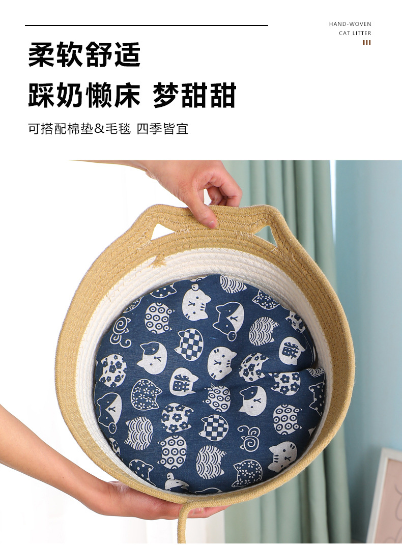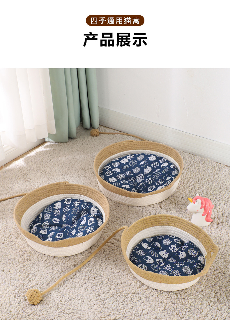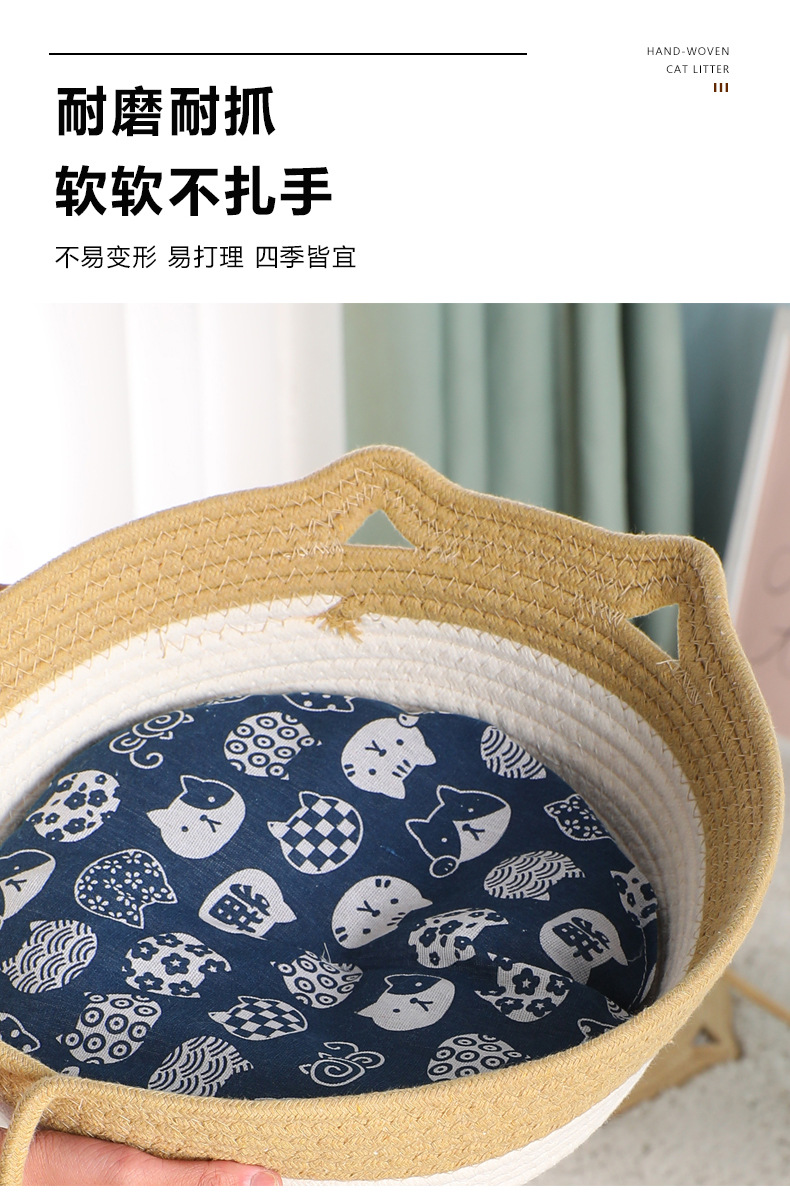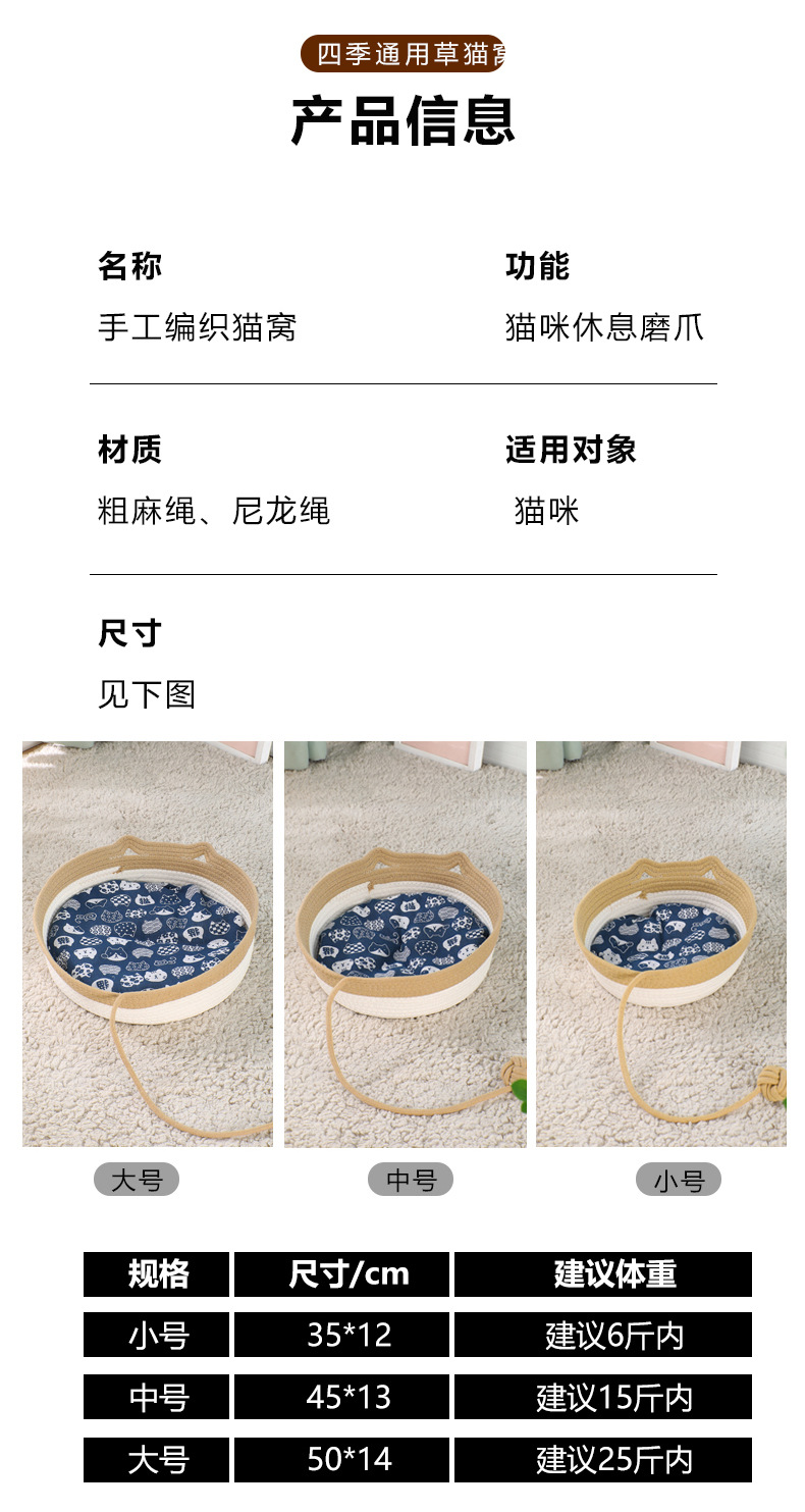 등나무 및 밀짚 일본 고양이 둥지 여름 반 폐쇄 밀짚 고양이 둥지 대형 사계절 유니버설 애완 동물 둥지 애완 동물 용품스토어 가기