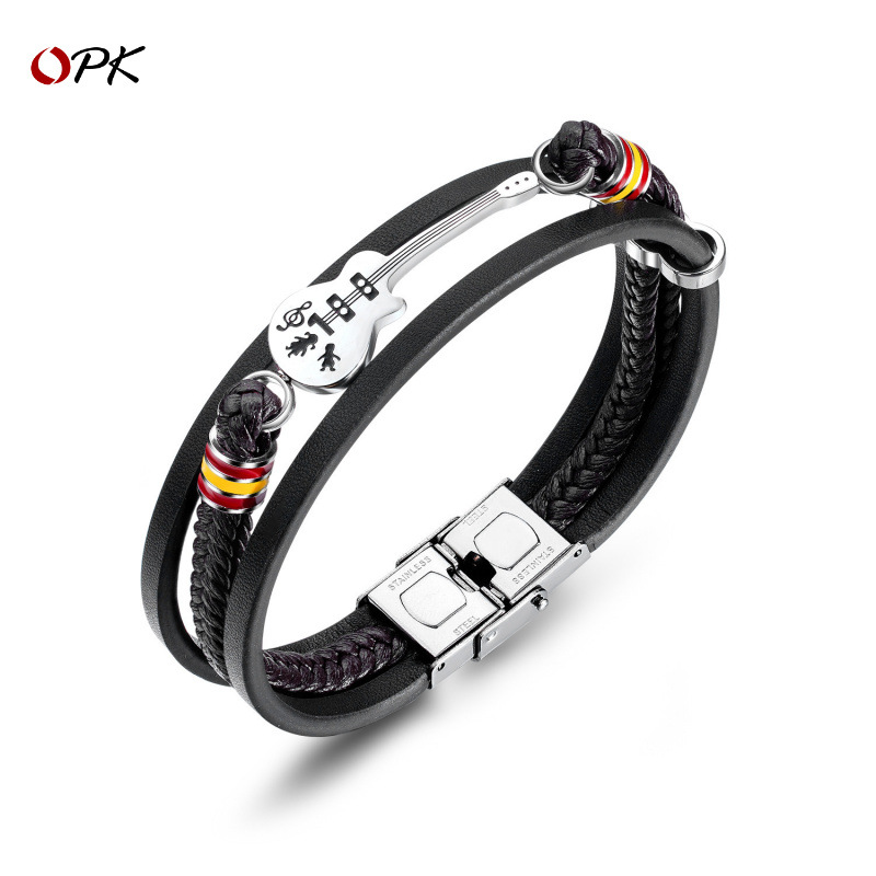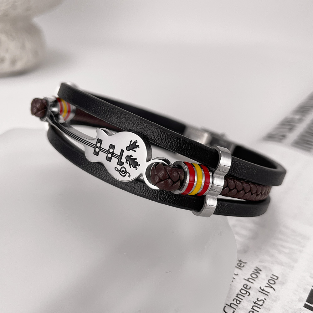 유럽풍 펑크 남성 가죽 팔찌 남성 기타 팔찌 다층 꼬임 가죽줄 남자친구 선물