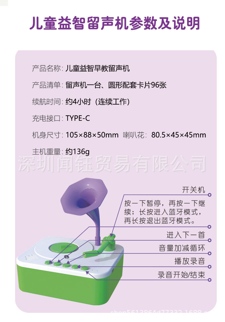 국경 간 조기 교육 축음기 어린이 교육 교육 학습 카드 기계 카드 삽입 및 읽기 블루투스 레코더 스토리 기계스토어 가기