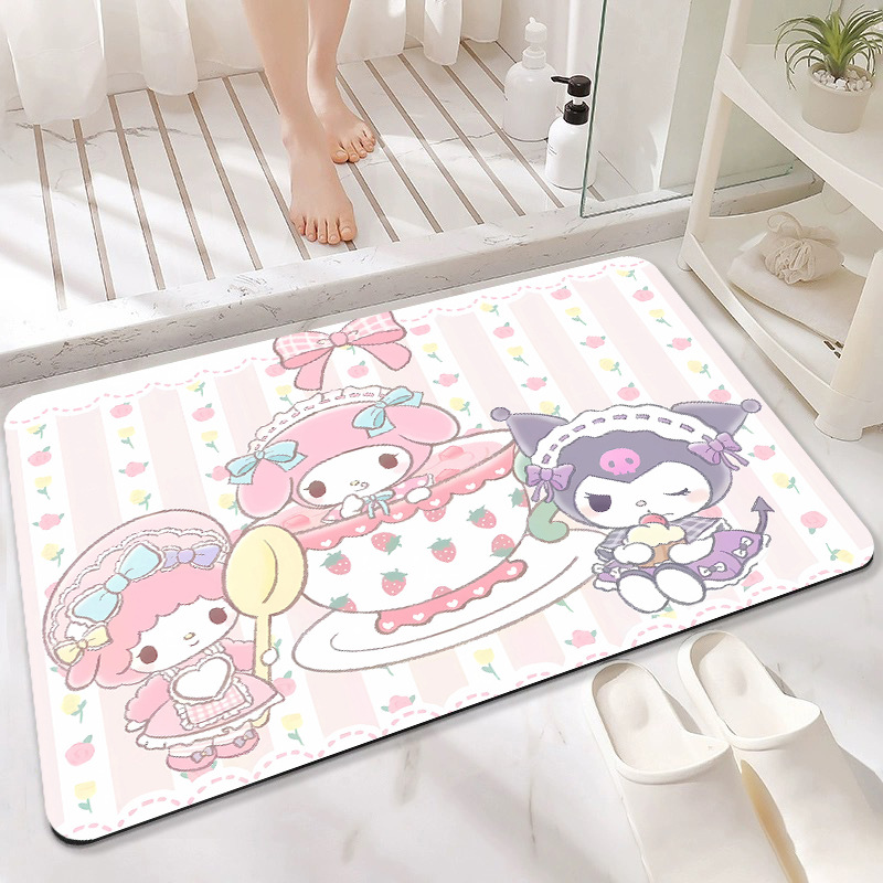 Xiaohongshu 인기 Sanrio 바닥 매트 만화 흡수성 욕실 발 매트 카펫 미끄럼 방지 욕실 귀여운 매트