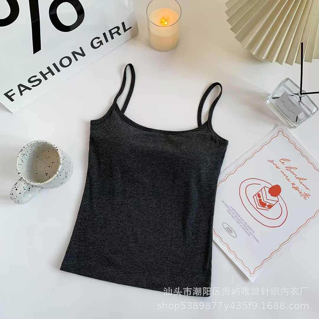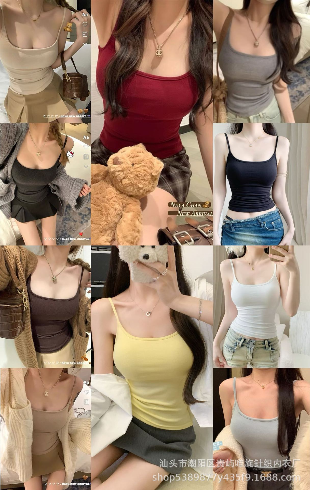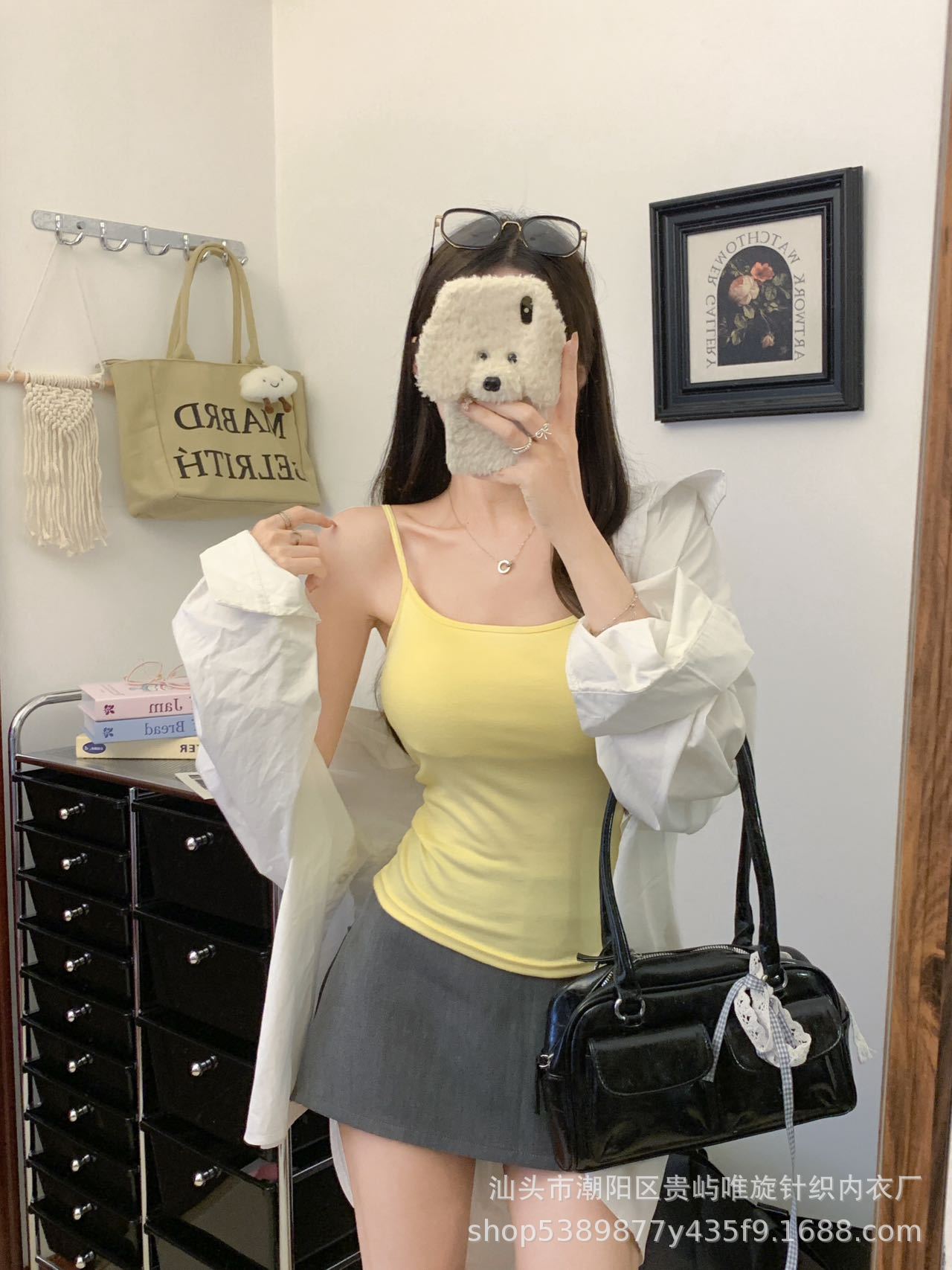 봄과 여름 새로운 순수한 바람 벨트 가슴 패드 분리 가능한 가슴 패드 작은 카미 솔 슬림-적합 긴 내부 탑베이스 셔츠스토어 가기