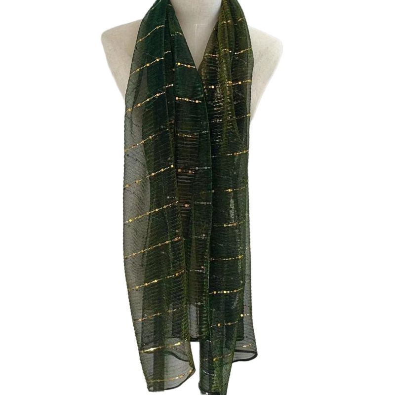 2024 새로운 스타일 주름 레이스 색상 변경 골드 라인 스카프 여자 긴 올매치 숄리 다이아몬드가 박힌 스카프 무슬림 바오 투
