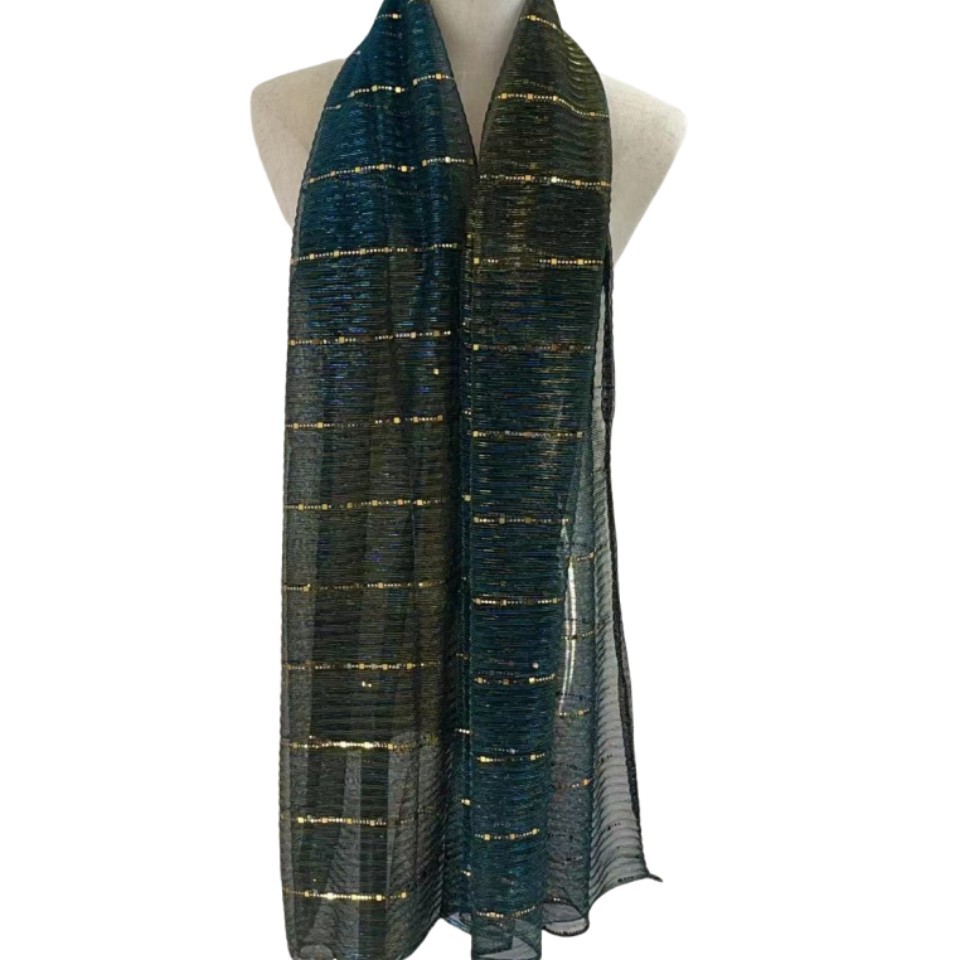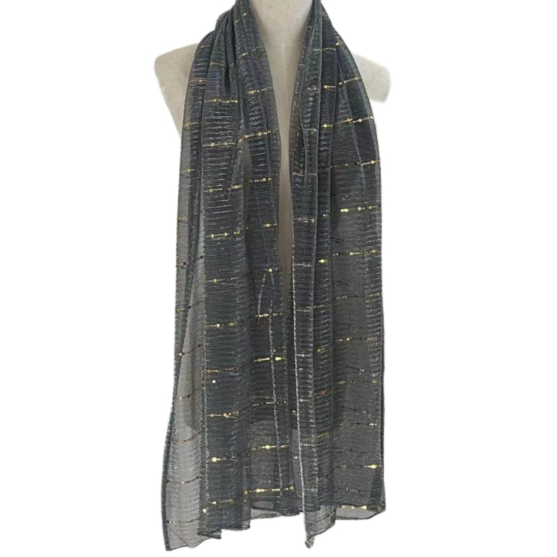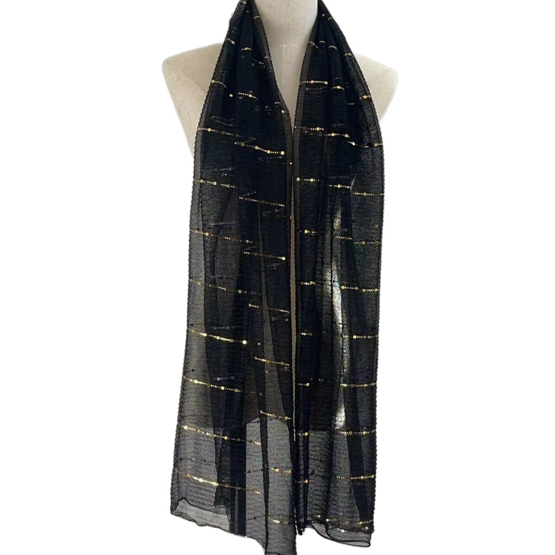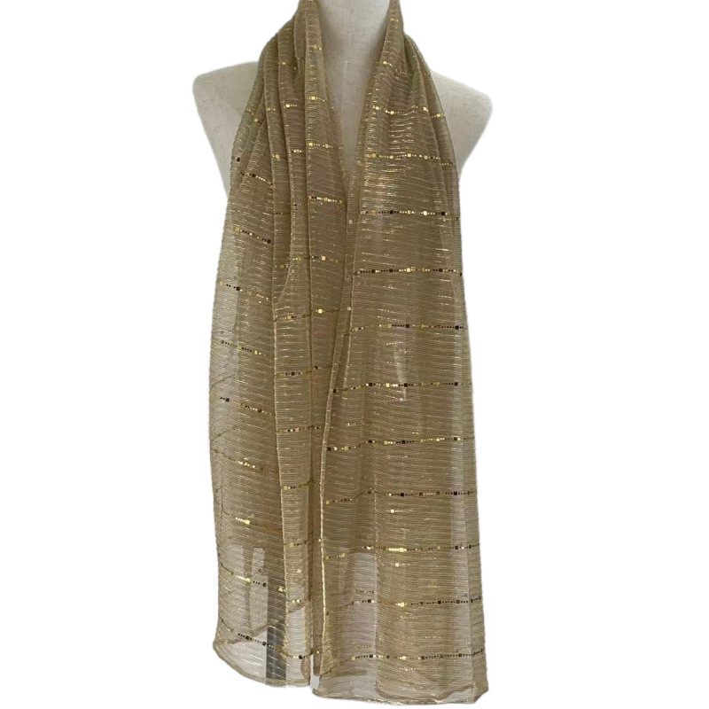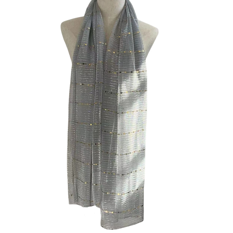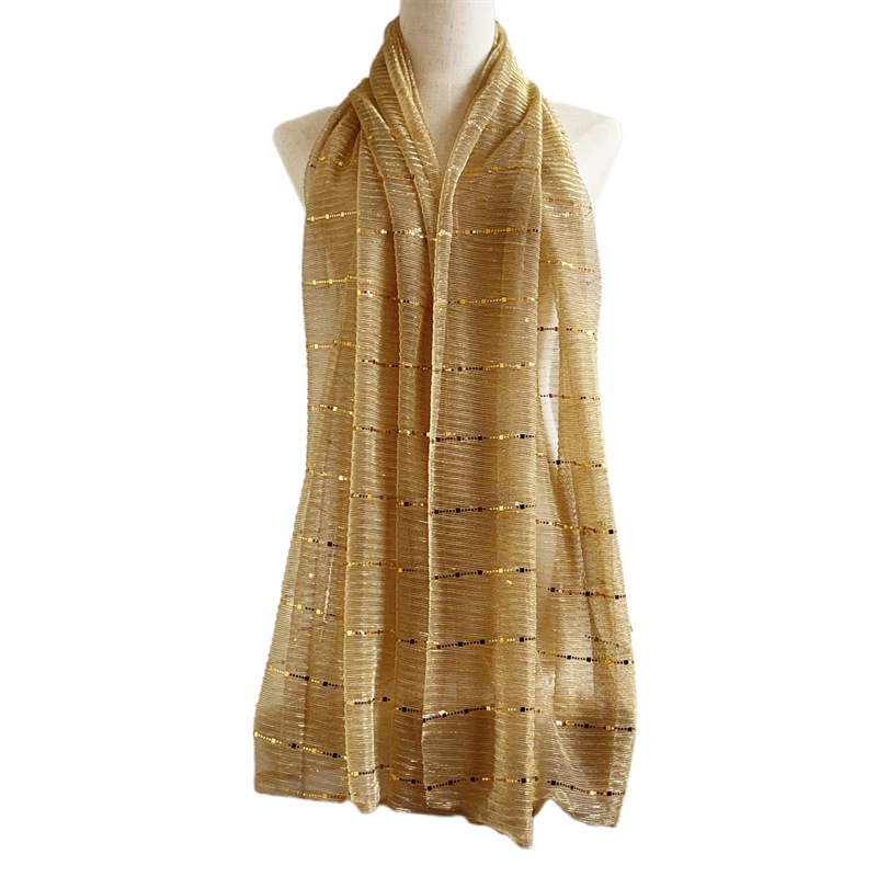 2024 새로운 스타일 주름 레이스 색상 변경 골드 라인 스카프 여자 긴 올매치 숄리 다이아몬드가 박힌 스카프 무슬림 바오 투스토어 가기