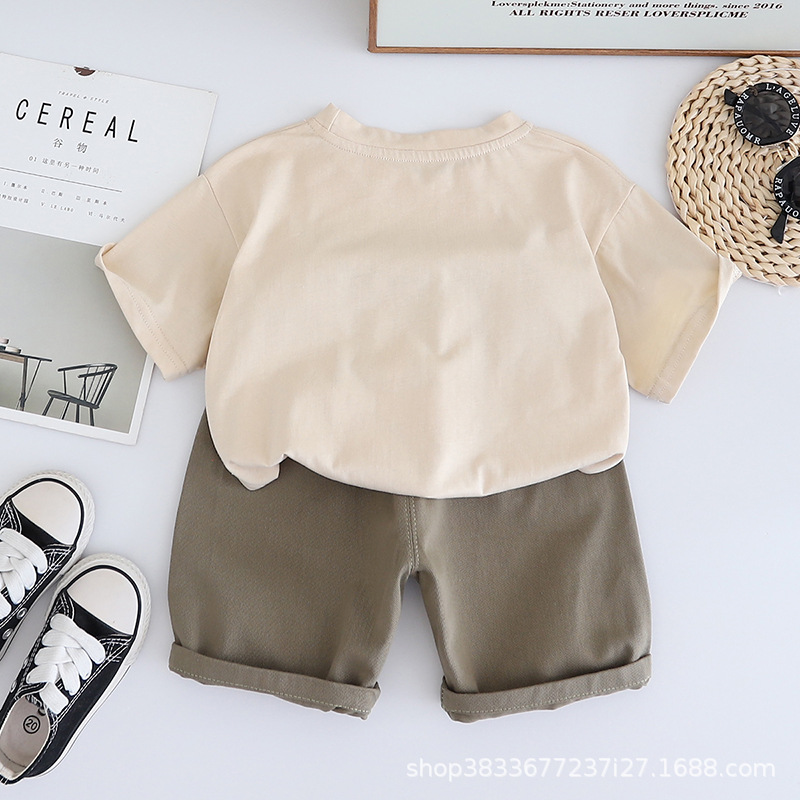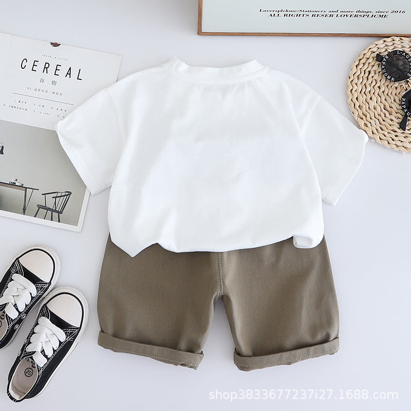 어린이 여름 승무원 세트 프린트 오리 반팔 티셔츠 캐주얼 남성 아기 1-3 어린이 옷 여름 투피스 세트스토어 가기