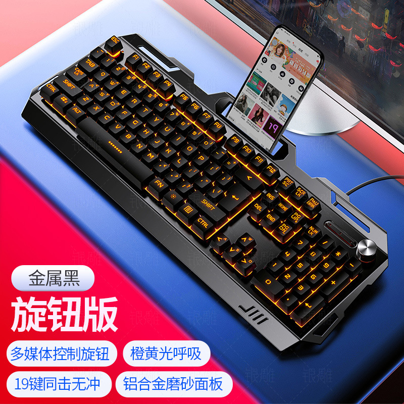 银雕k002金属机械手感游戏键盘有线台式电脑笔记本外接usb吃鸡
