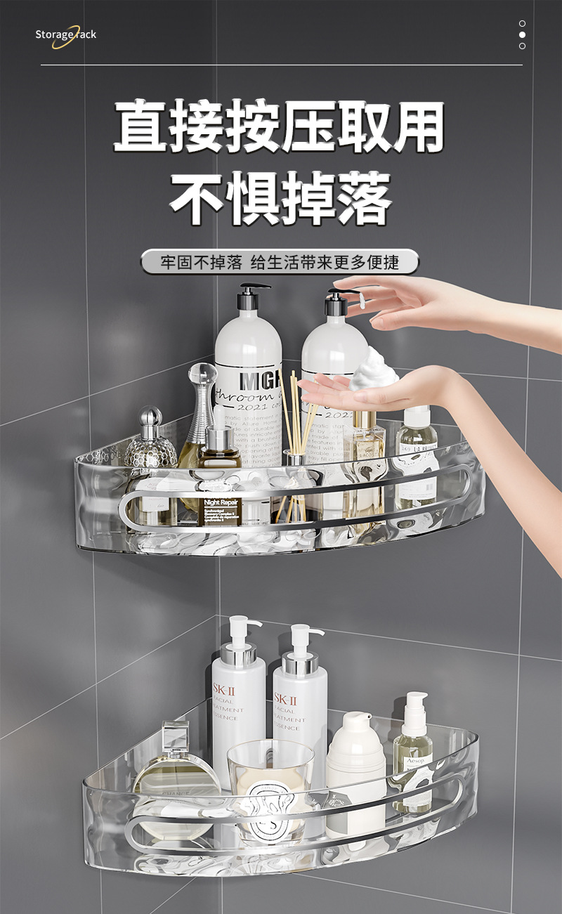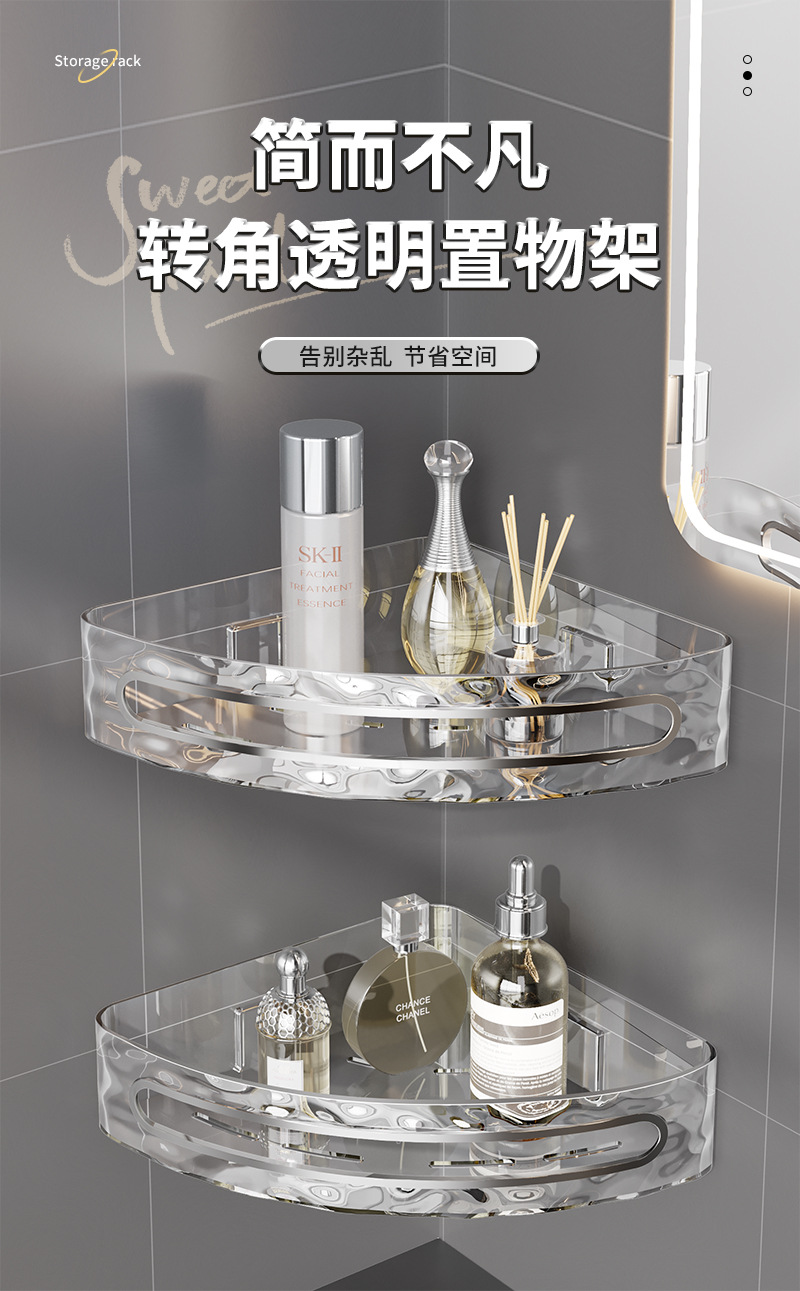 빙하 패턴 화장실 보관 랙 펀치없는 화장실 벽 화장실 선반 가정용 벽 장착 욕실 보관 랙