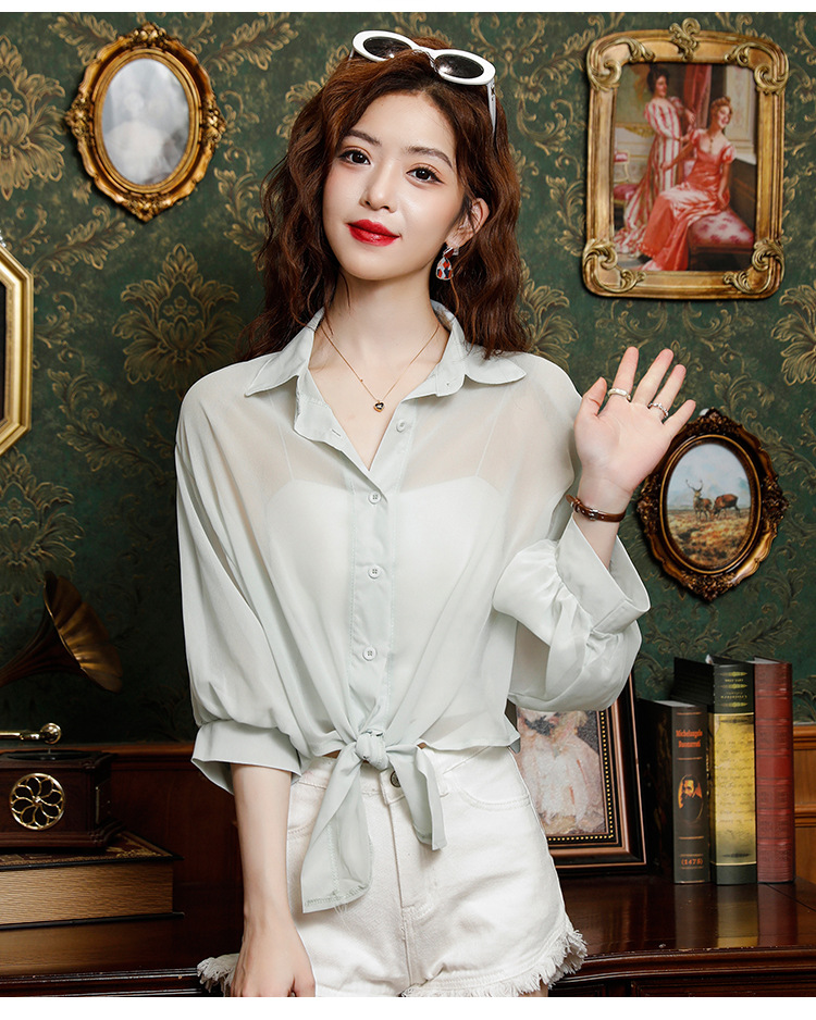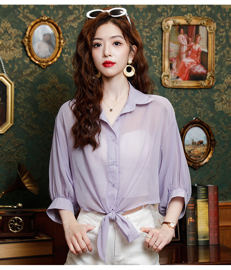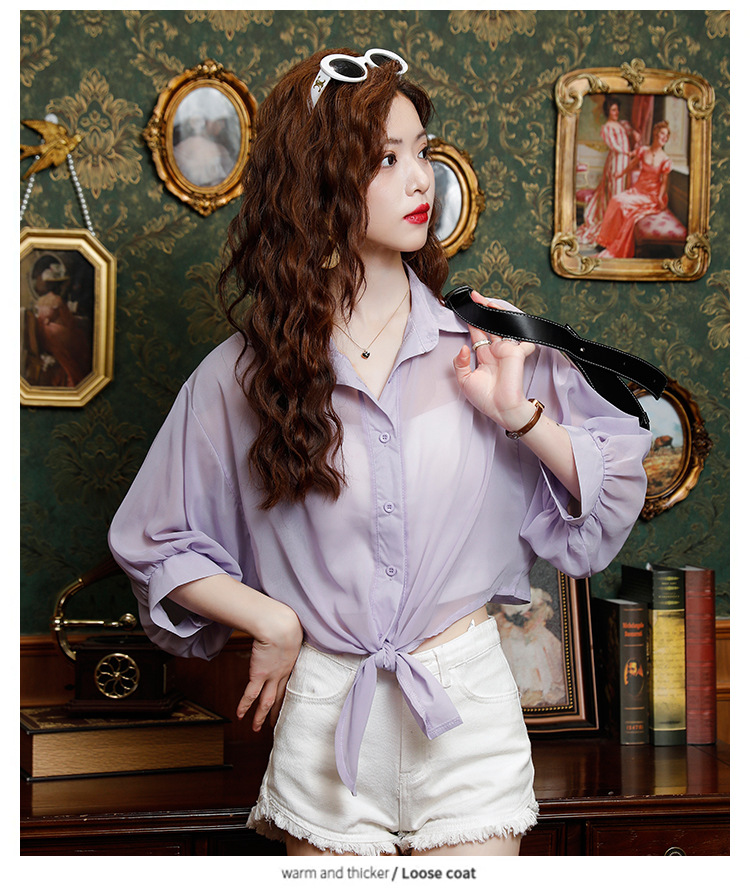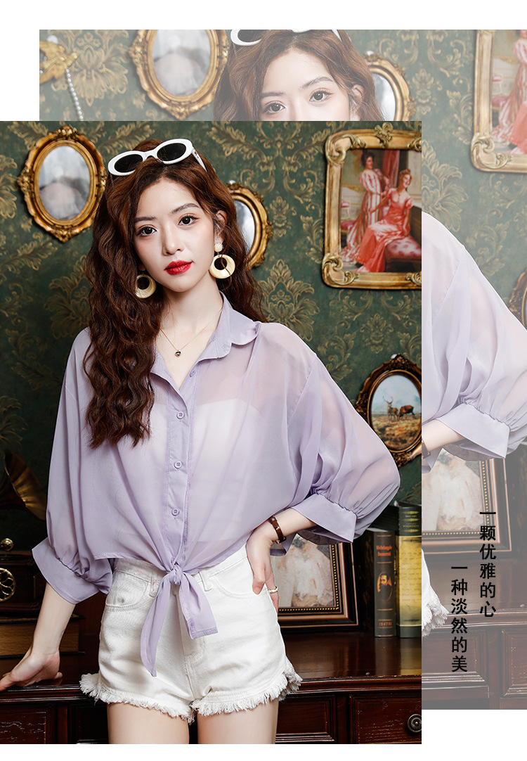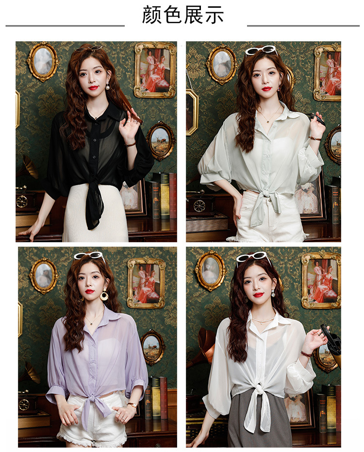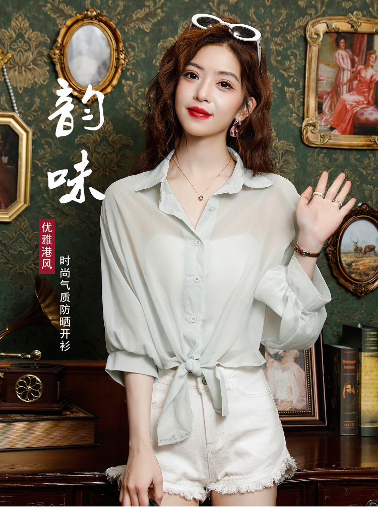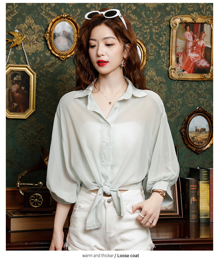 작은 목도리 여성의 여름 원피스 슬링 태양 보호 의류 카디건 얇은 느슨한 탑 착용 짧은 쉬폰 셔츠 외부스토어 가기