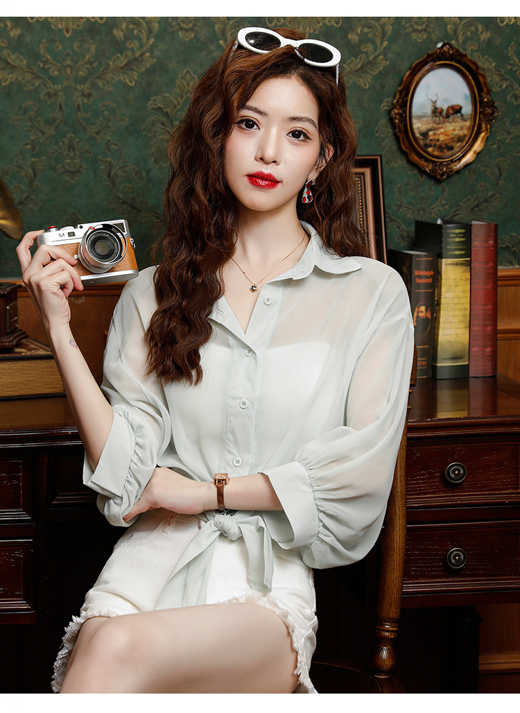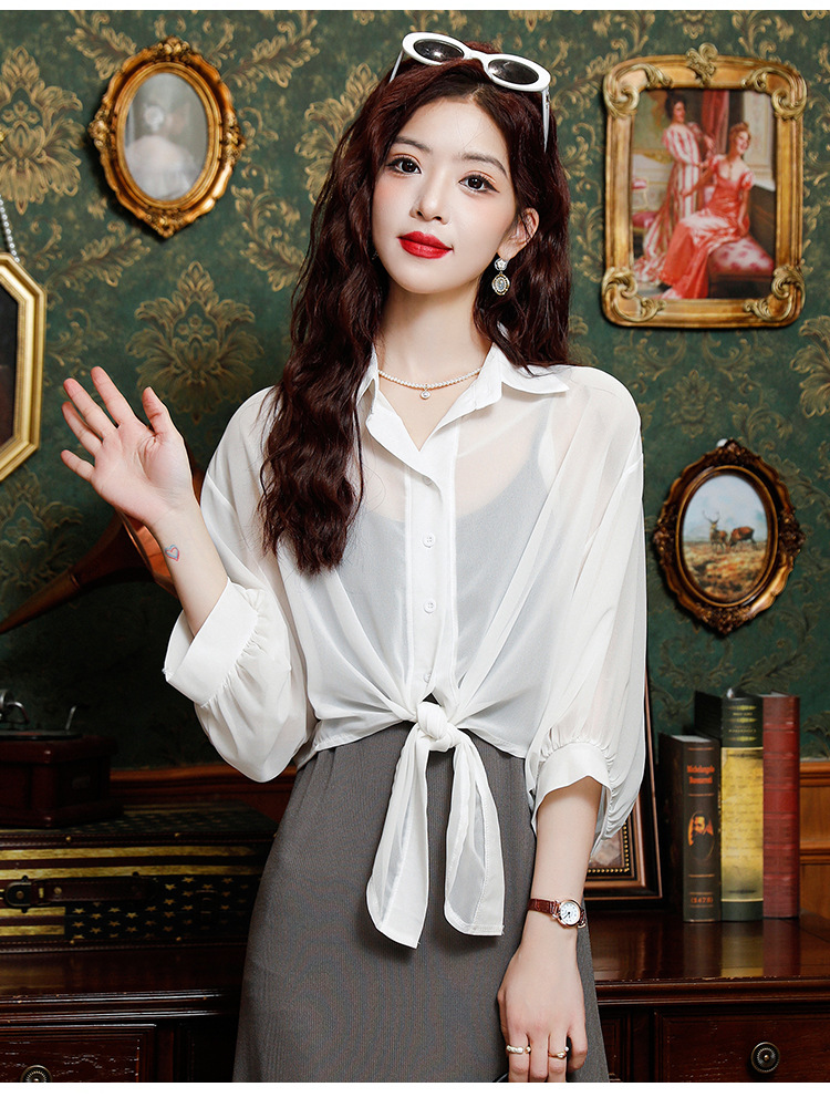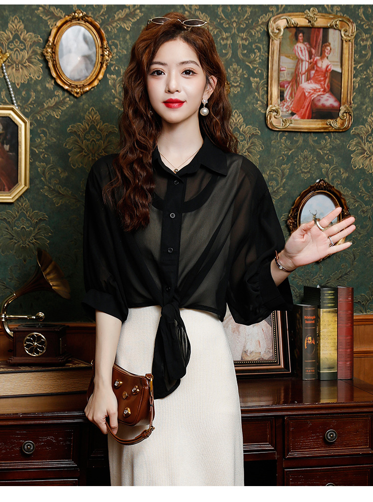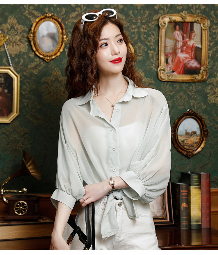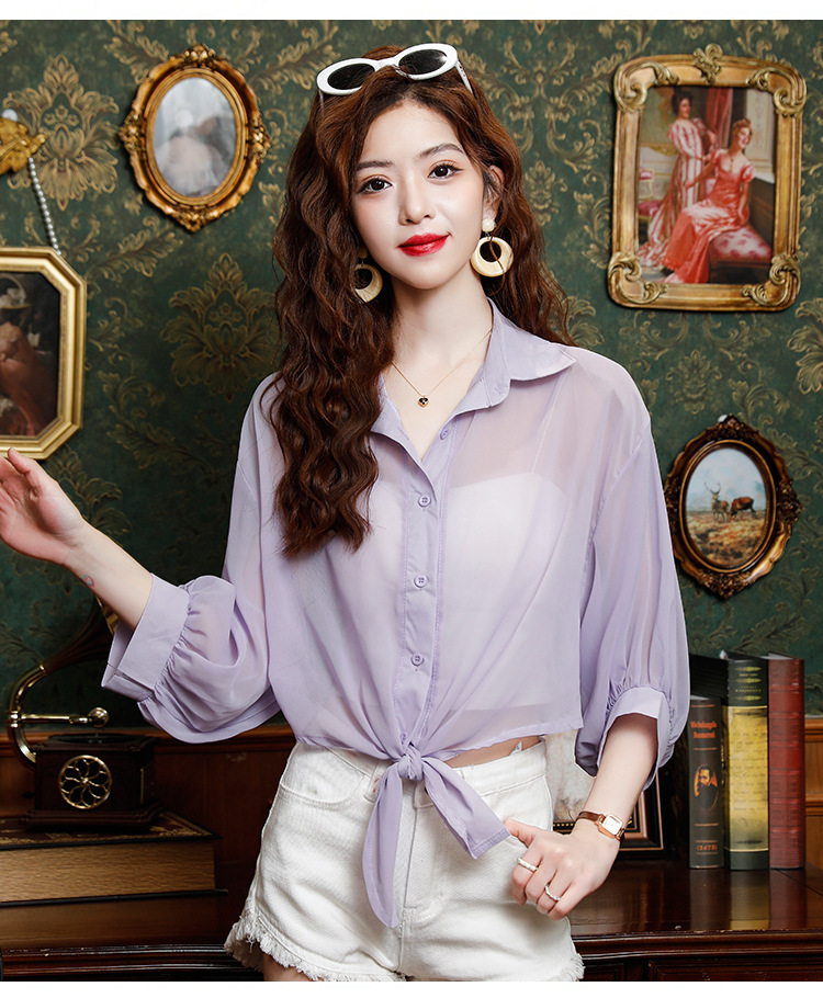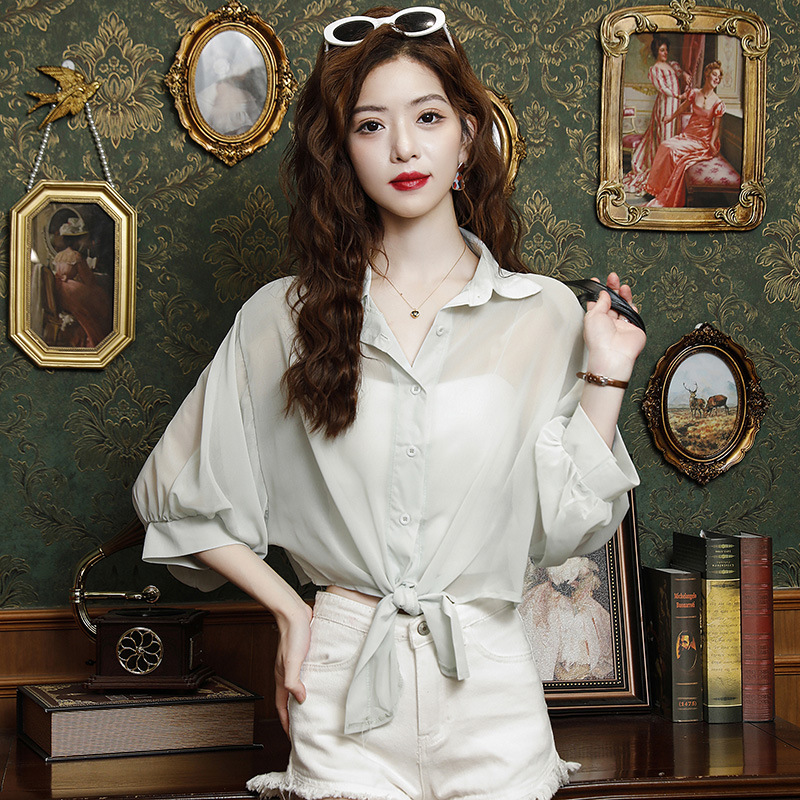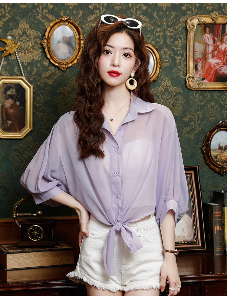 작은 목도리 여성의 여름 원피스 슬링 태양 보호 의류 카디건 얇은 느슨한 탑 착용 짧은 쉬폰 셔츠 외부스토어 가기