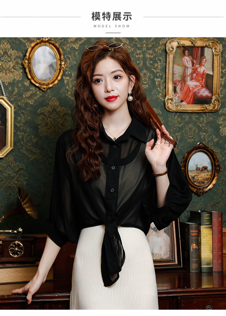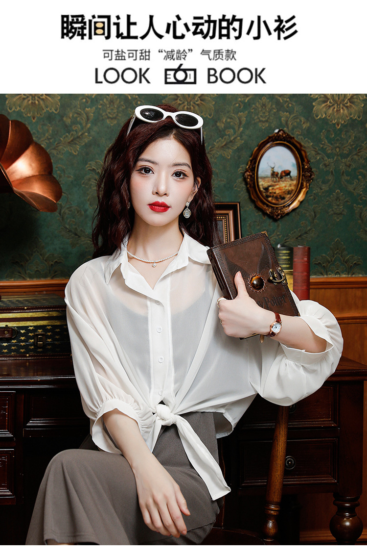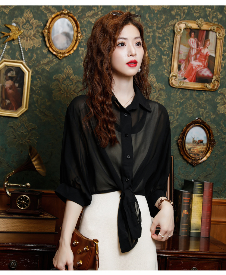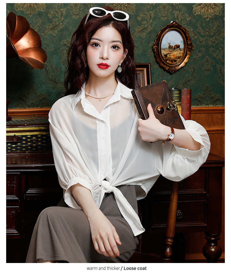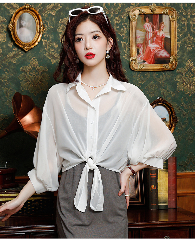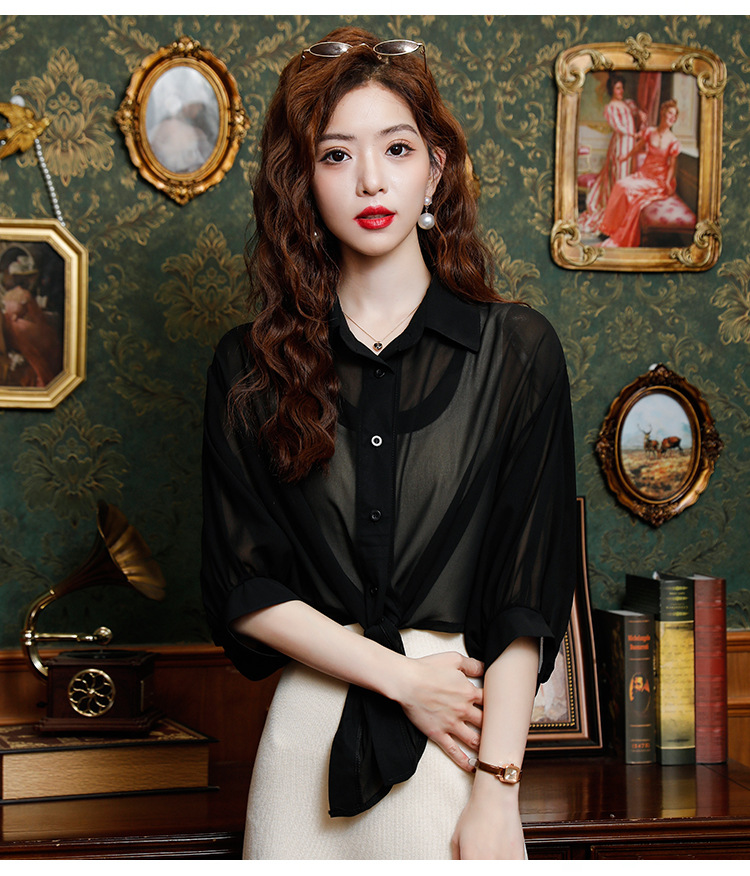 작은 목도리 여성의 여름 원피스 슬링 태양 보호 의류 카디건 얇은 느슨한 탑 착용 짧은 쉬폰 셔츠 외부스토어 가기