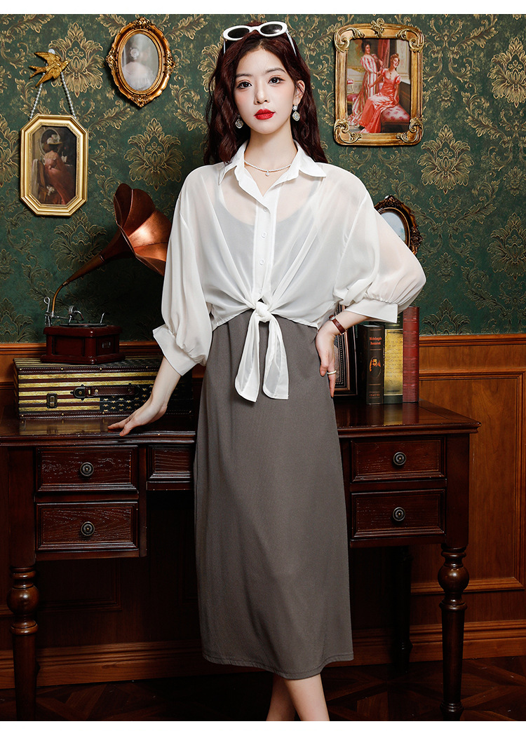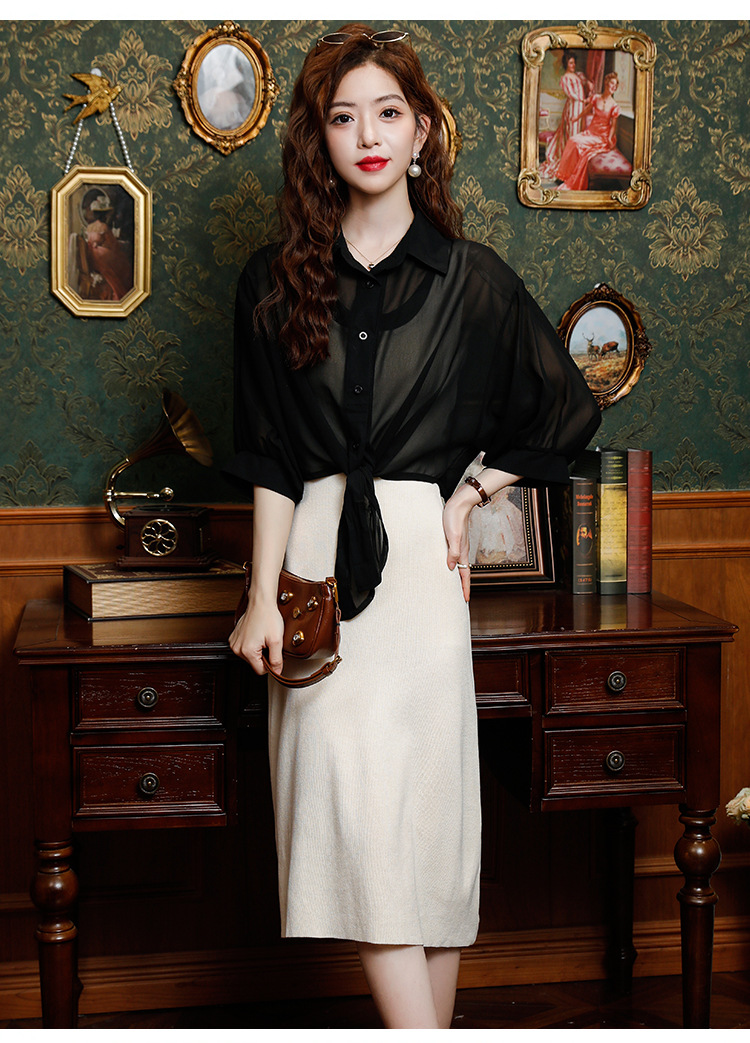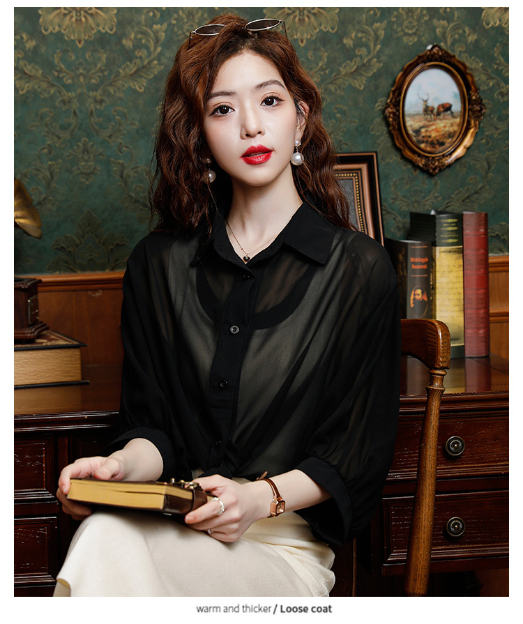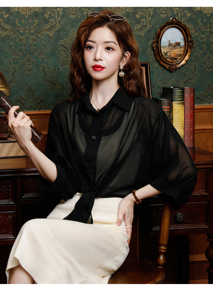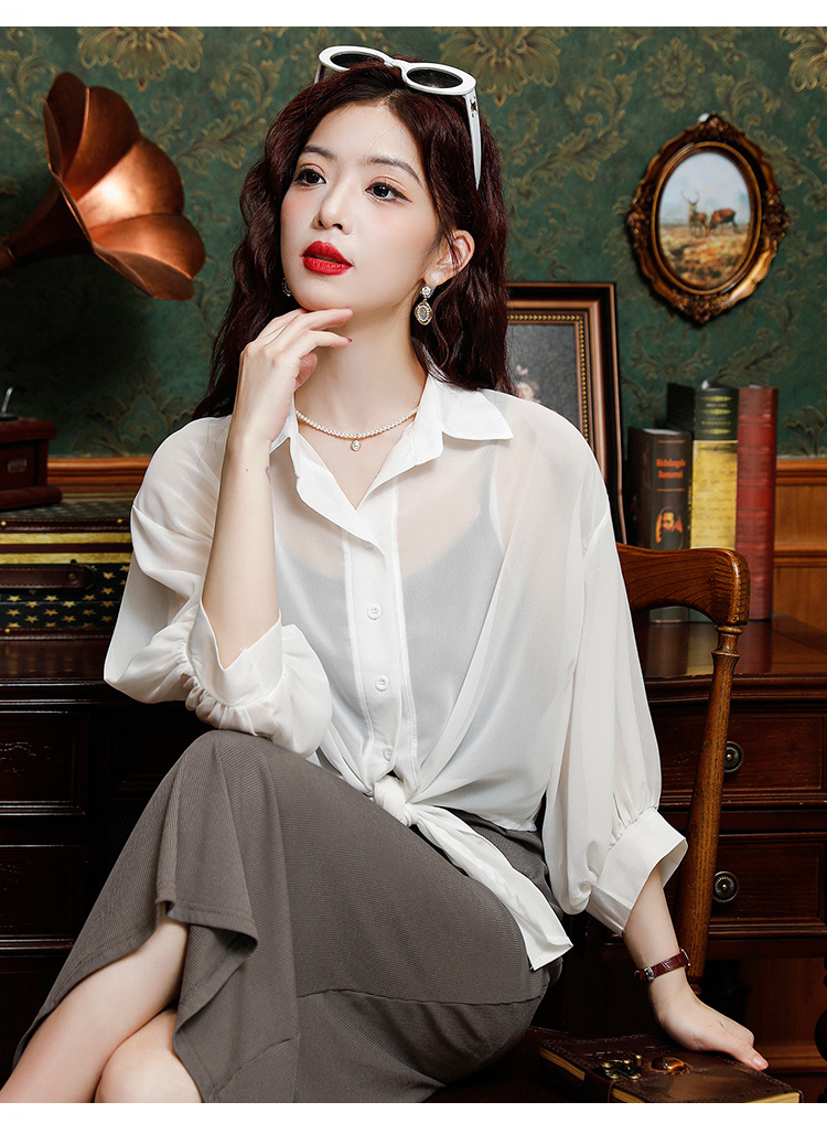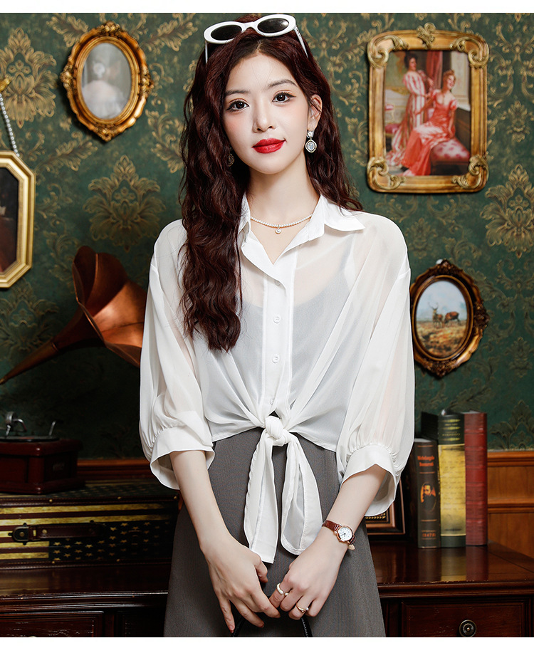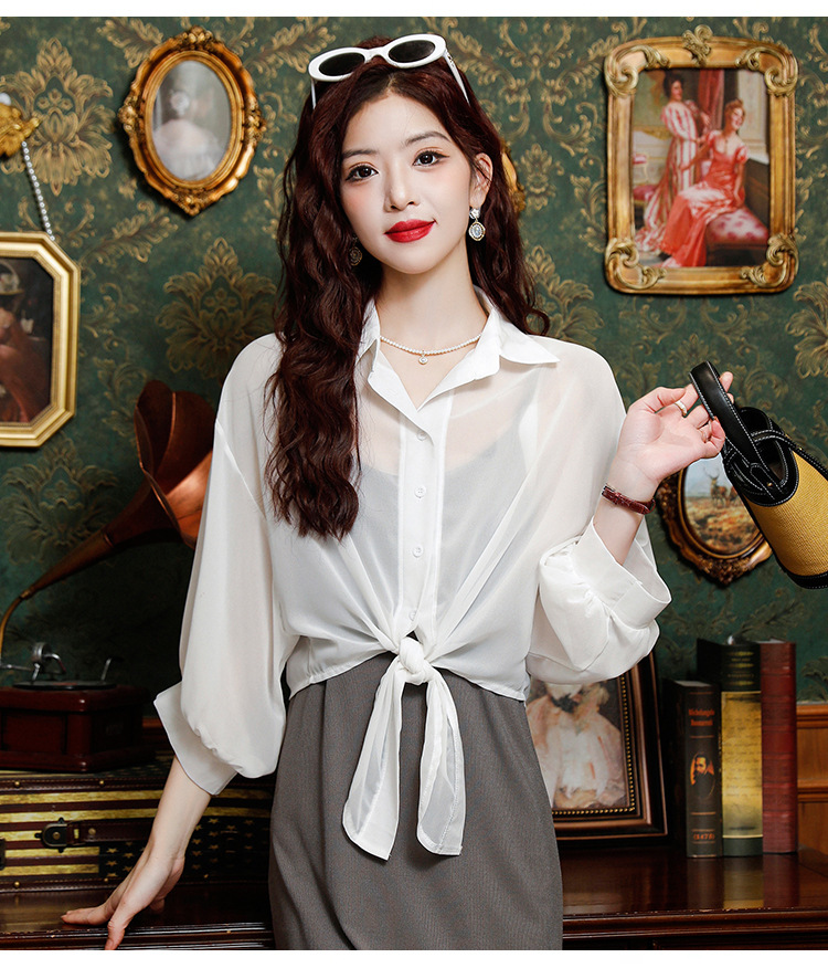 작은 목도리 여성의 여름 원피스 슬링 태양 보호 의류 카디건 얇은 느슨한 탑 착용 짧은 쉬폰 셔츠 외부스토어 가기