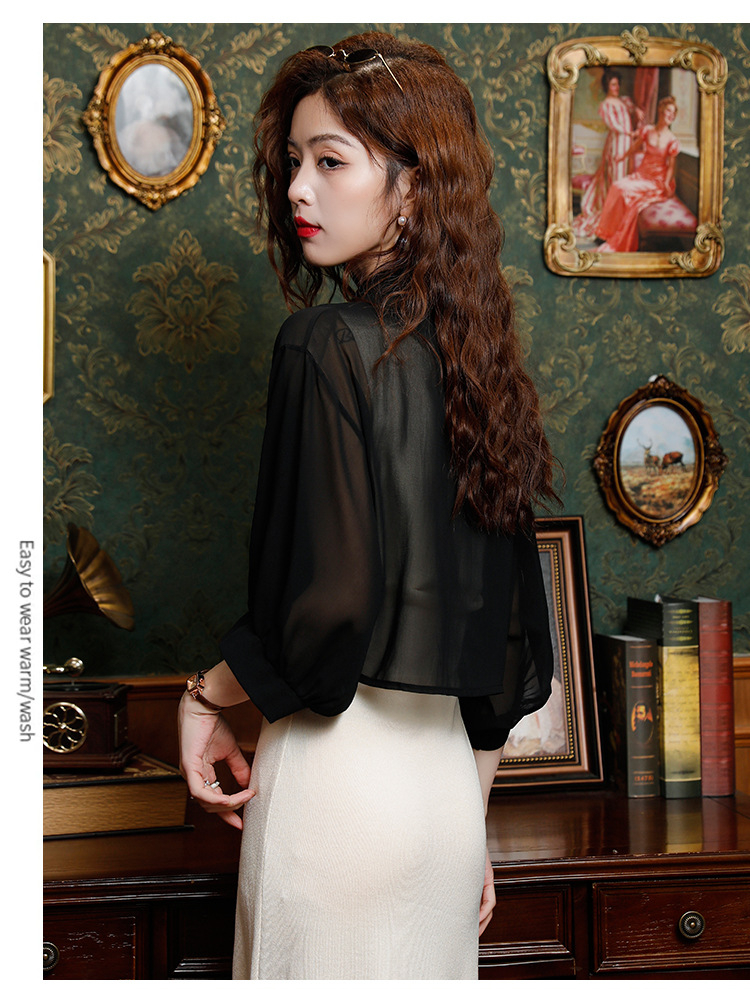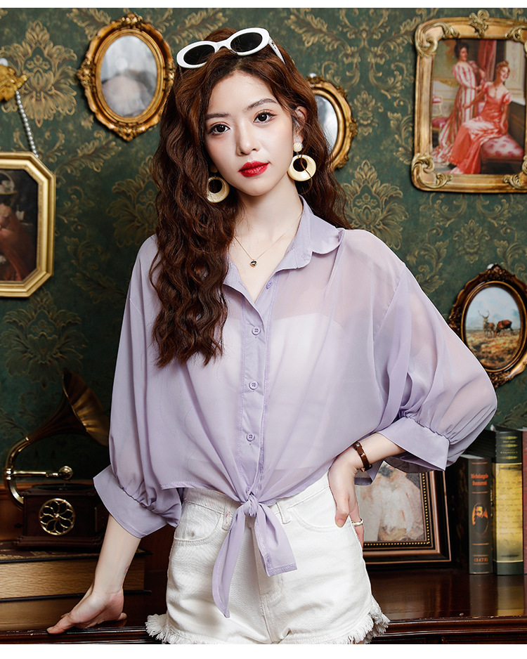 작은 목도리 여성의 여름 원피스 슬링 태양 보호 의류 카디건 얇은 느슨한 탑 착용 짧은 쉬폰 셔츠 외부
