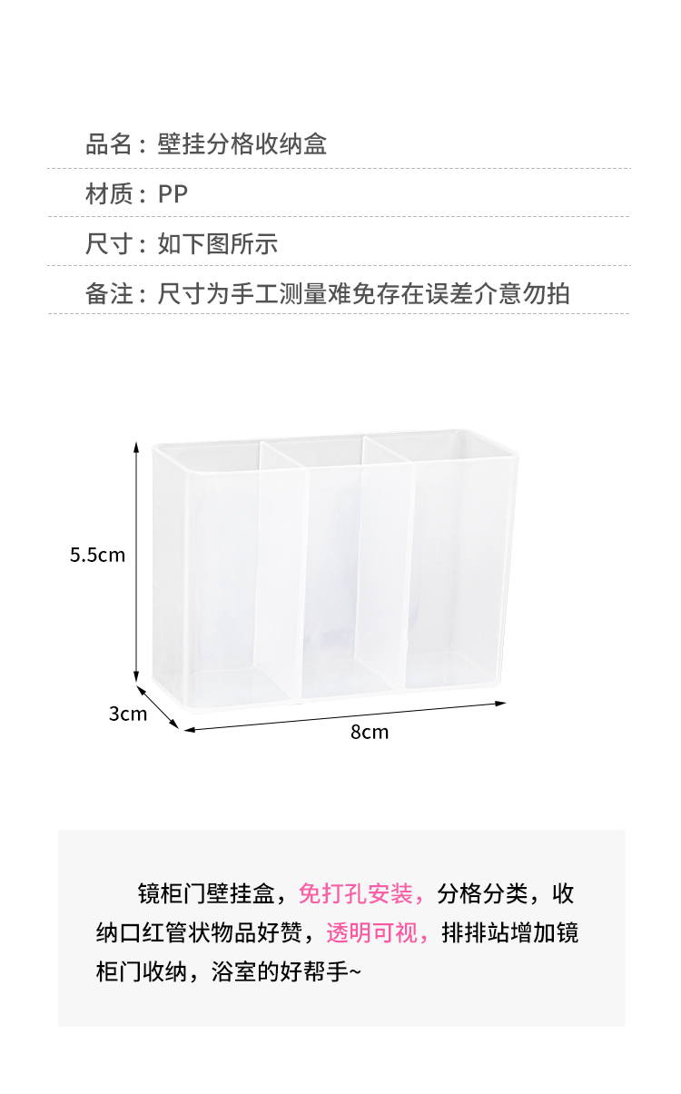 거울 캐비닛 벽 교수형 격자 상자 펀치없는 작은 것 저장 상자 눈썹 클램프 눈썹 펜 브러시 립스틱 보관 상자 마감