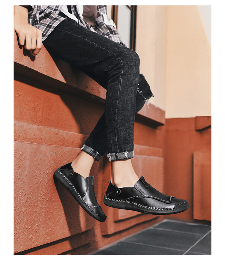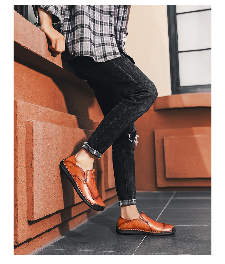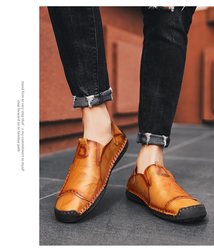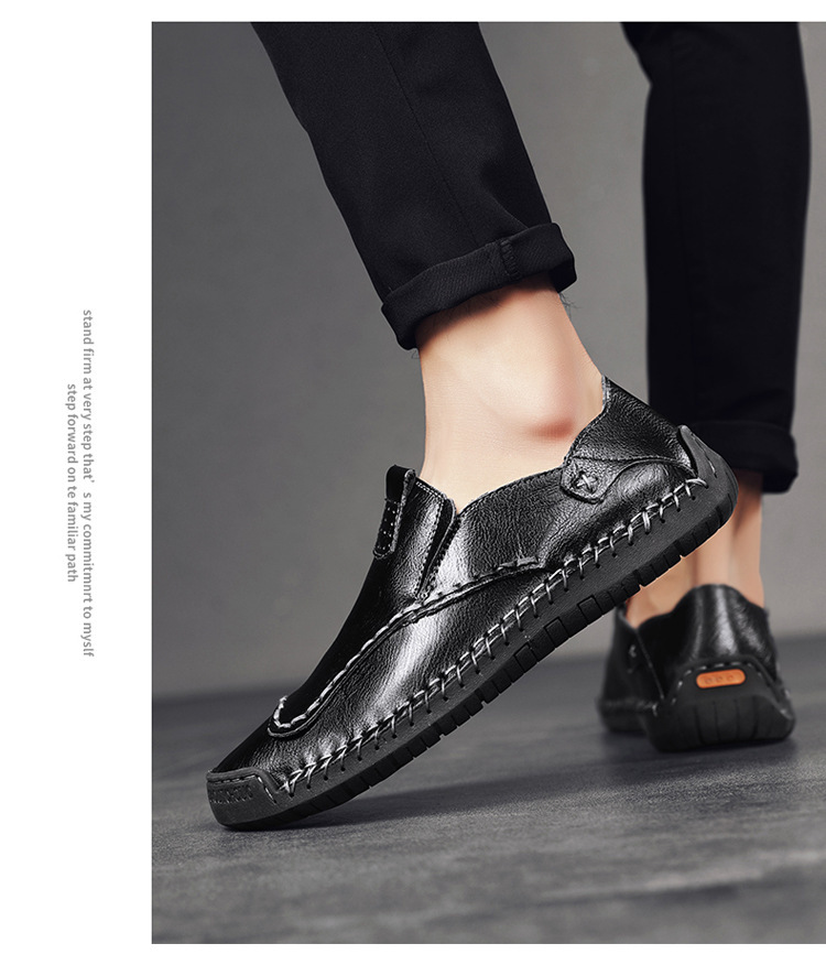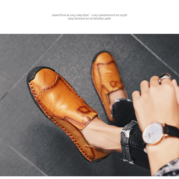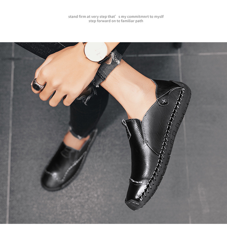 국경 간 아마존 대형 남성 캐주얼 가죽 신발 다리 소프트 하단 로퍼 영국 운전 신발 수제 콩 신발