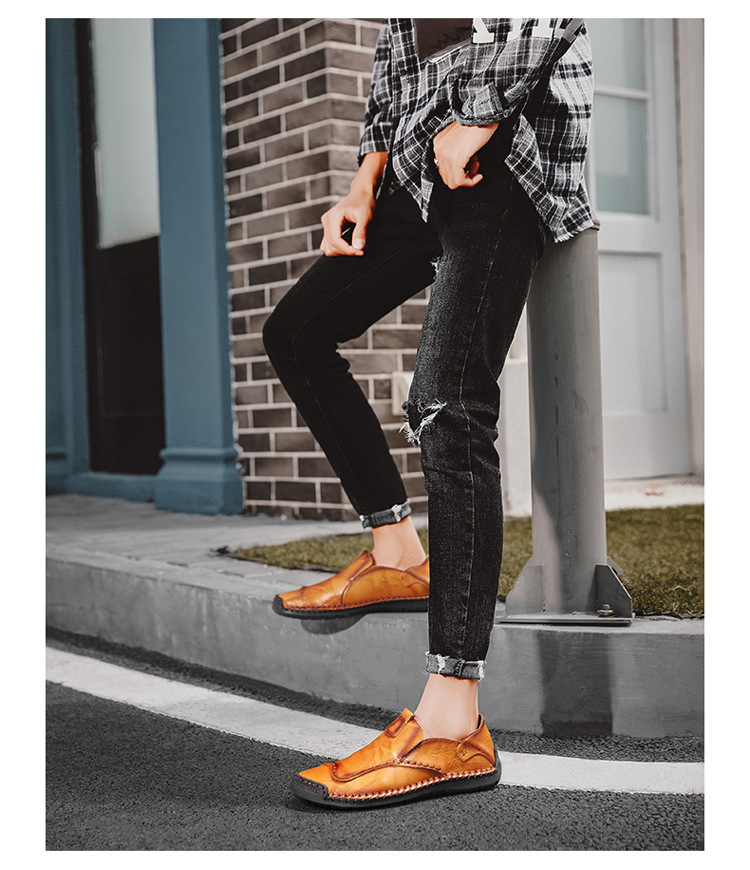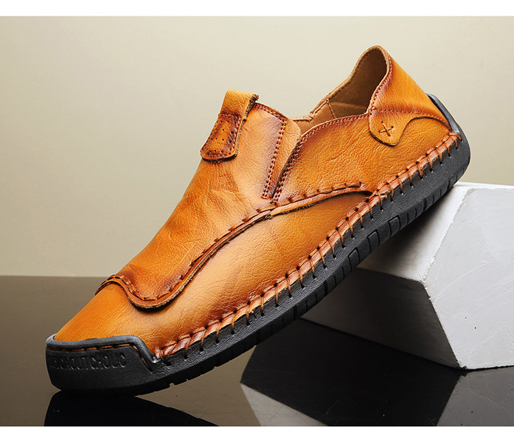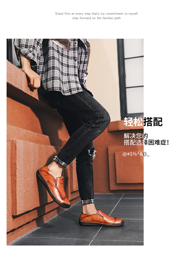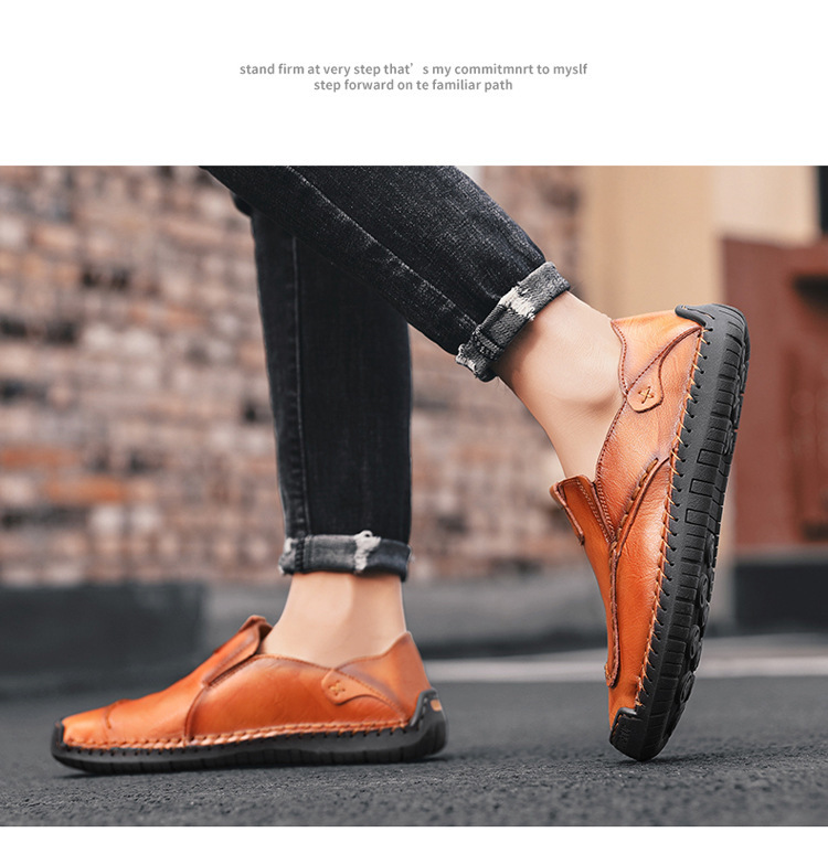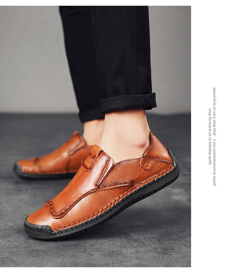 국경 간 아마존 대형 남성 캐주얼 가죽 신발 다리 소프트 하단 로퍼 영국 운전 신발 수제 콩 신발