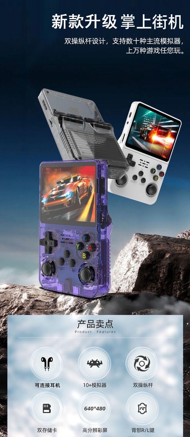 국경 간 새로운 R36S 휴대용 게임 콘솔 HD PS1 대형 화면 휴대용 PSP 레트로 GBA 휴대용 아케이드 게임스토어 가기