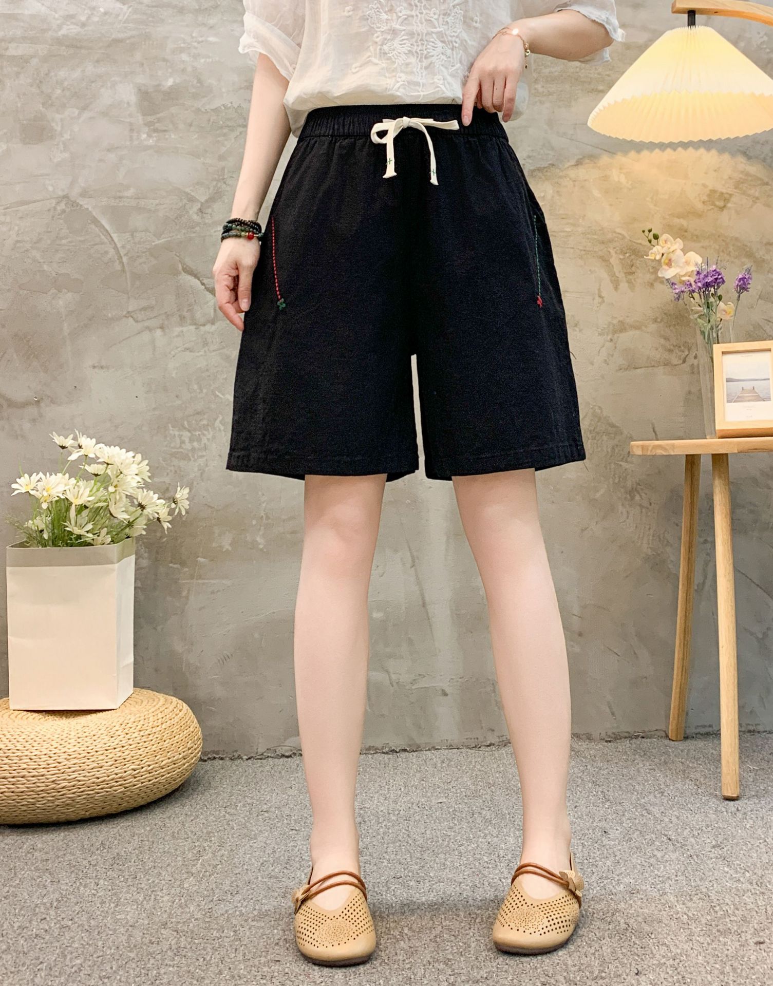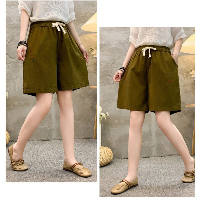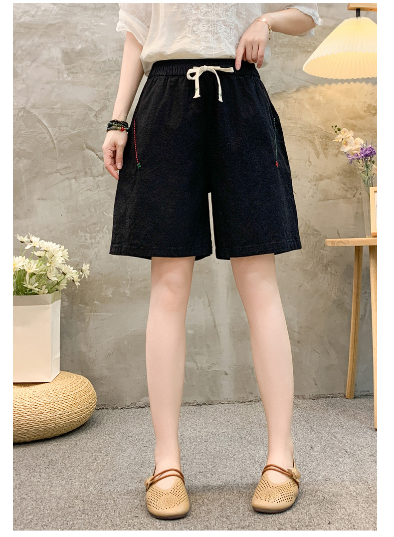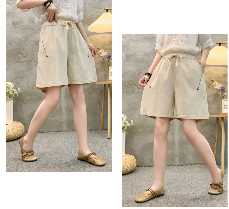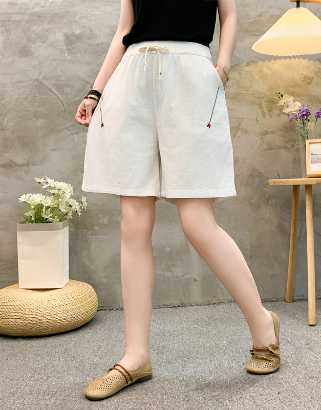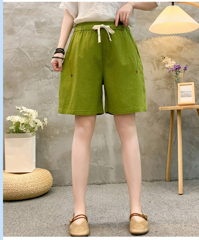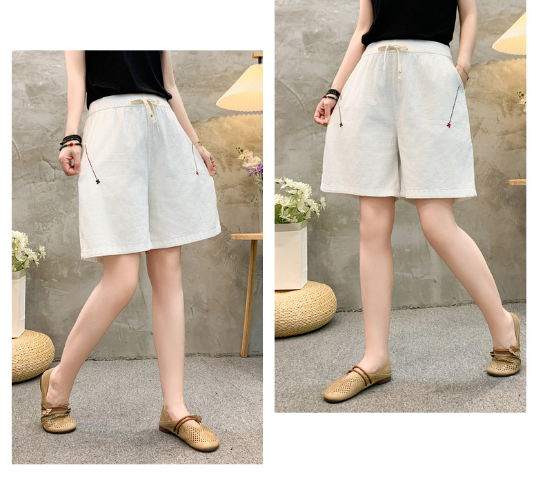 코튼 리넨 반바지 여성 여름 새로운 높은 허리 캐주얼 와이드 다리 바지 여성용 리넨 중형 바지 여성용 대형 스트레이트 바지스토어 가기
