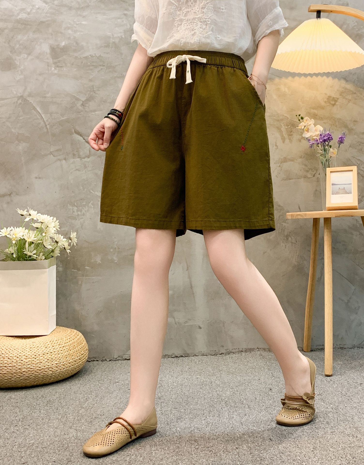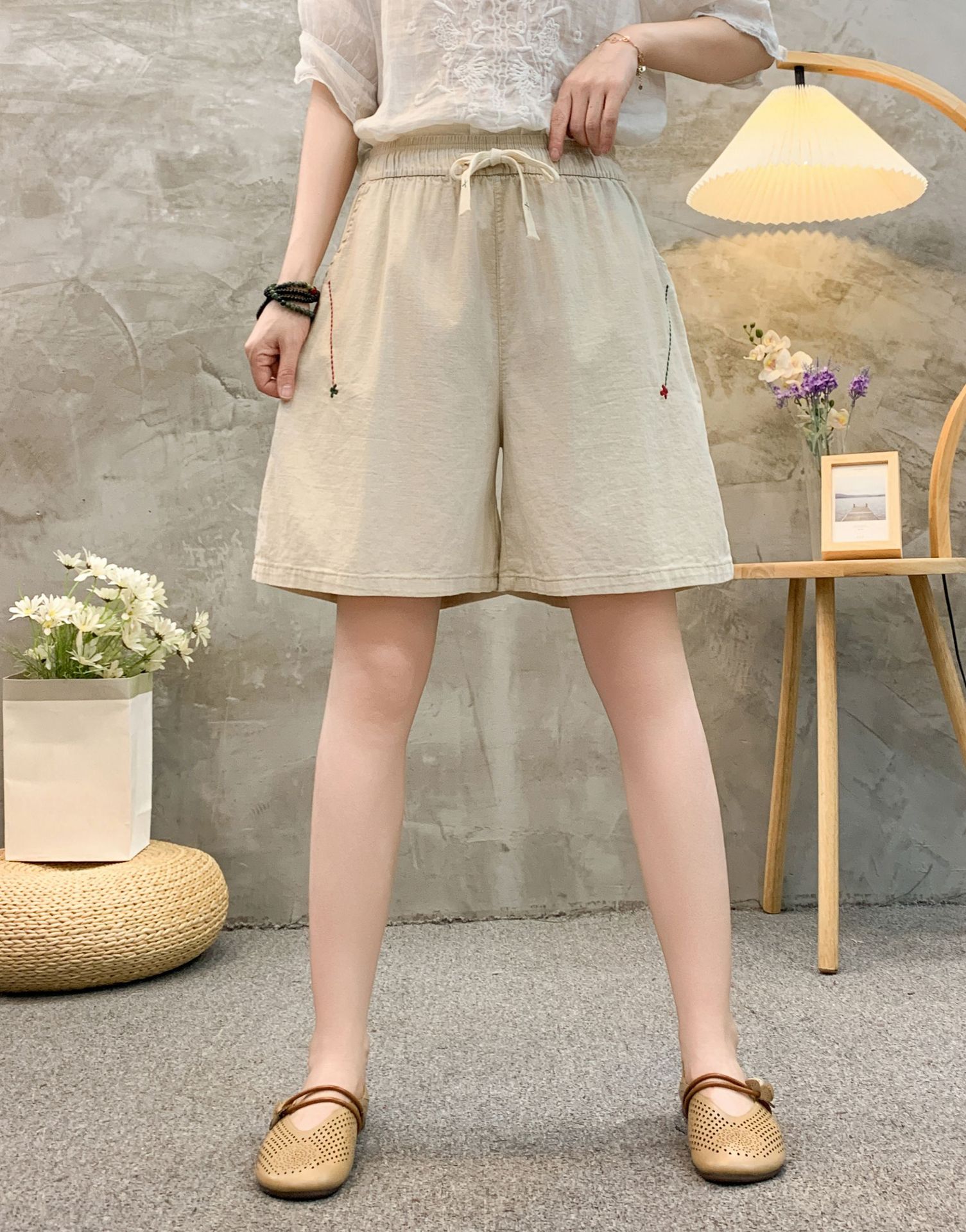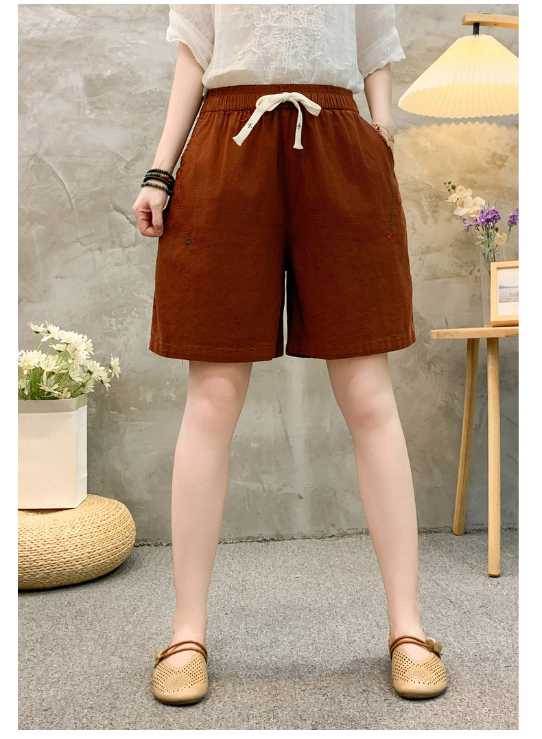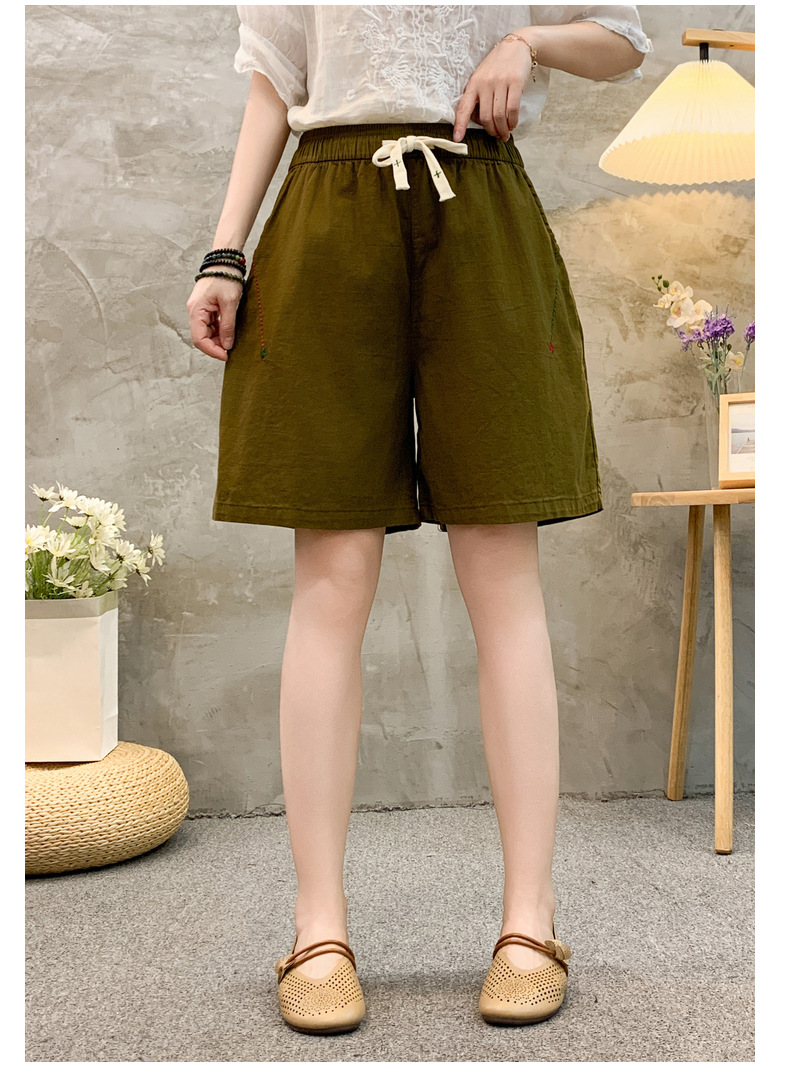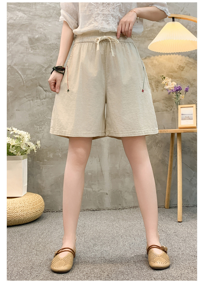 코튼 리넨 반바지 여성 여름 새로운 높은 허리 캐주얼 와이드 다리 바지 여성용 리넨 중형 바지 여성용 대형 스트레이트 바지스토어 가기