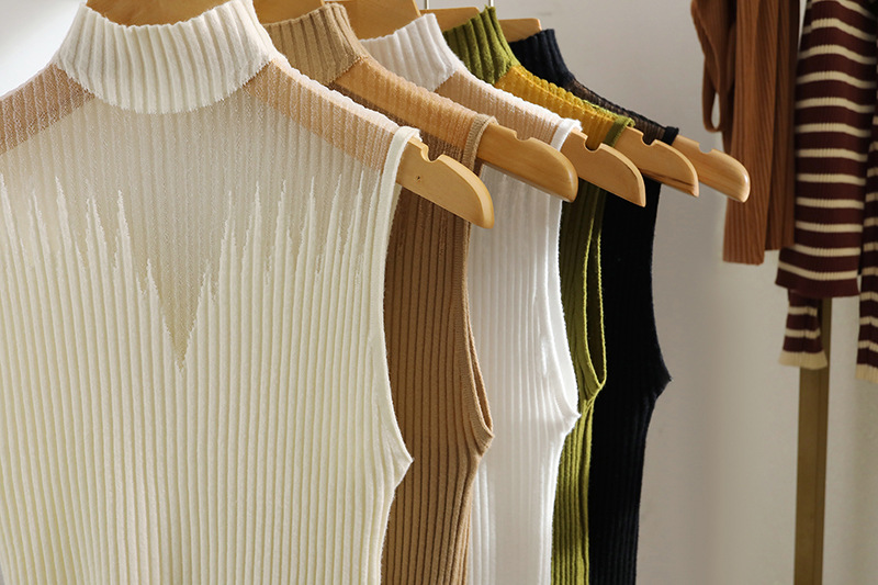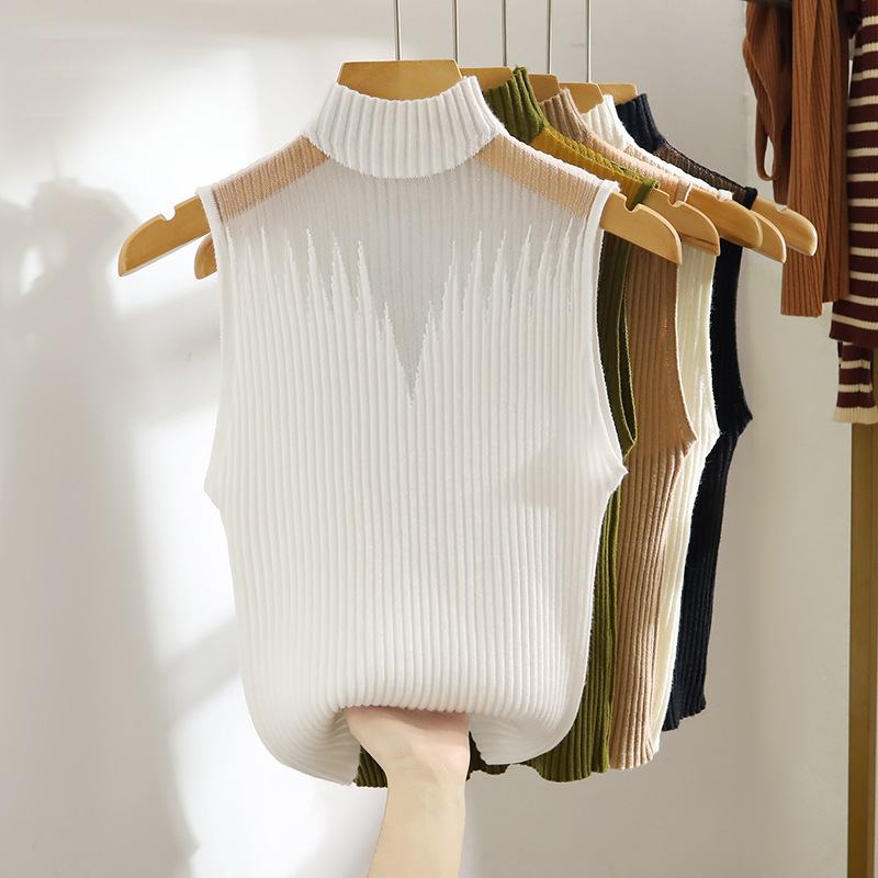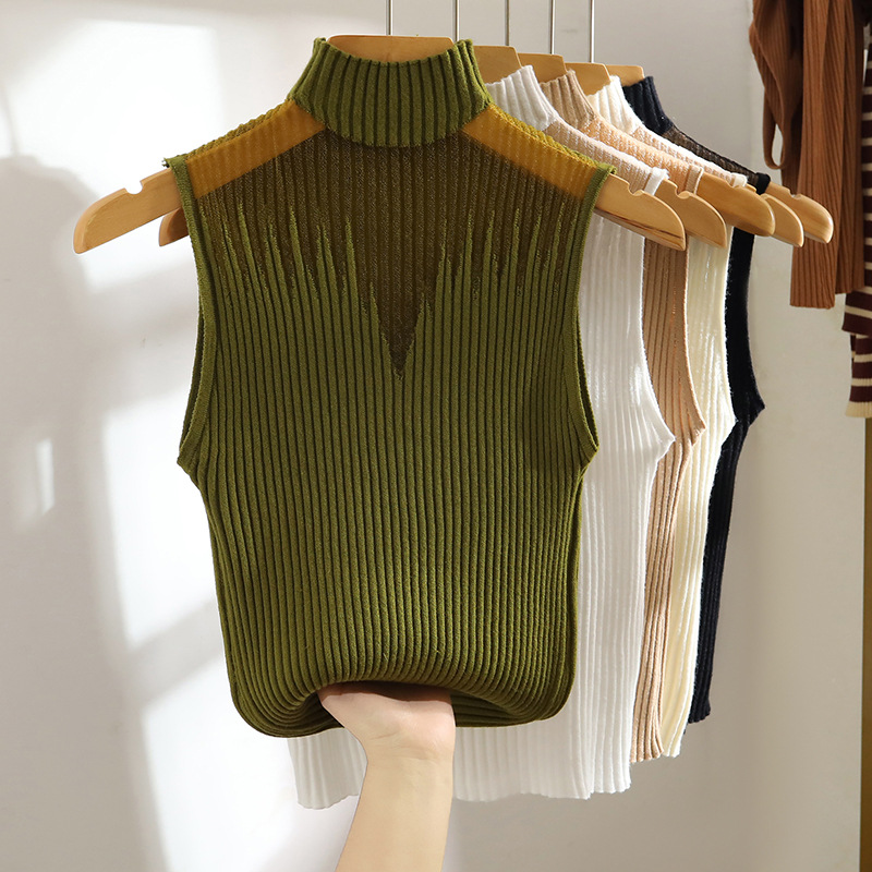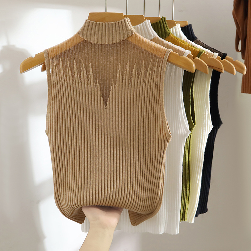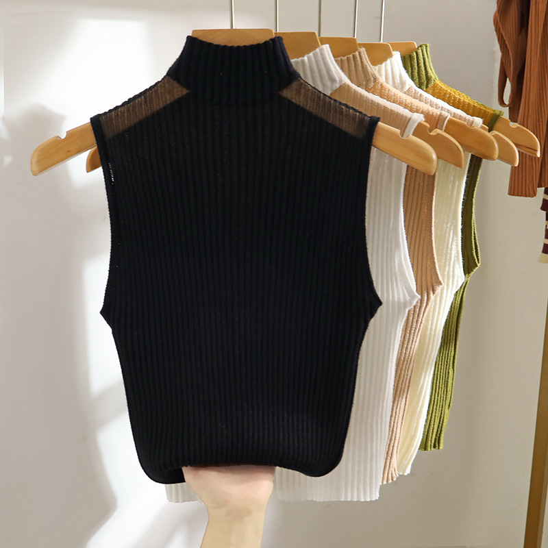 할로우 작은 카미 솔 여자 내베이스 셔츠 새 반 높이 칼라 민소매 여름 쇼트 탑