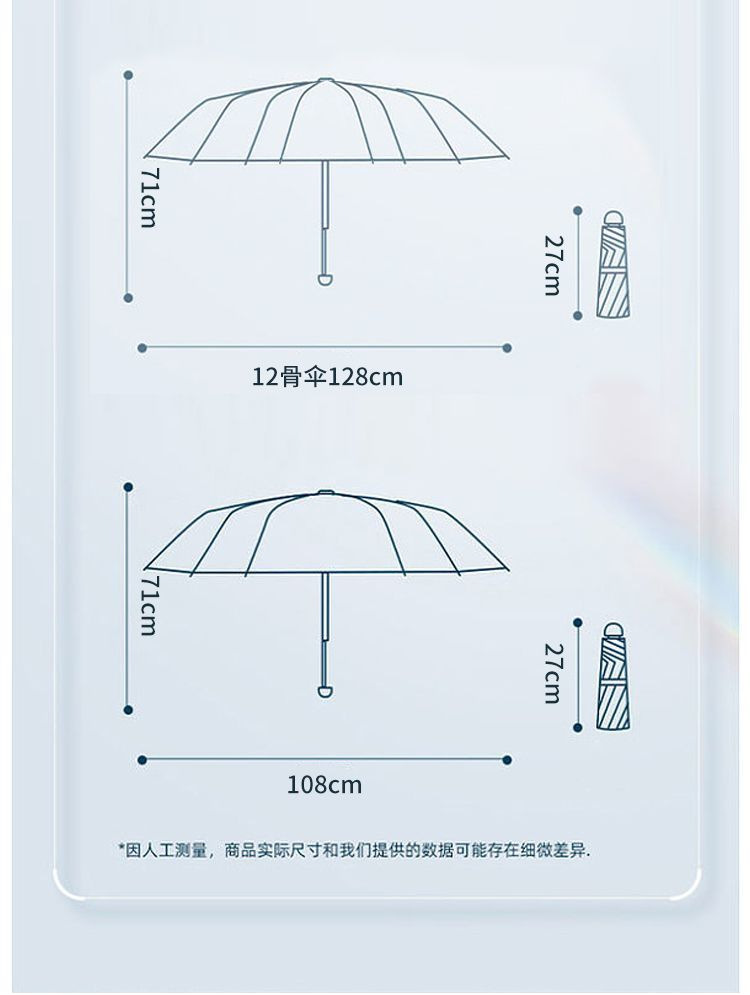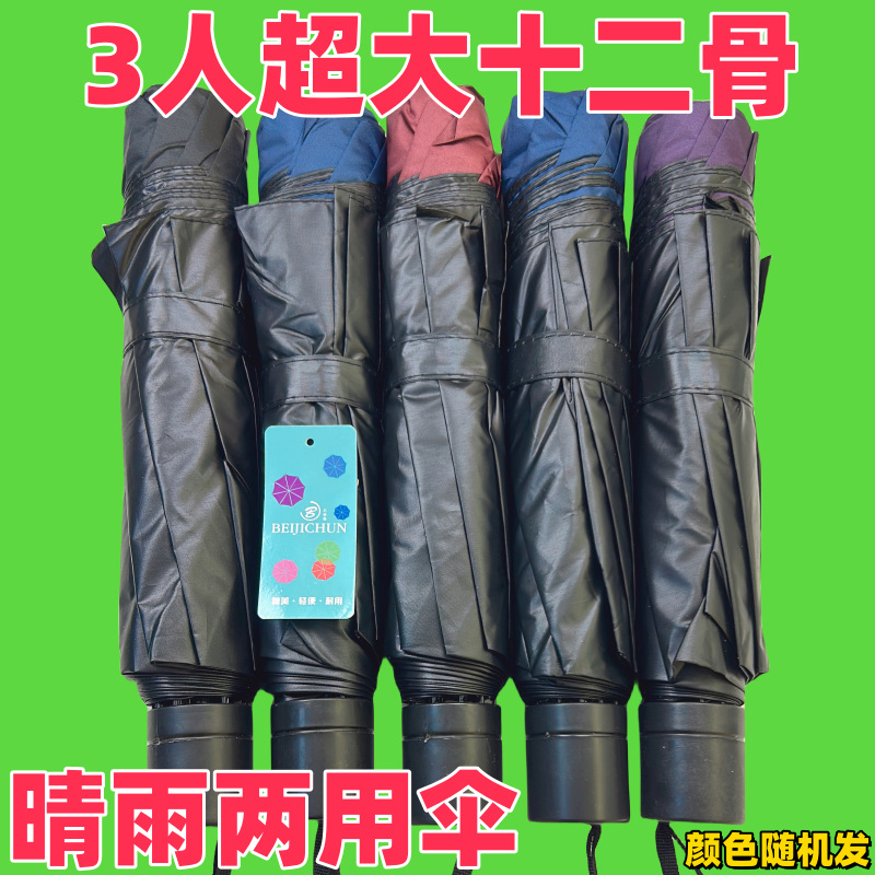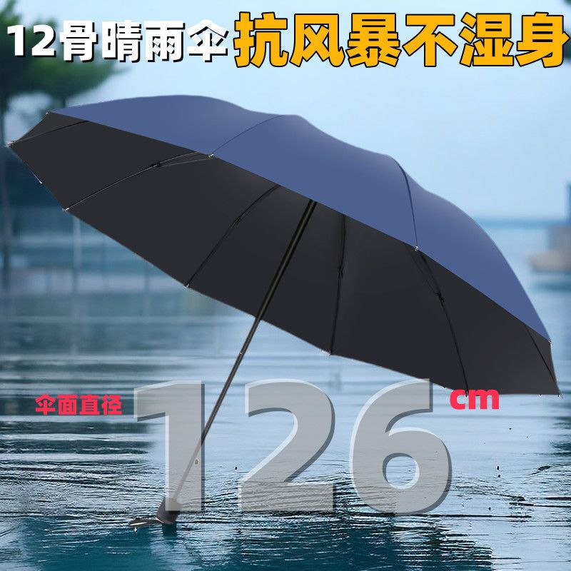 • [화창한 우산] 12-뼈 초대형 3 인-126cm (노트 컬러 임의의 머리 없음)