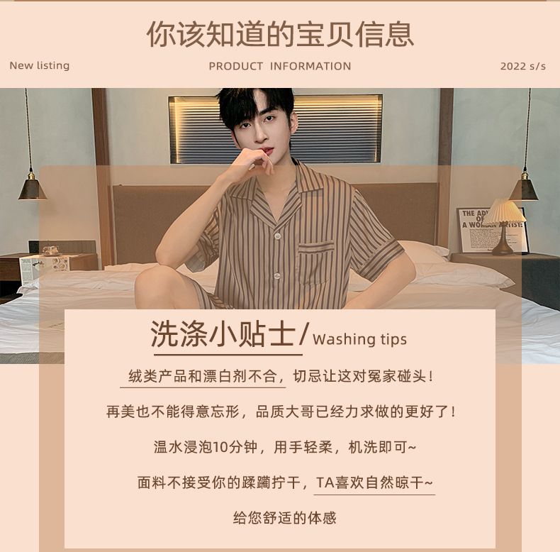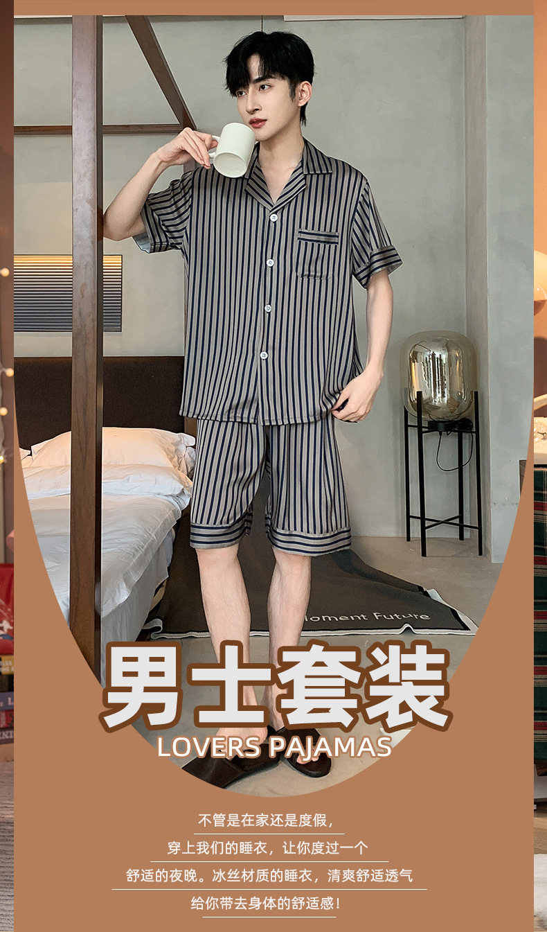 남성용 잠옷 남성용 아이스 실크 반팔 여름 시원한 느낌 대형 사이즈 얇은 여름 스타일 2025 신상품 플러스 사이즈 B1-501스토어 가기