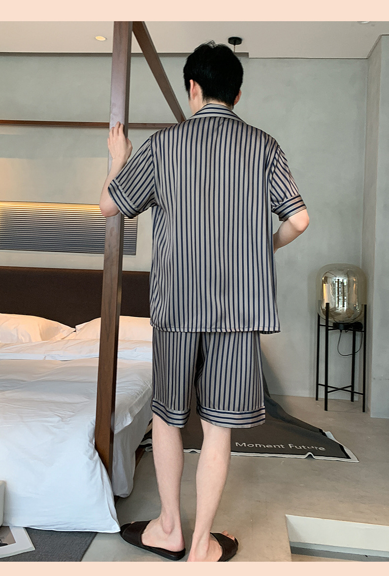 남성용 잠옷 남성용 아이스 실크 반팔 여름 시원한 느낌 대형 사이즈 얇은 여름 스타일 2025 신상품 플러스 사이즈 B1-501