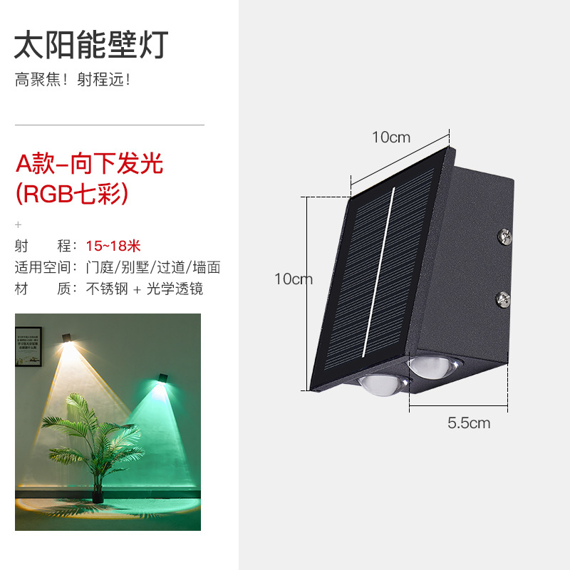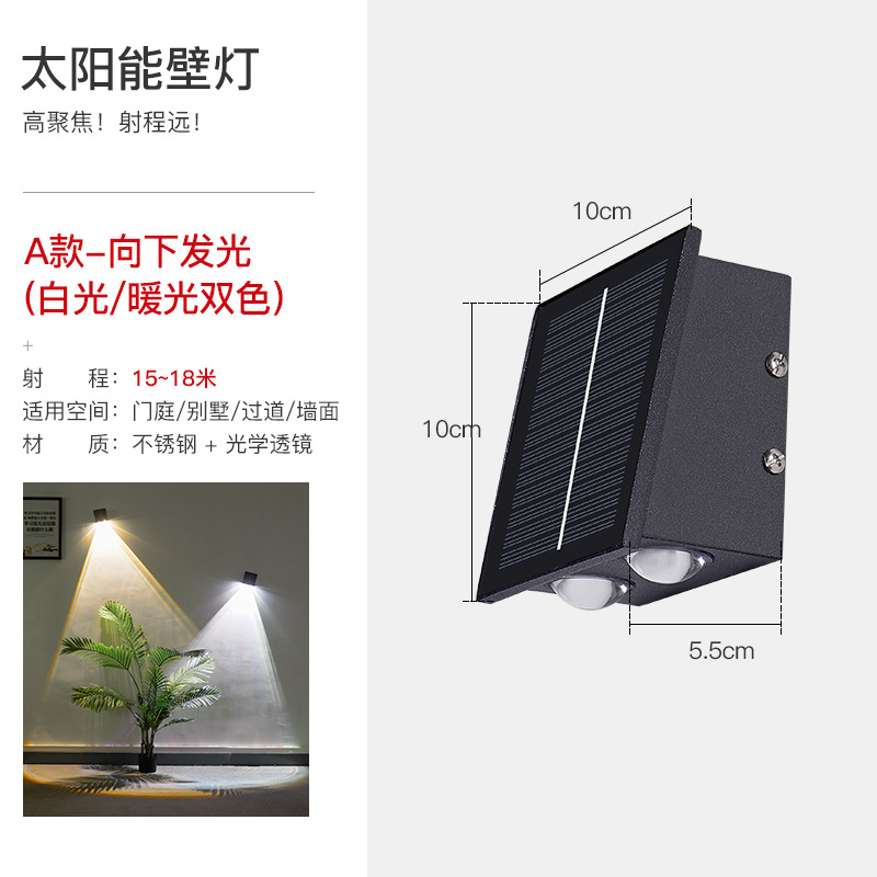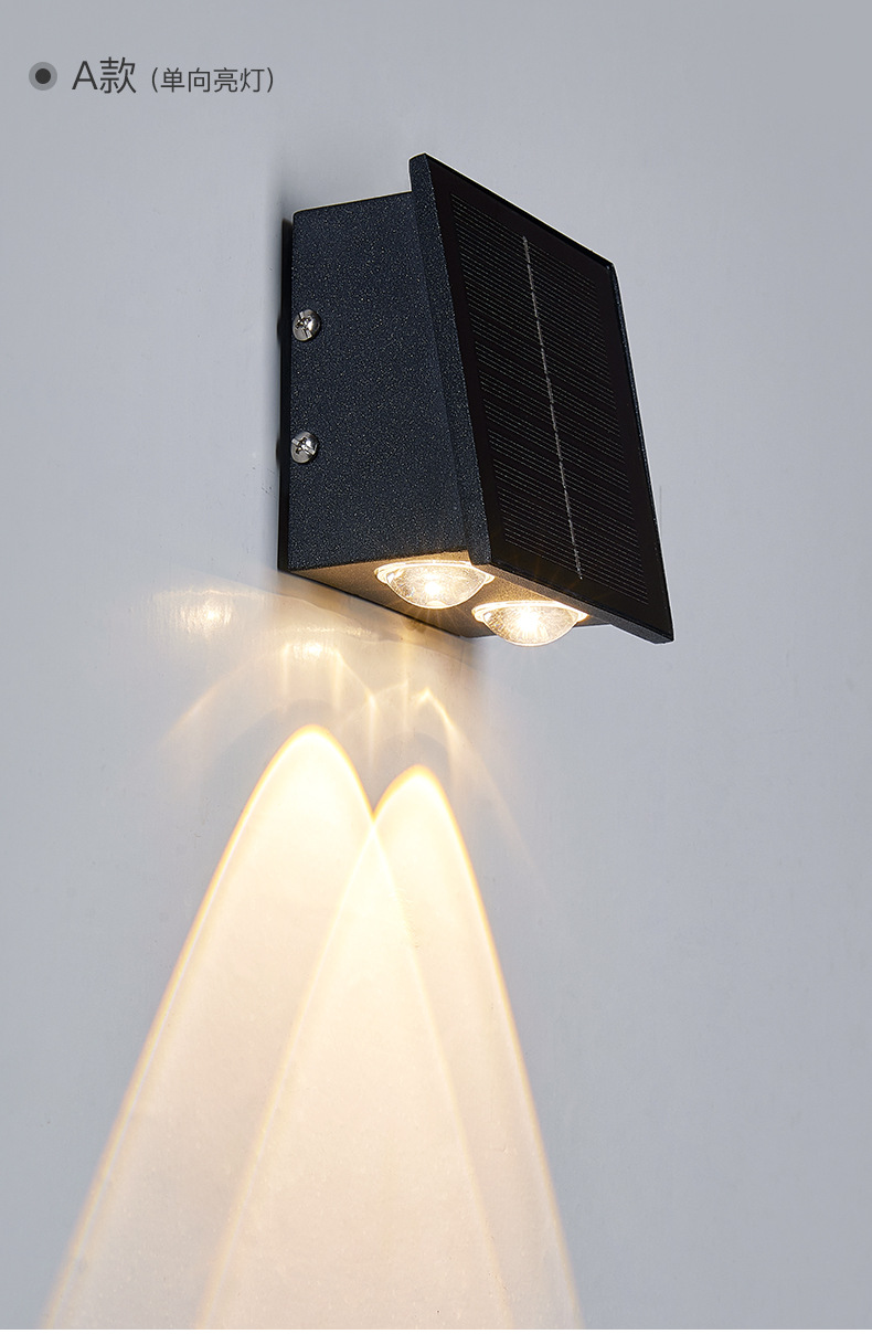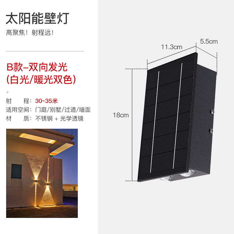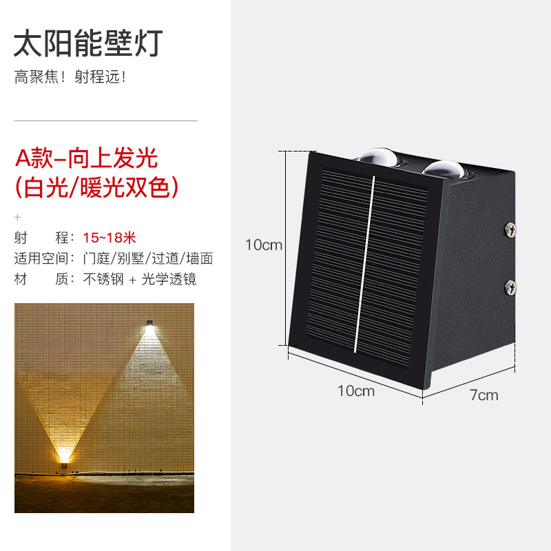 태양 벽 램프 야외 방수 정원 빌라 외부 벽 램프 상점 문 벽 세탁기 램프 위아래로 빛나는 테라스 램프