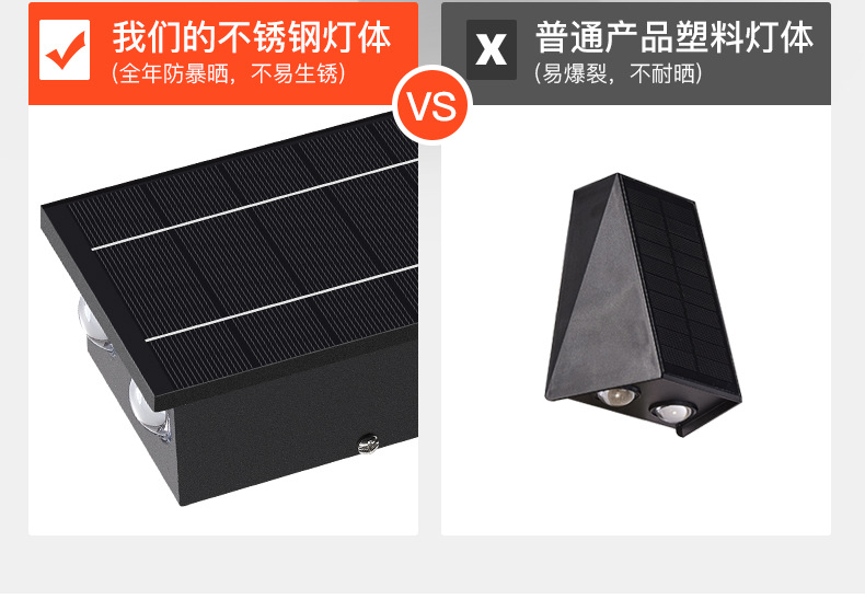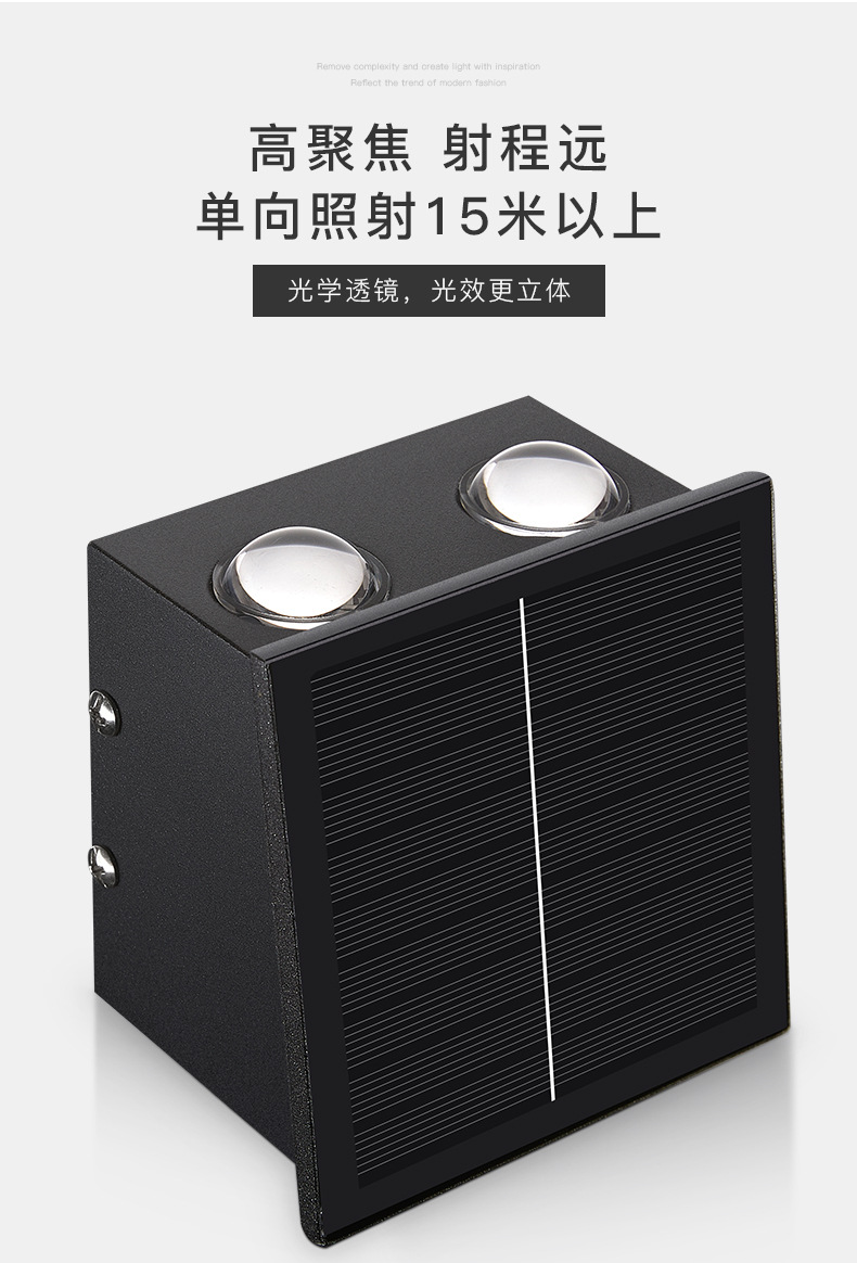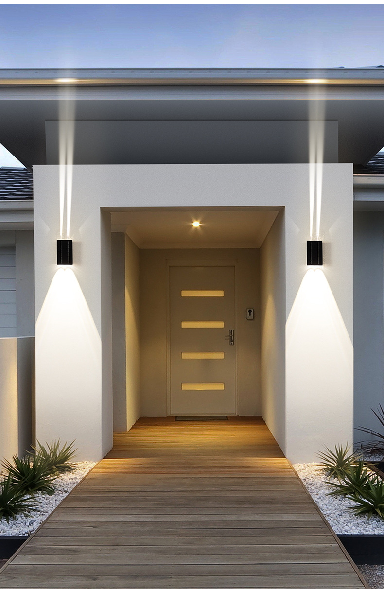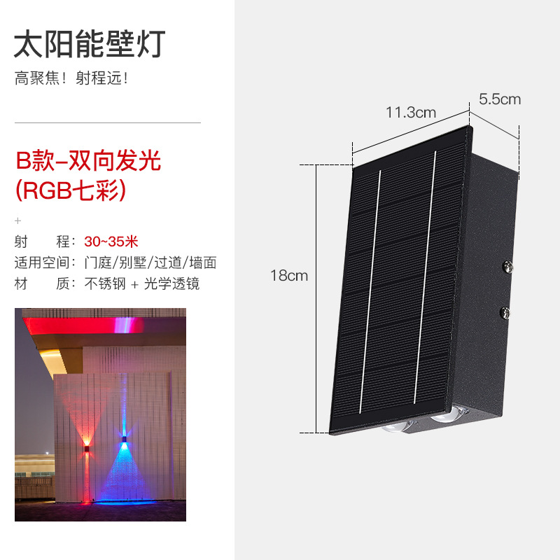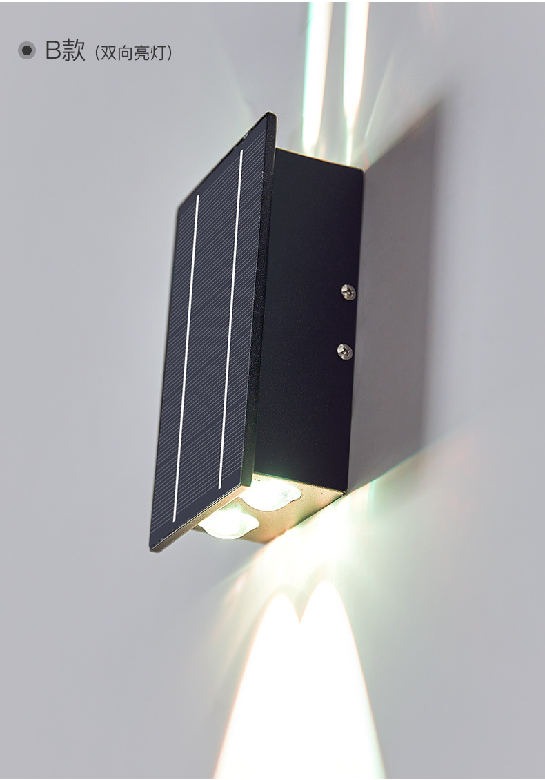 태양 벽 램프 야외 방수 정원 빌라 외부 벽 램프 상점 문 벽 세탁기 램프 위아래로 빛나는 테라스 램프
