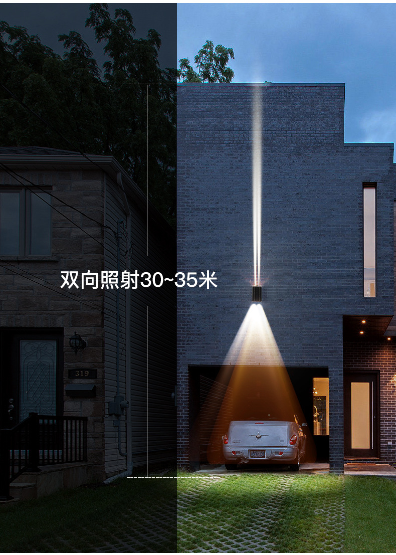 태양 벽 램프 야외 방수 정원 빌라 외부 벽 램프 상점 문 벽 세탁기 램프 위아래로 빛나는 테라스 램프스토어 가기