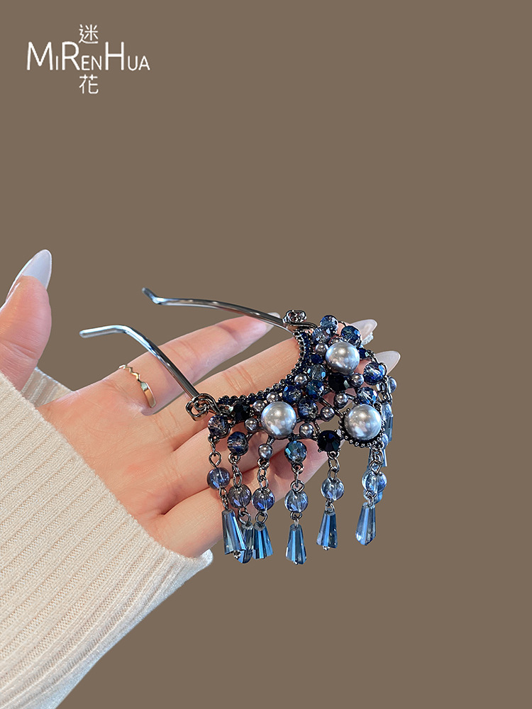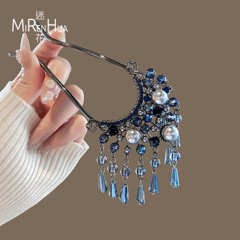 새로운 중국식 진주 술 U 자형 헤어핀 여성의 새로운 고급 스텝 머리 디스크 머리 머리 머리 머리 머리핀 뒤쪽으로 흔들어