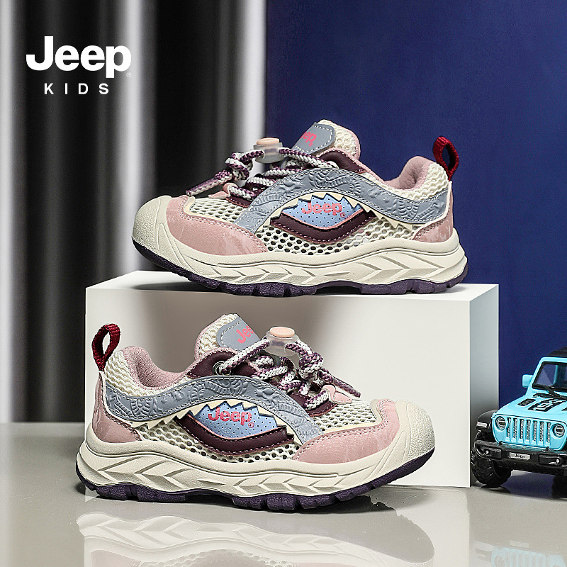지프 걸스 스니커즈 2024 여름 새로운 중대형 어린이 메쉬 통기성 회전 버튼 소프트 하단 러닝 슈즈 트렌디스토어 가기