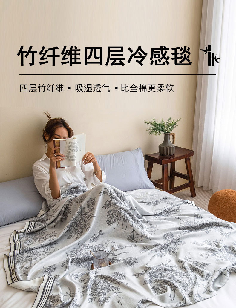 2024 새로운 대나무 섬유 4 층 거즈 담요 여름 퀼트 여름 쿨 퀼트 런치 브레이크 담요 에어컨 퀼트 냉장스토어 가기