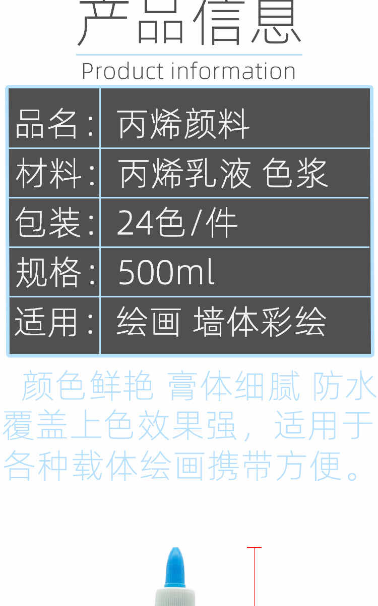 큰 병 500 ml 아크릴 안료 광장 마구간 어린이 낙서 석고 인형 그린 어린이 페인트 점