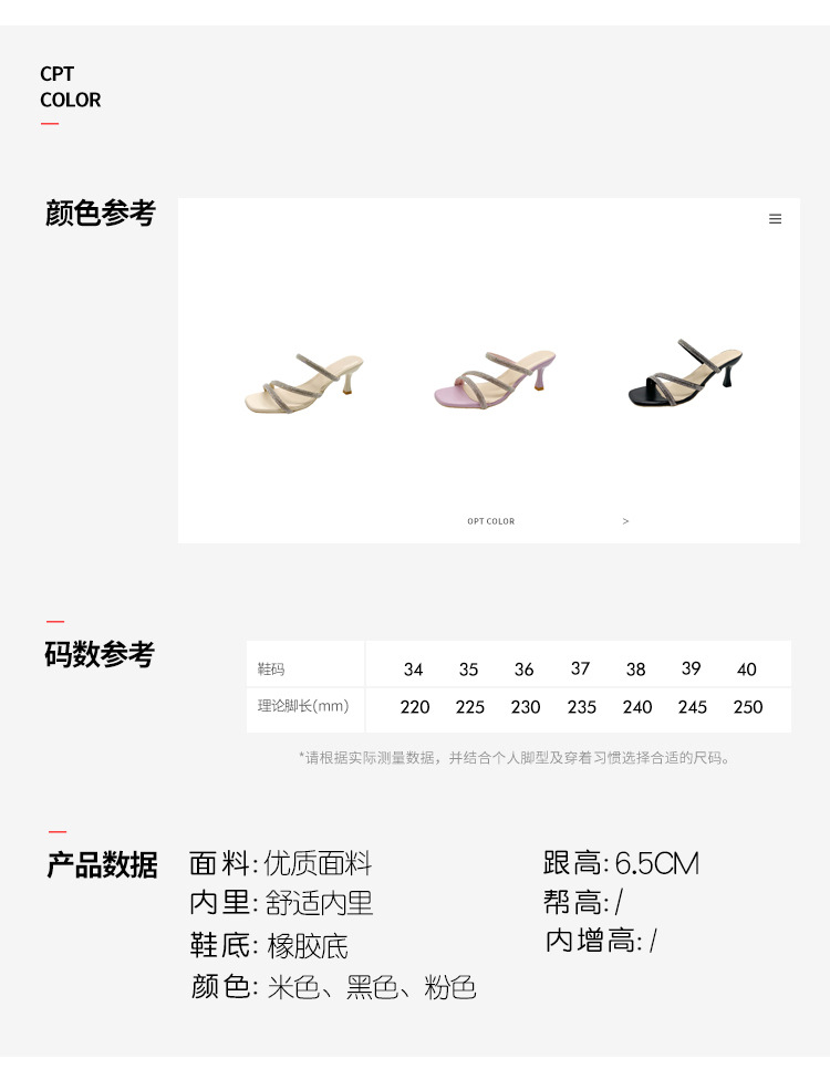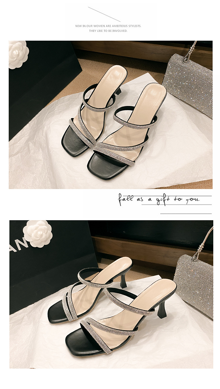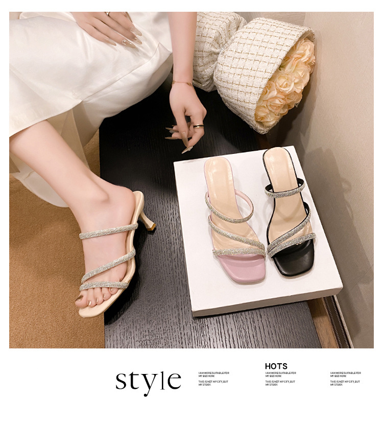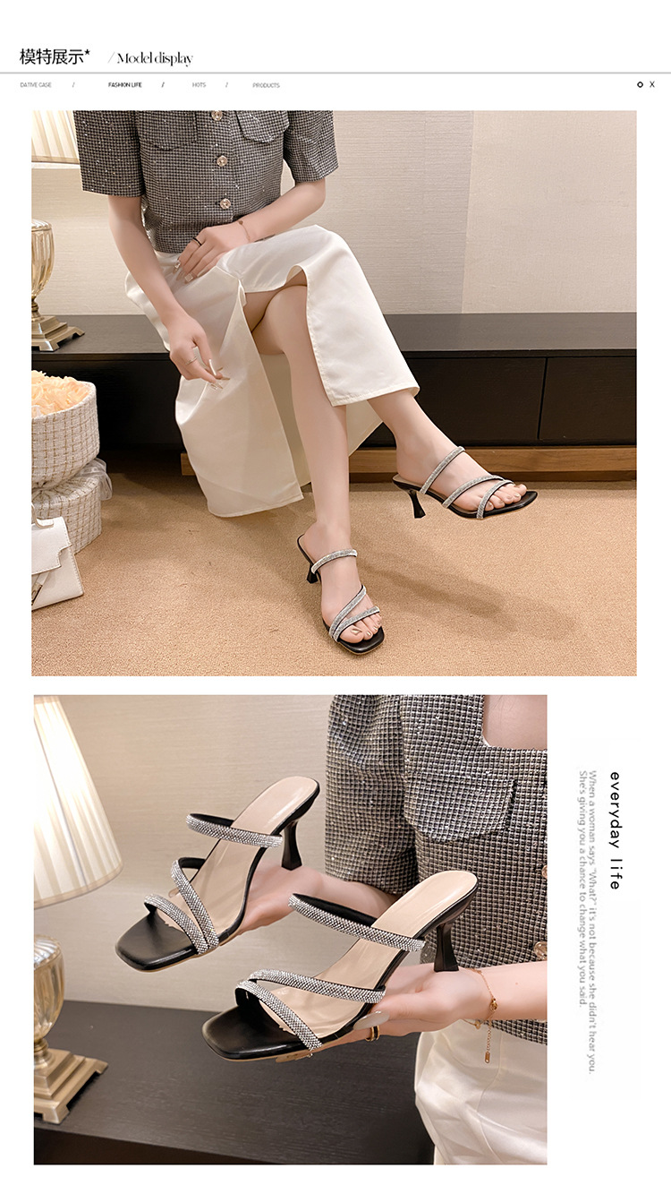 여름 아우터용 여성용 요정 스타일 샌들 2025 새로운 스타일의 라인스톤 슬리퍼, 우아한 하이힐, 대형 스틸레토 샌들스토어 가기