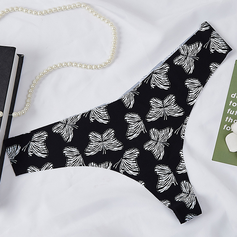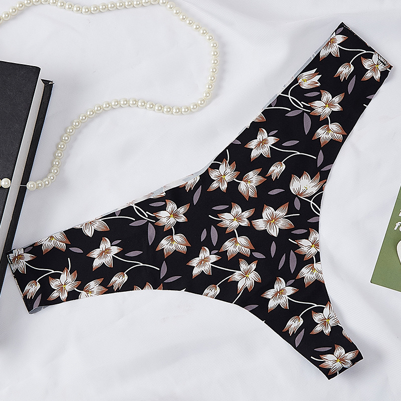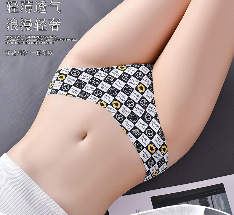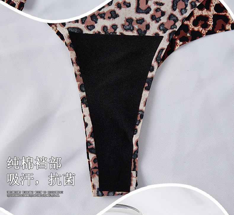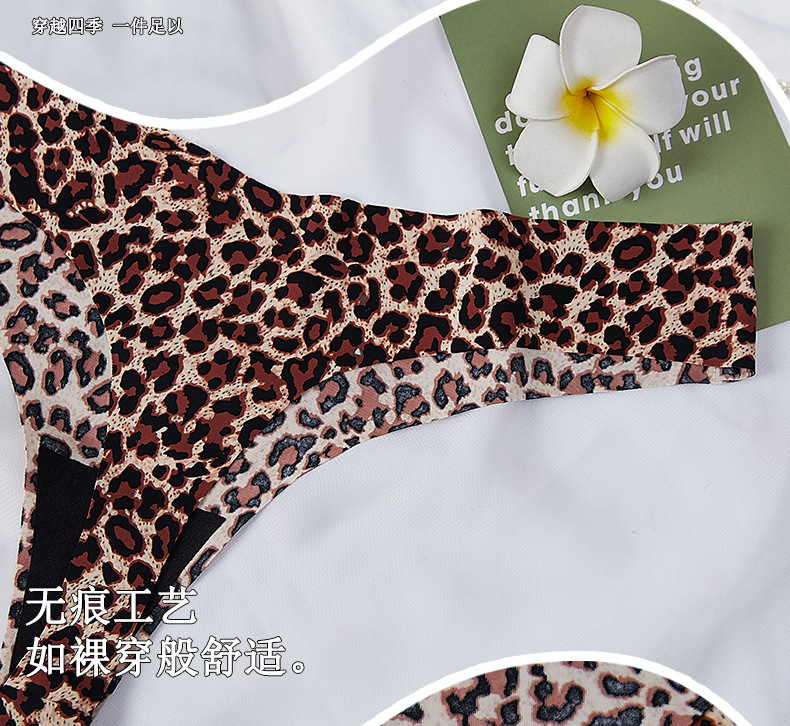 유럽풍 빅사이즈 여성용 끈팬티, 아이스 실크 레오파드 프린트, 무봉제 중간 허리, 피부 친화적이고 통기성 좋은 일체형 면 팬티