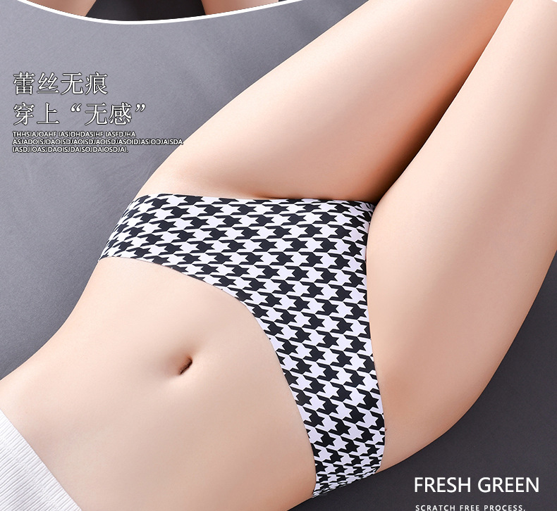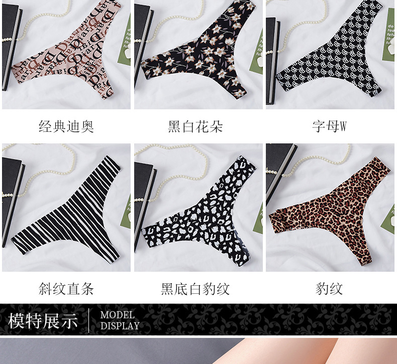 유럽풍 빅사이즈 여성용 끈팬티, 아이스 실크 레오파드 프린트, 무봉제 중간 허리, 피부 친화적이고 통기성 좋은 일체형 면 팬티스토어 가기