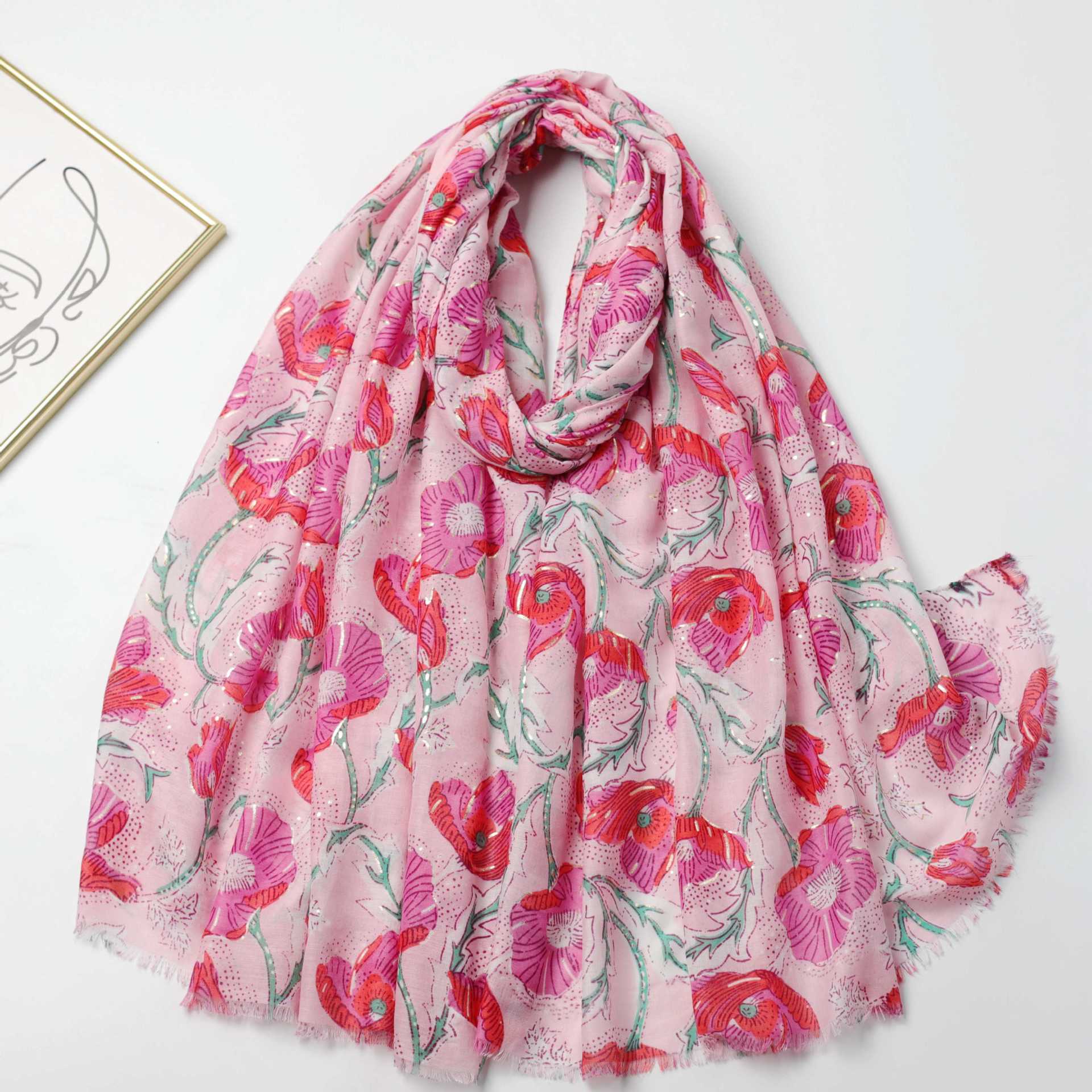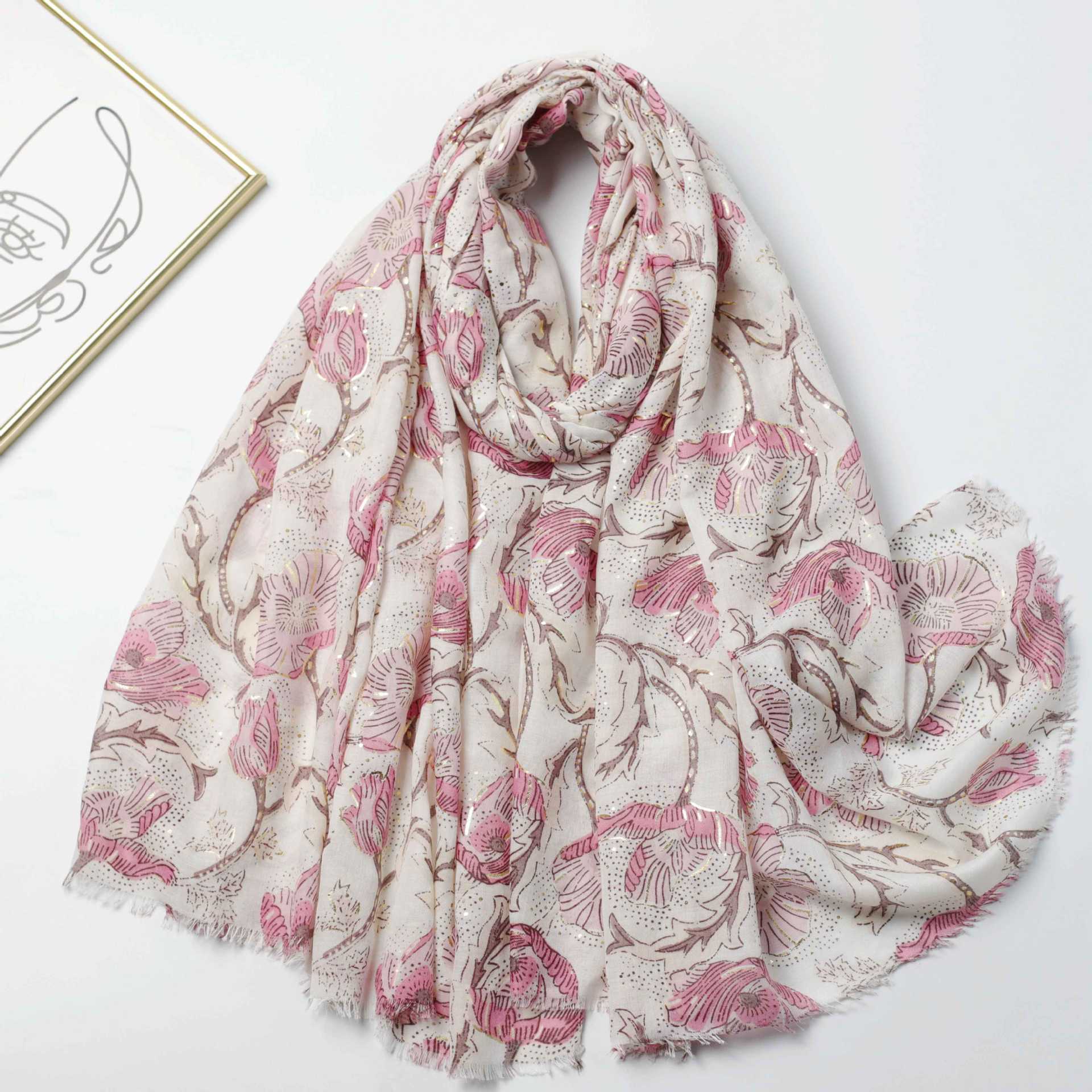 공장 판매 대외 무역 국경 아름다운 청동 모란 새틴 인쇄 긴 수건 여행 휴일 선 스크린 따뜻한 목도리스토어 가기