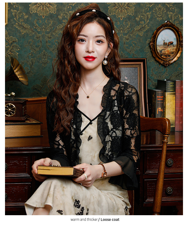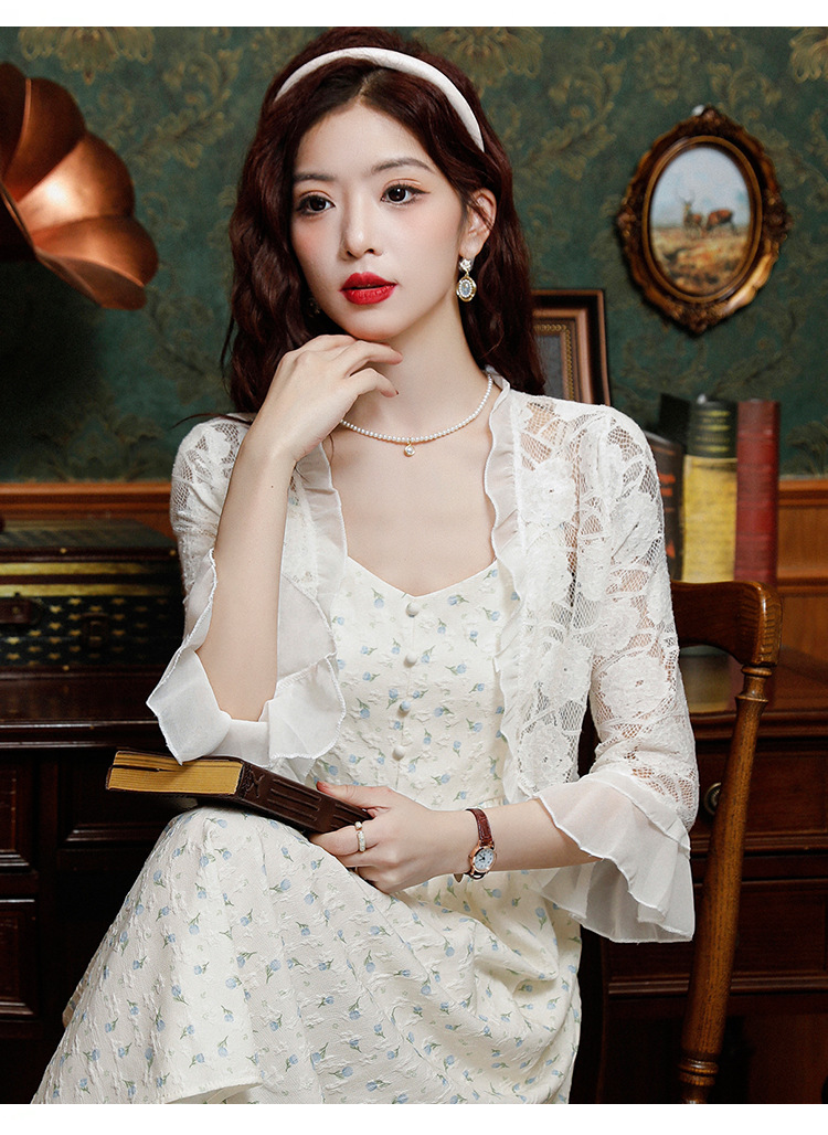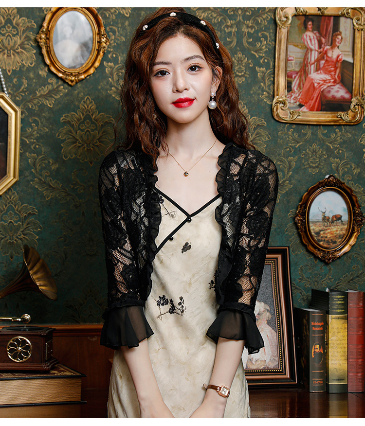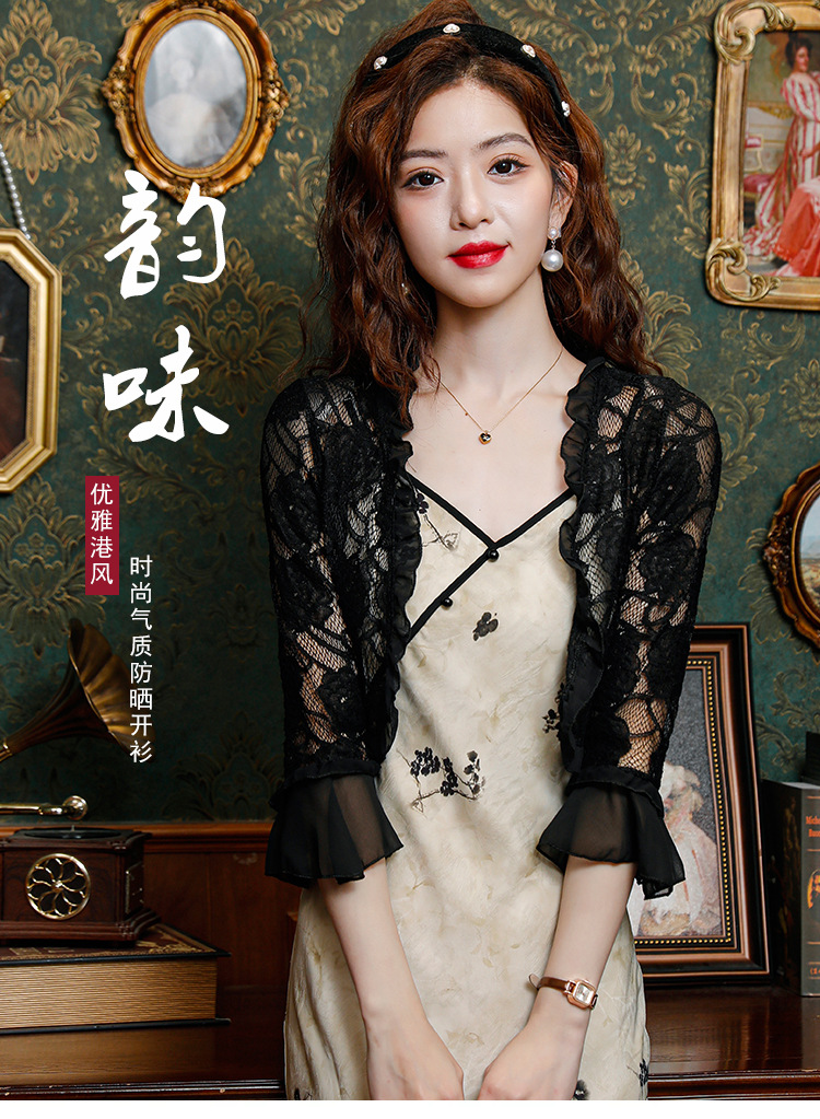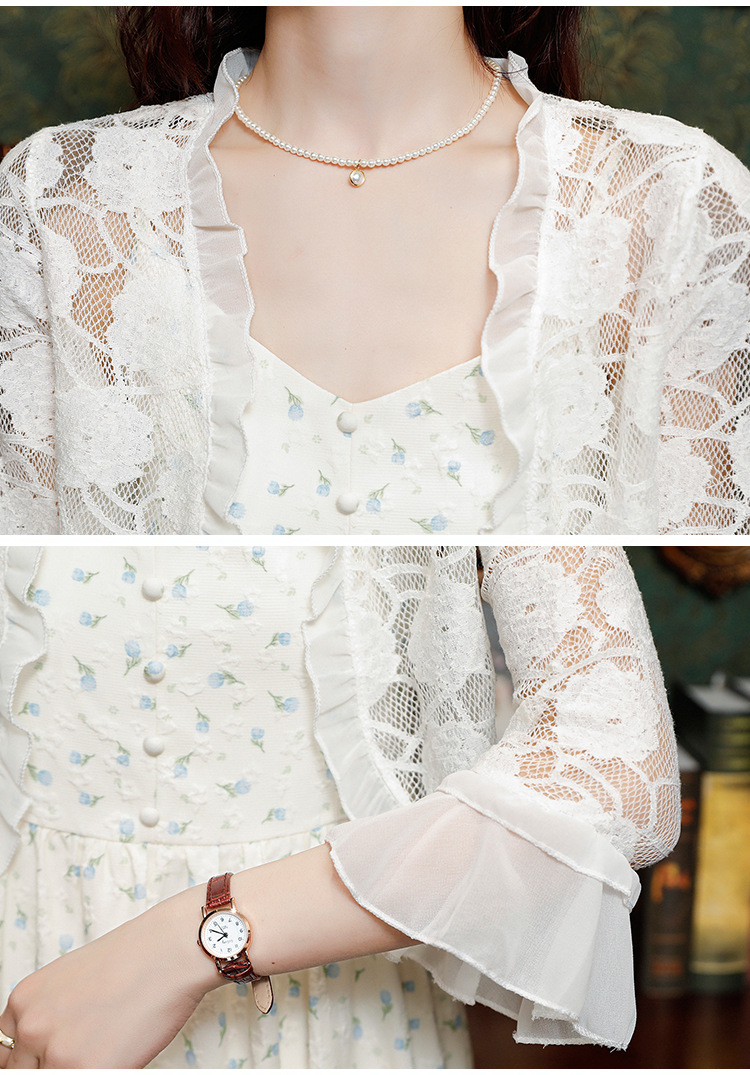 스커트 슬링 외부와 시폰 작은 목도리 여름 얇은 선 스크린 카디건 할로우 아웃 슬리브 탑 레이스 블라우스