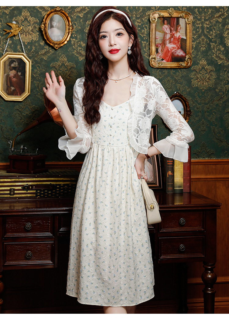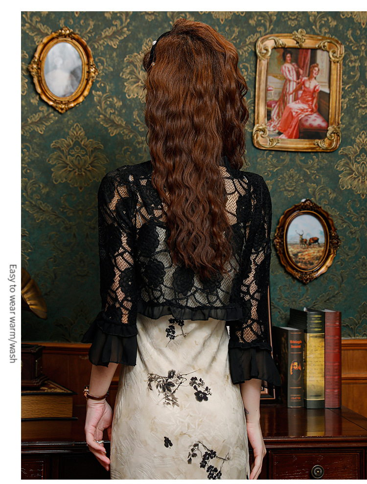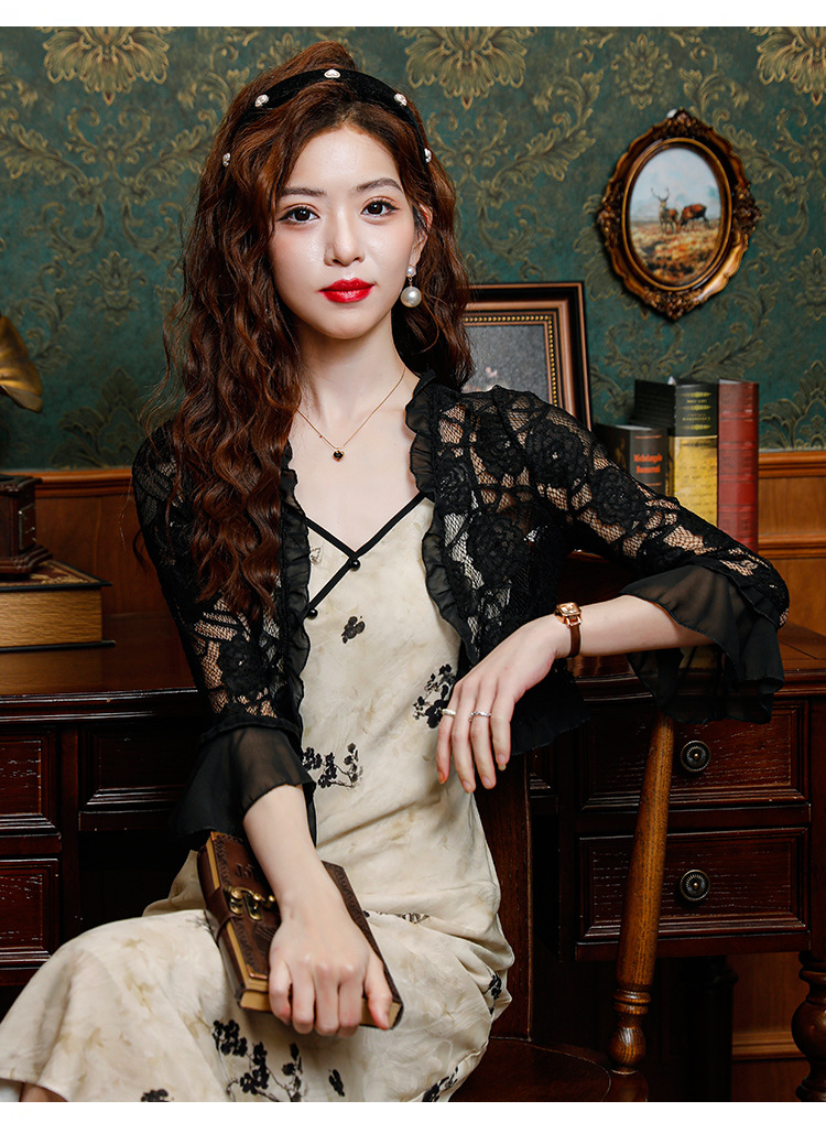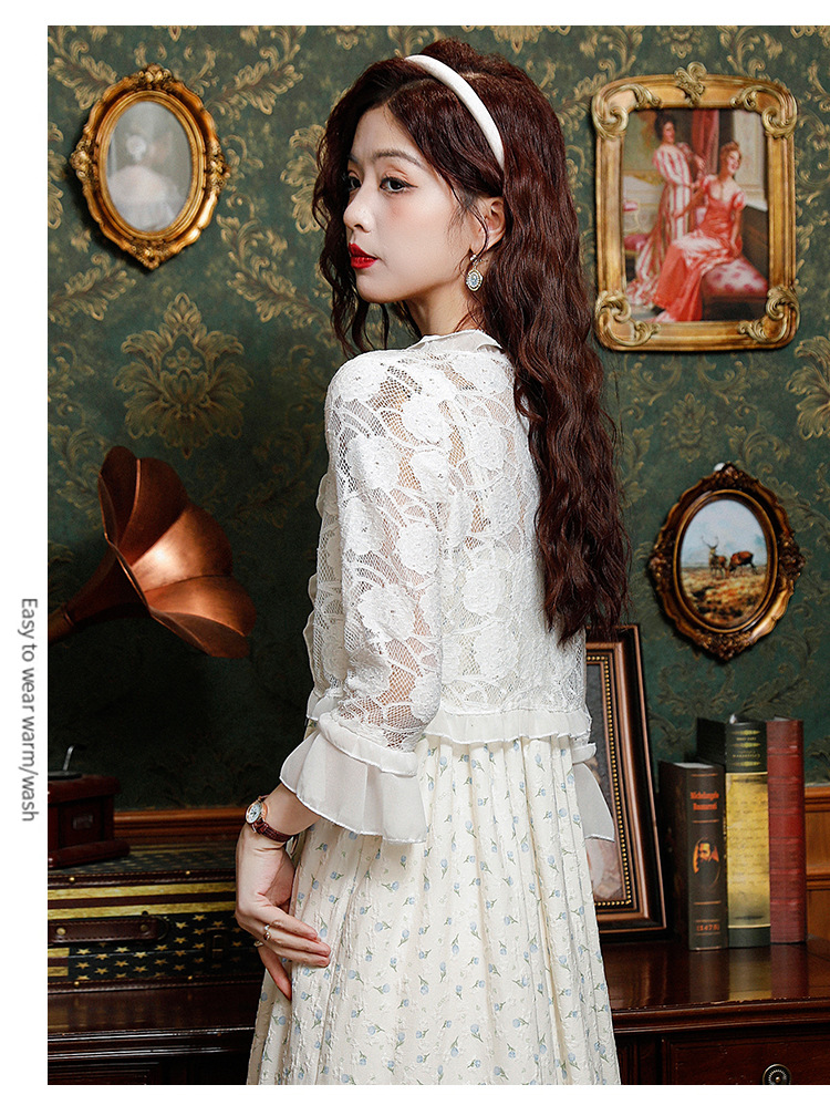 스커트 슬링 외부와 시폰 작은 목도리 여름 얇은 선 스크린 카디건 할로우 아웃 슬리브 탑 레이스 블라우스