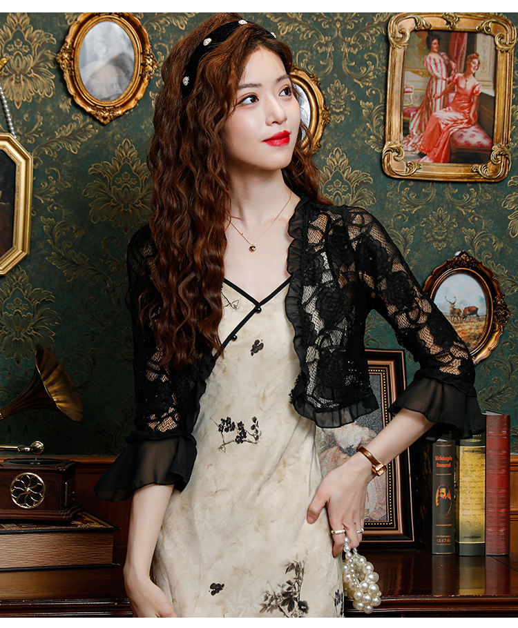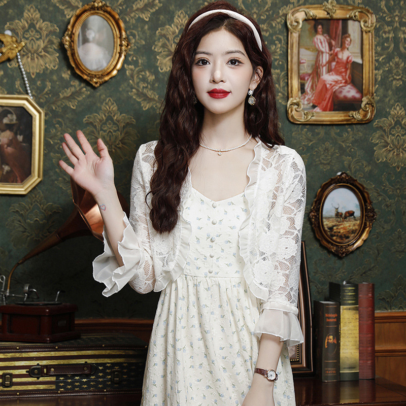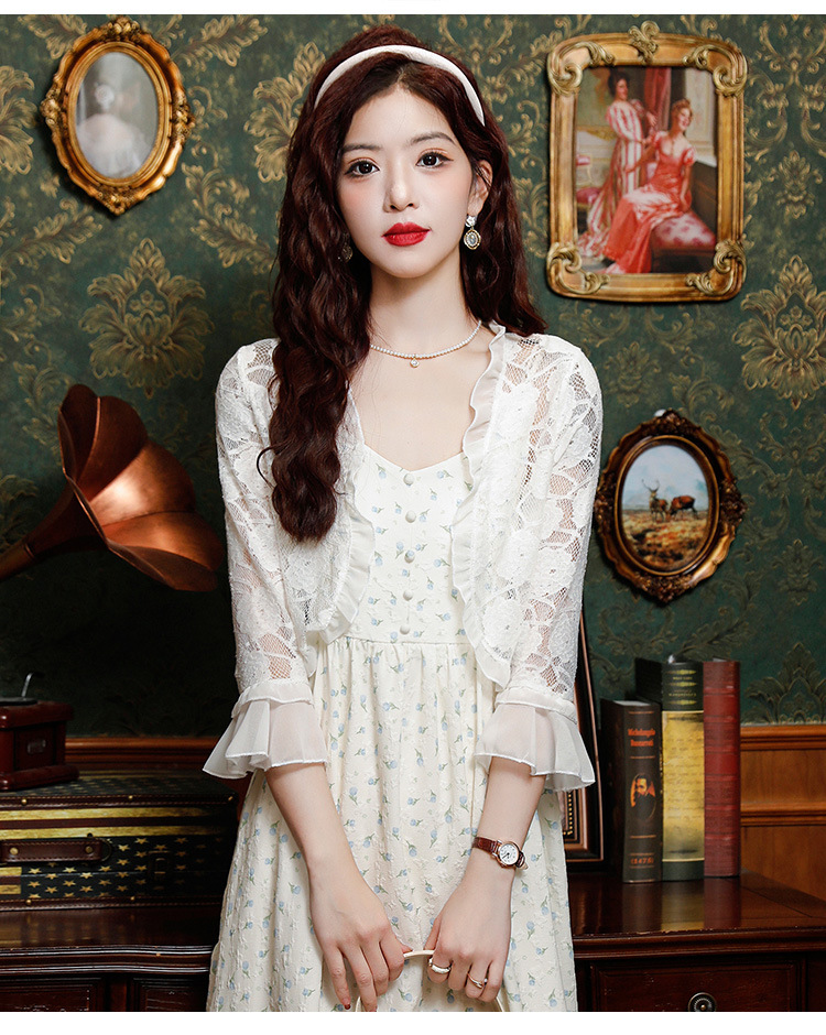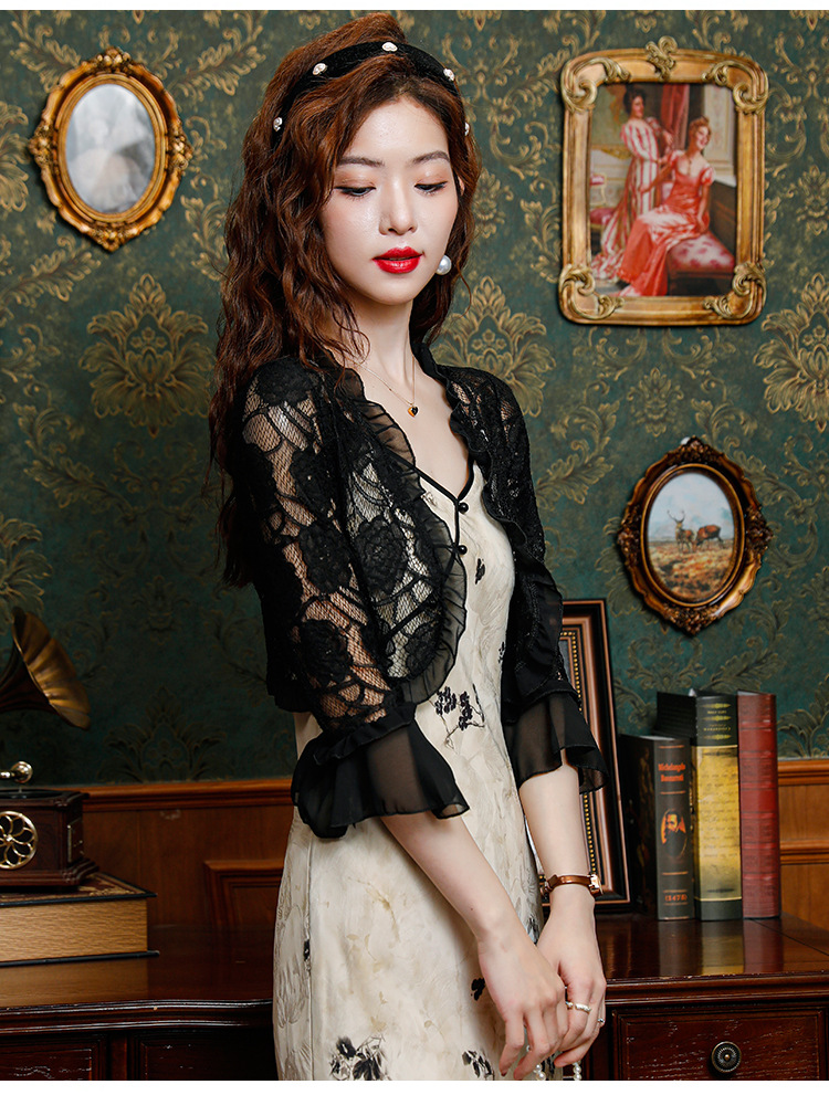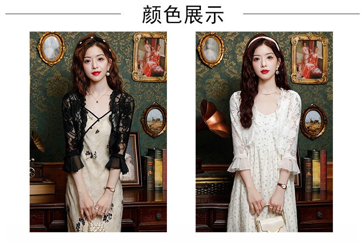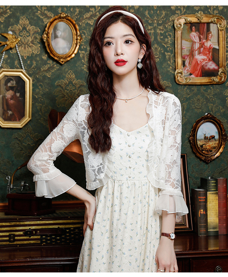스커트 슬링 외부와 시폰 작은 목도리 여름 얇은 선 스크린 카디건 할로우 아웃 슬리브 탑 레이스 블라우스스토어 가기