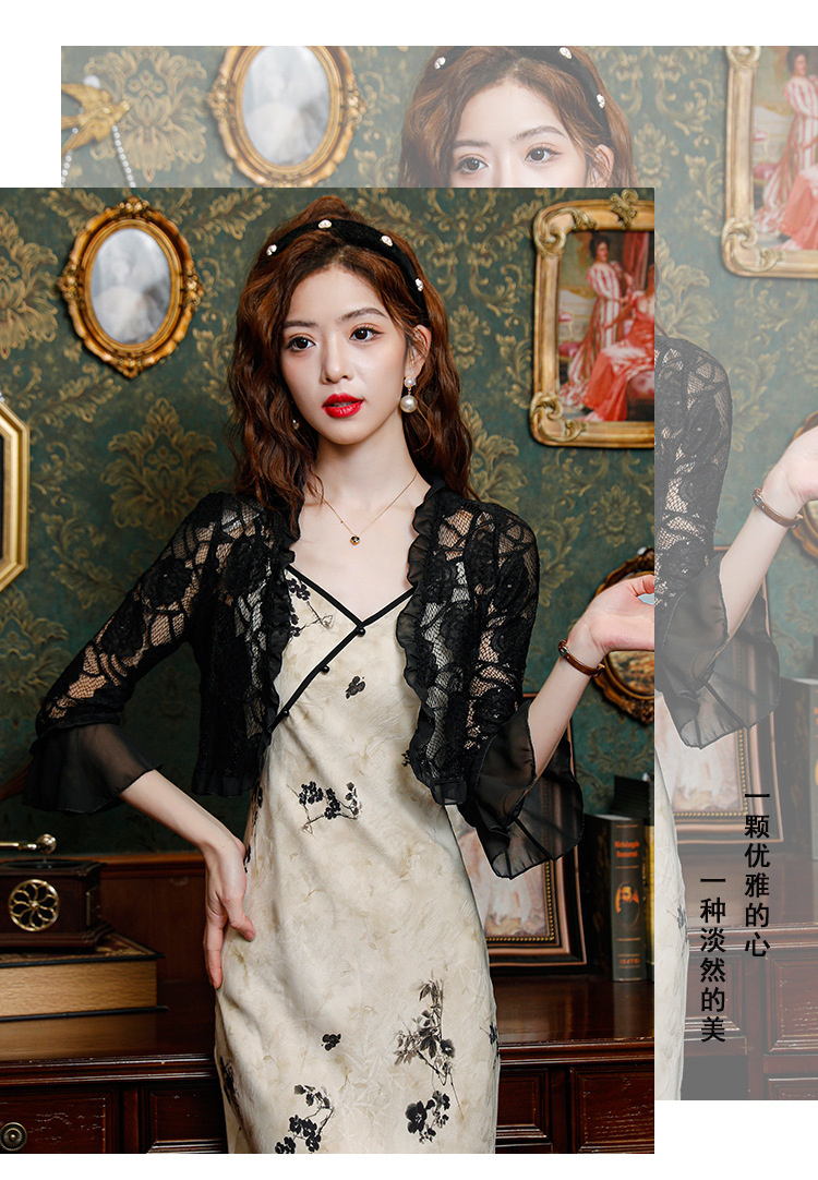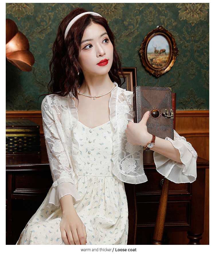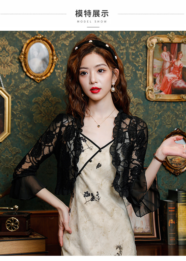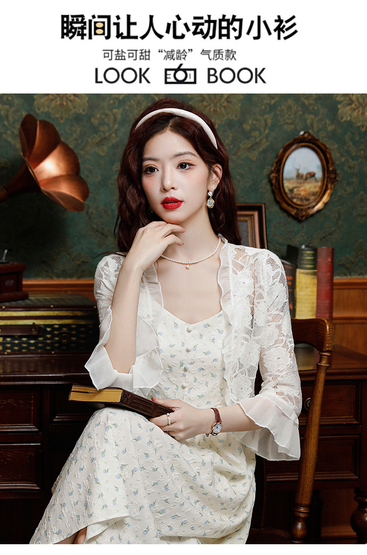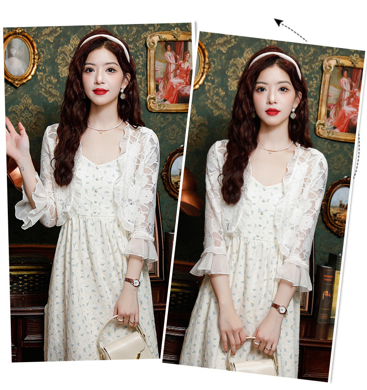 스커트 슬링 외부와 시폰 작은 목도리 여름 얇은 선 스크린 카디건 할로우 아웃 슬리브 탑 레이스 블라우스스토어 가기
